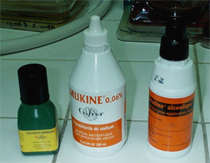 j'ai utilisé la methode de l'application par batonnet ouaté : on imbibe au iode et on colorie directement