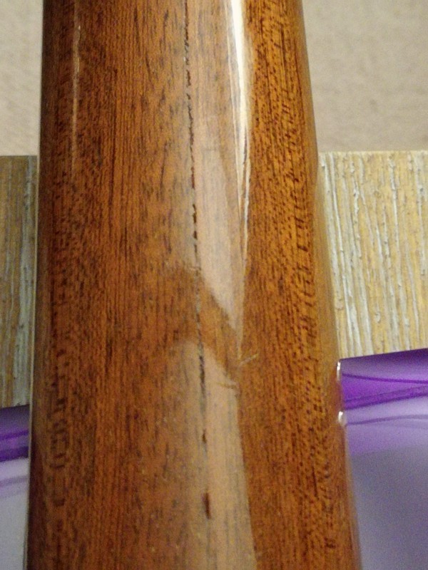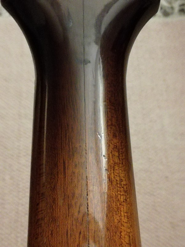 Serait-ce le résultat d'une réparation ou tout simplement la résultante de plusieurs réglages de manche ? La ligne court jusqu'au sommet de la tête.