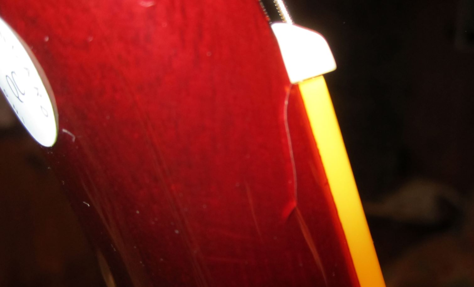 teinture sur la touche palissandre (que je trouvais belle car plutôt foncée.. ?)