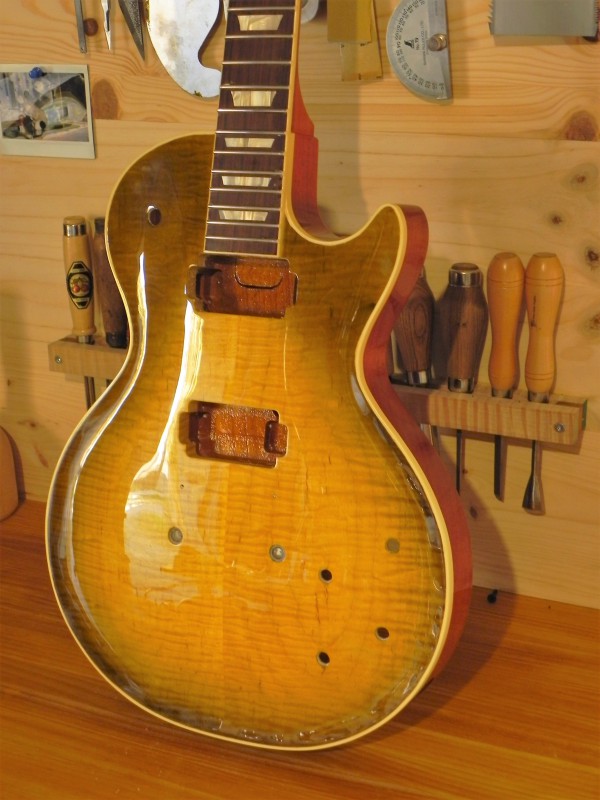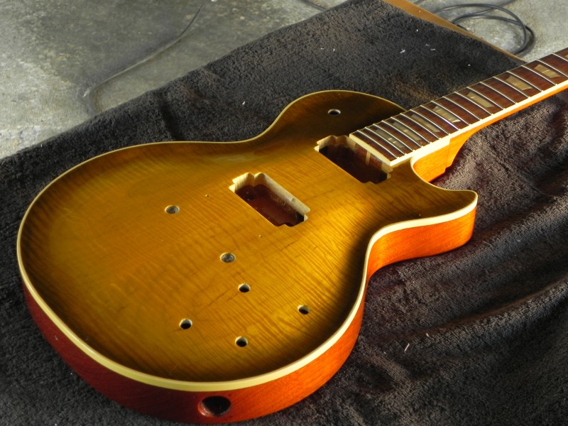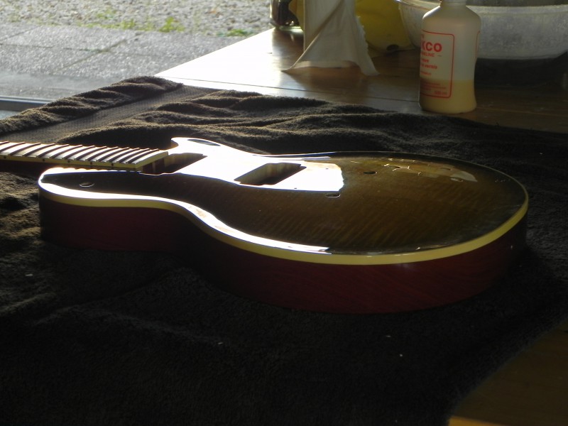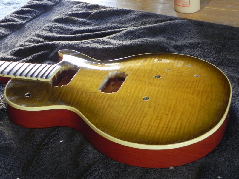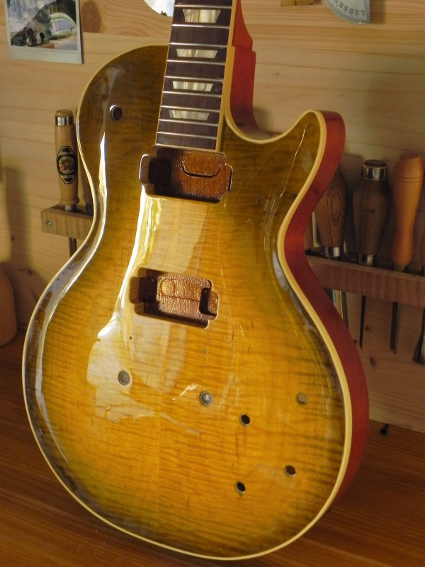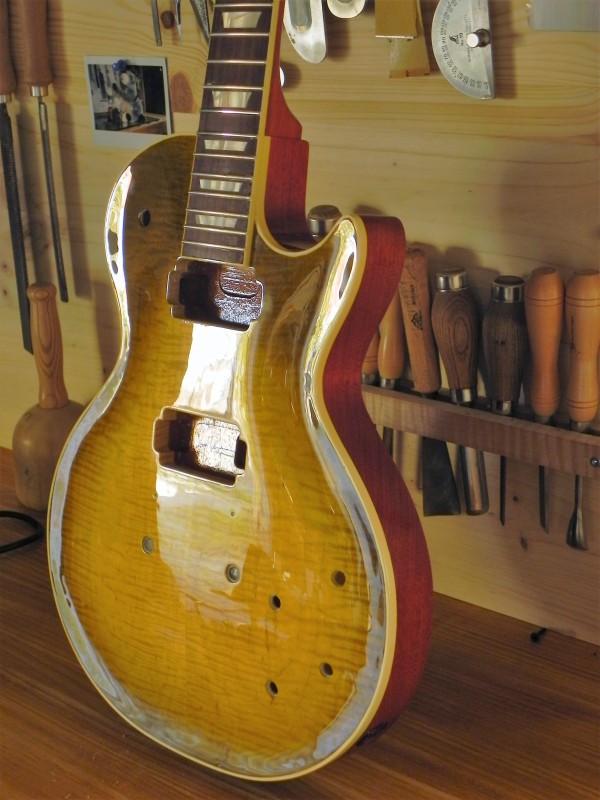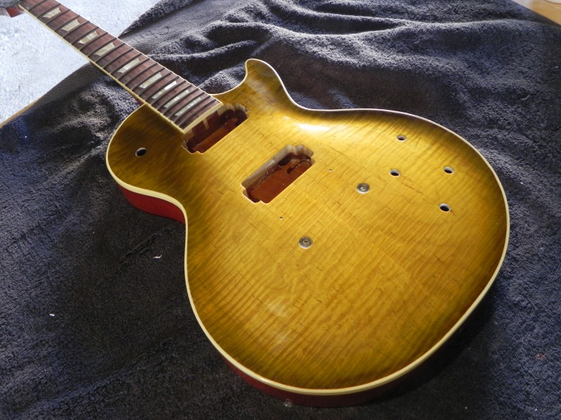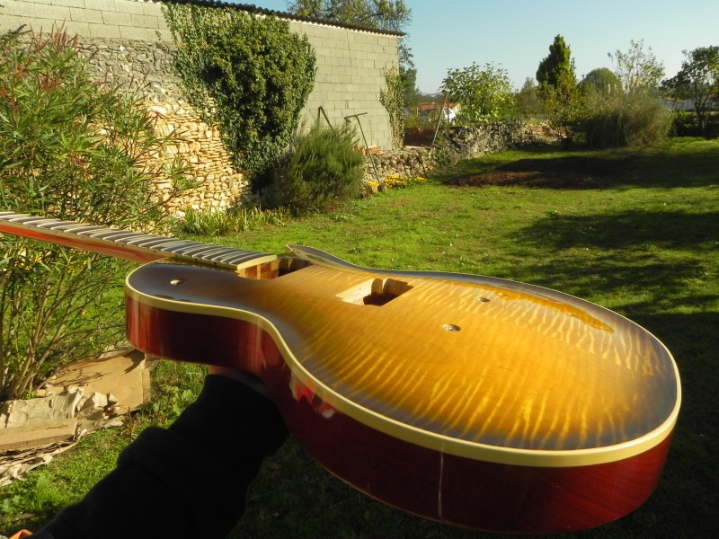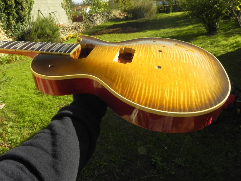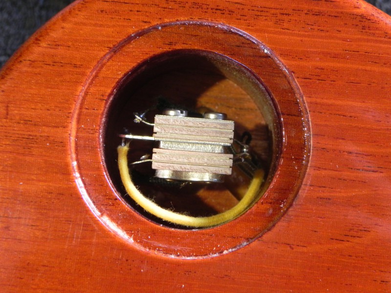 pour les PU on est partit sur un clone du set de pete thorn A5 neck A4 bridge , low bobine non waxpotté en équilibrant les niveaux double white bone aged