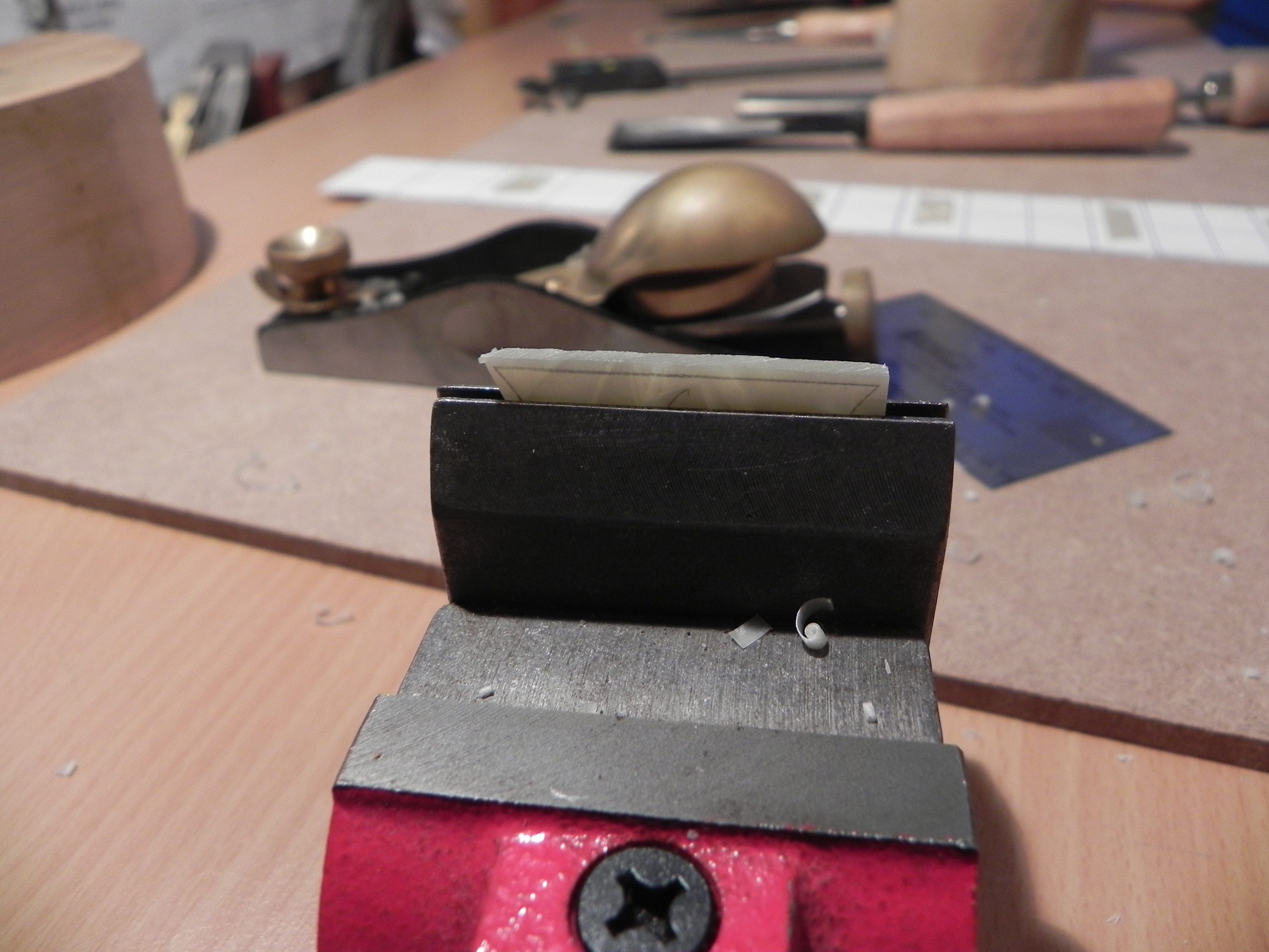 j'ai aussi passé un coup de cale à radius sur les frettes manière, et plus un seul rocker tout et droit comme la justice me restera que le crown et polissage.