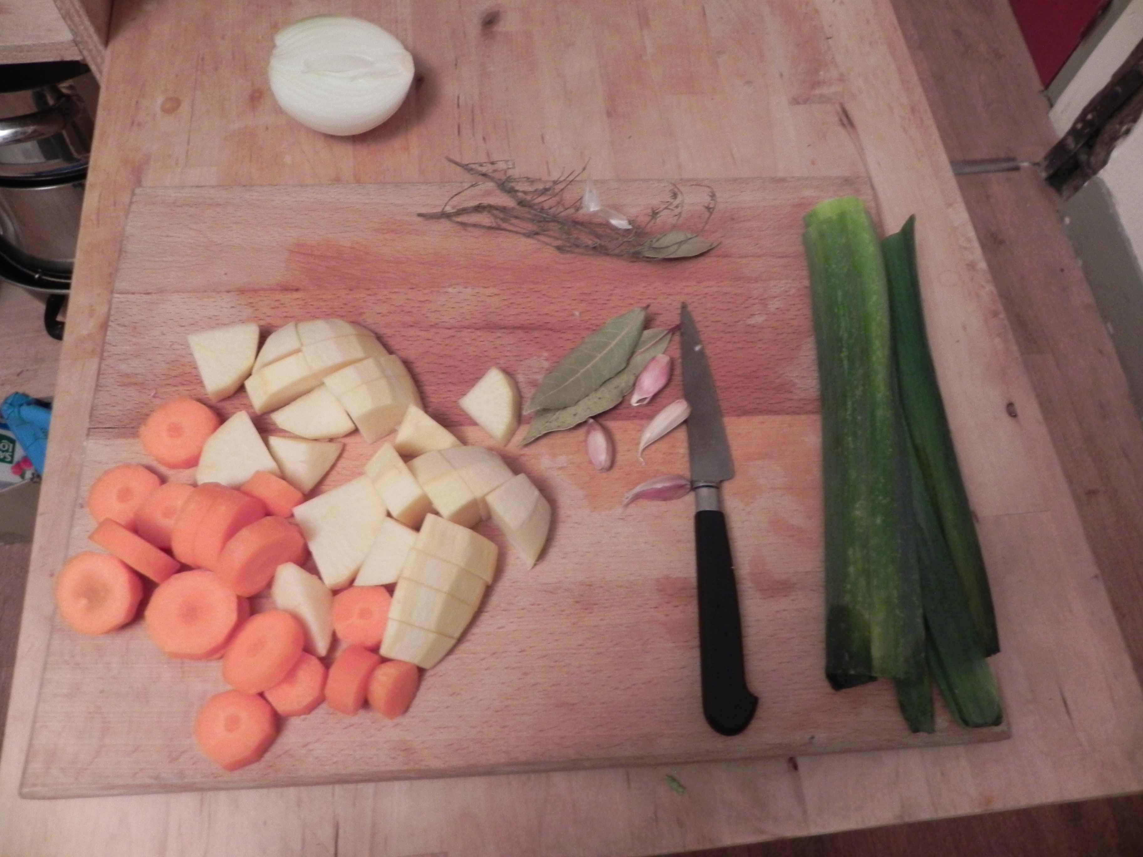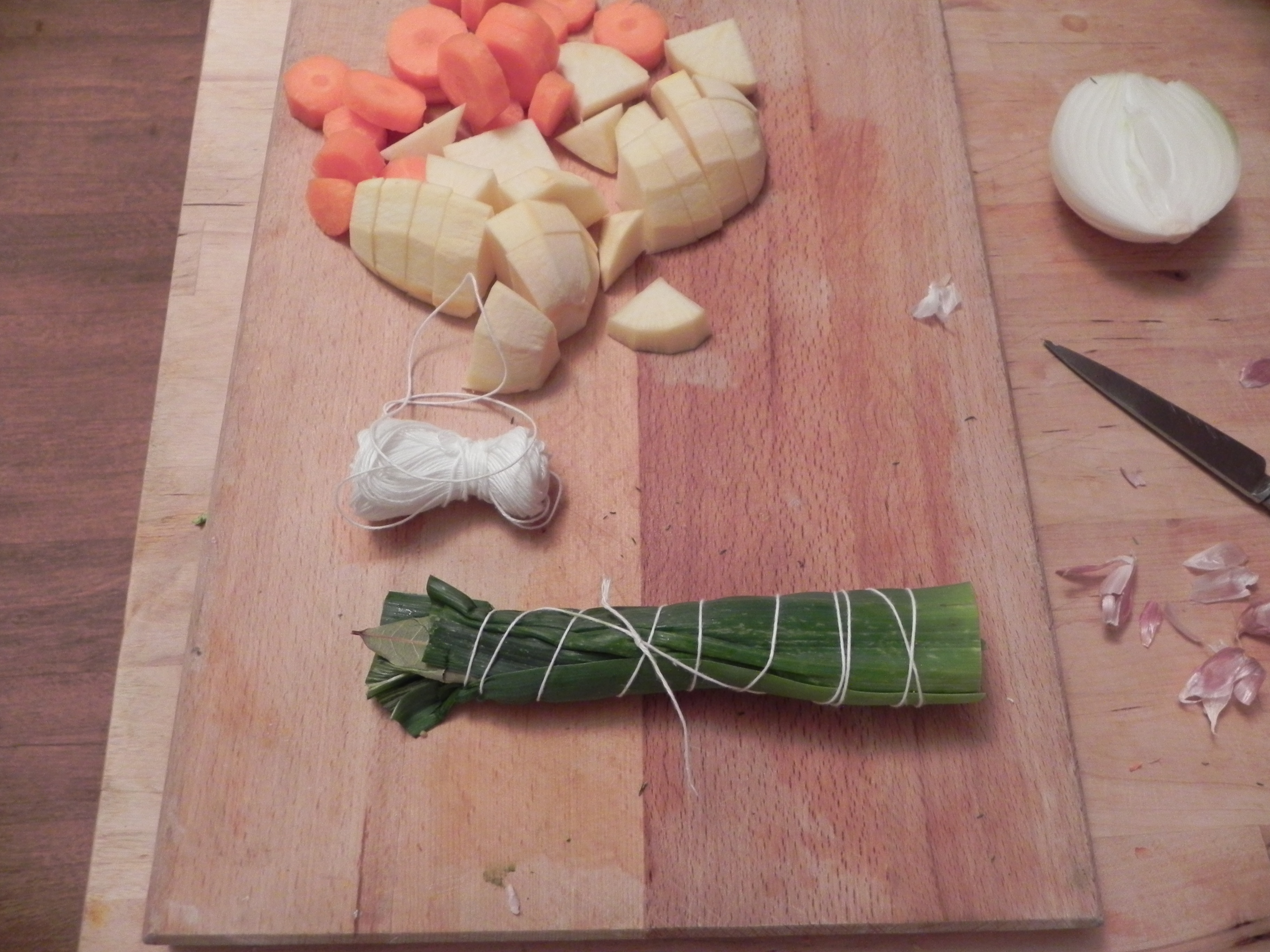 donc ensuite on a besoin d'une carotte et d'un navet et de quoi faire un joli bouquet garni