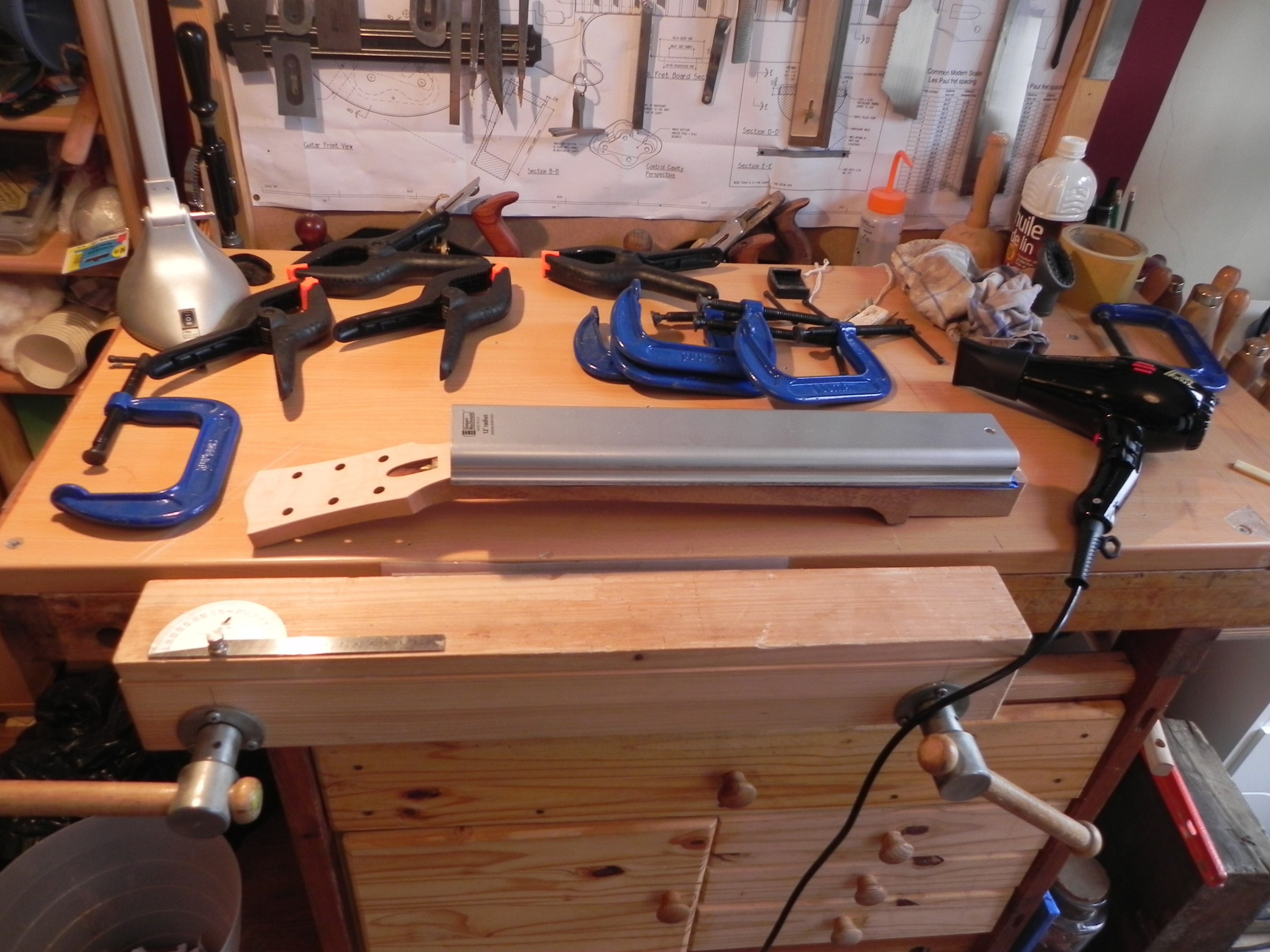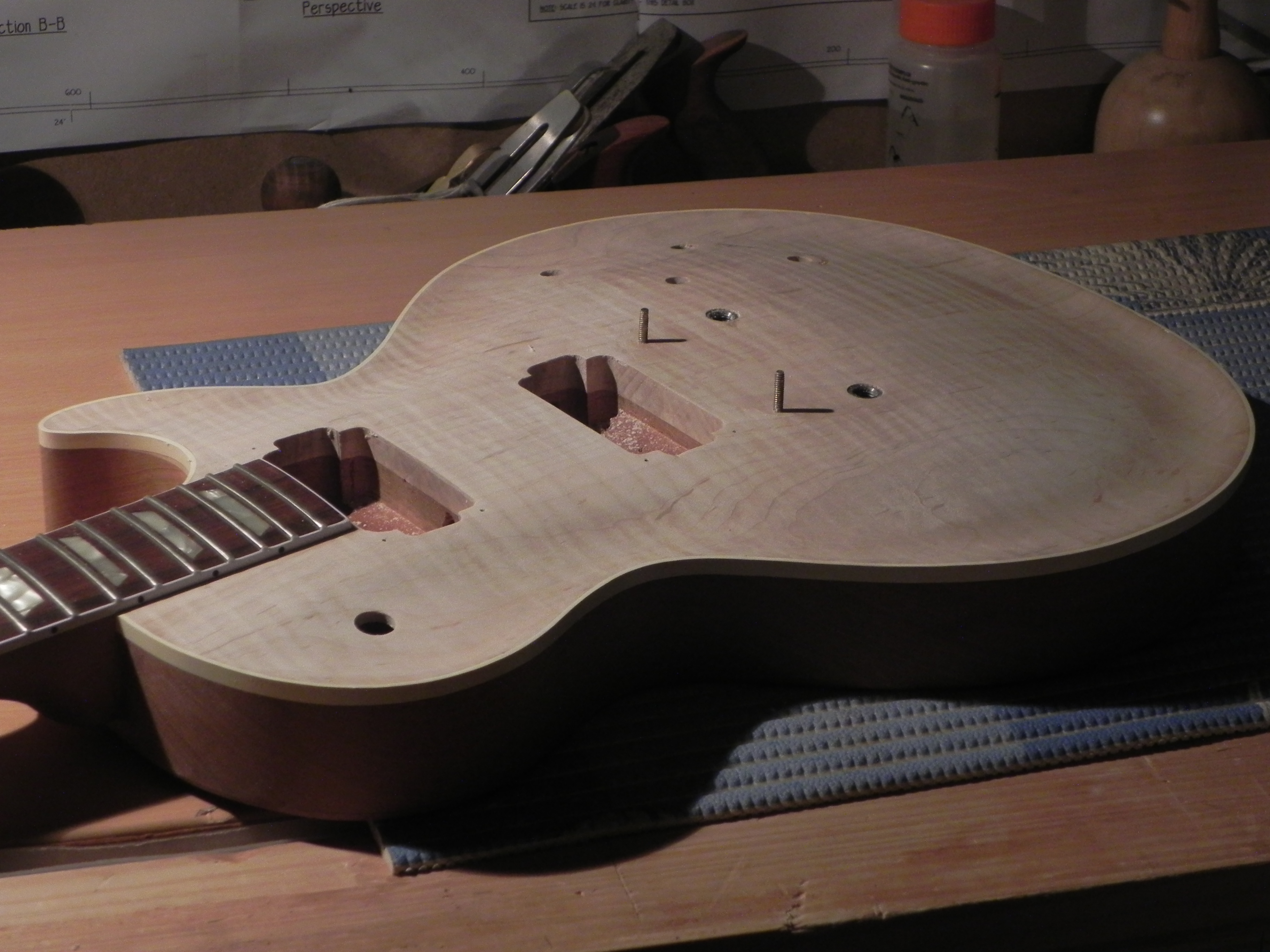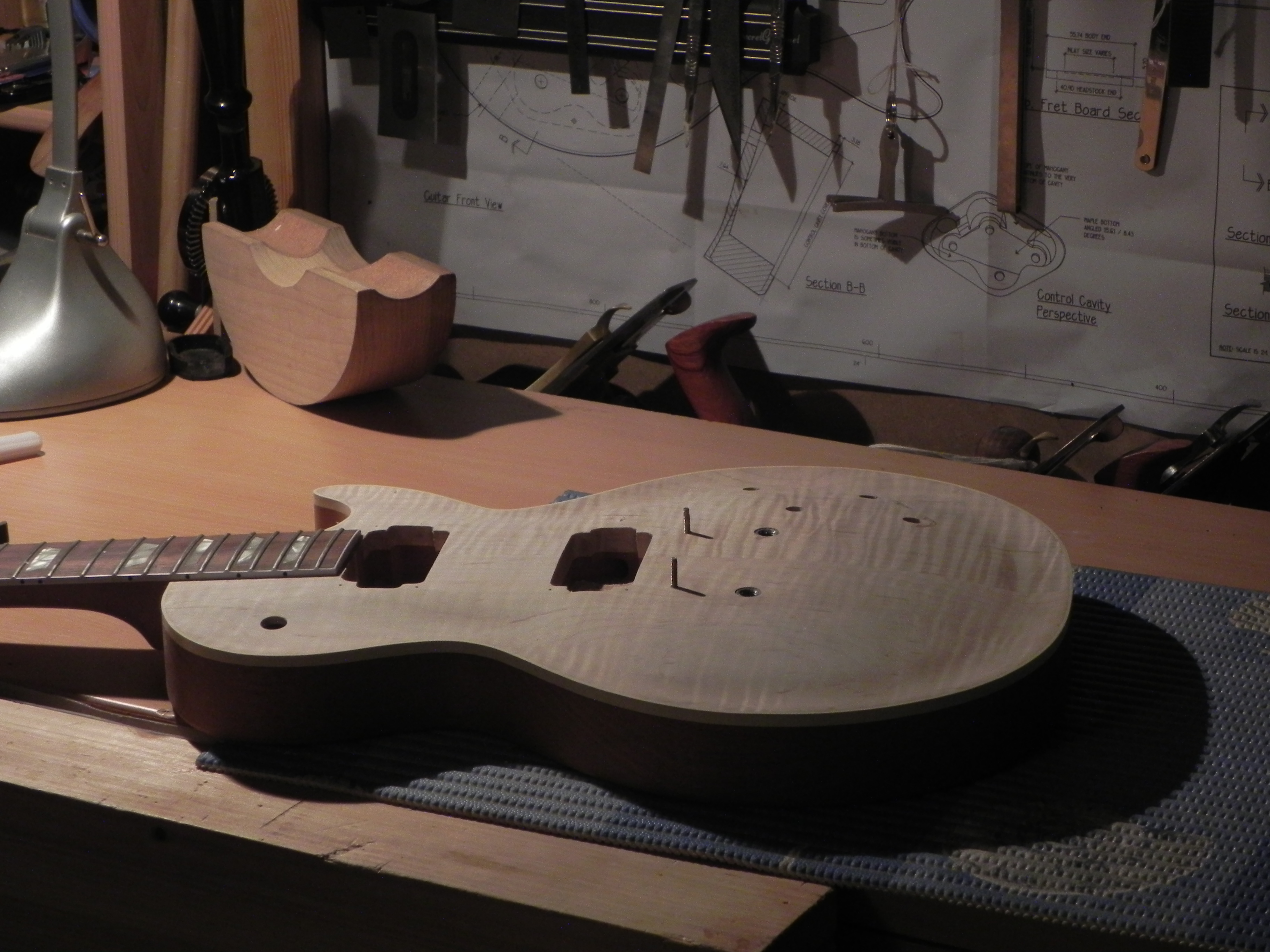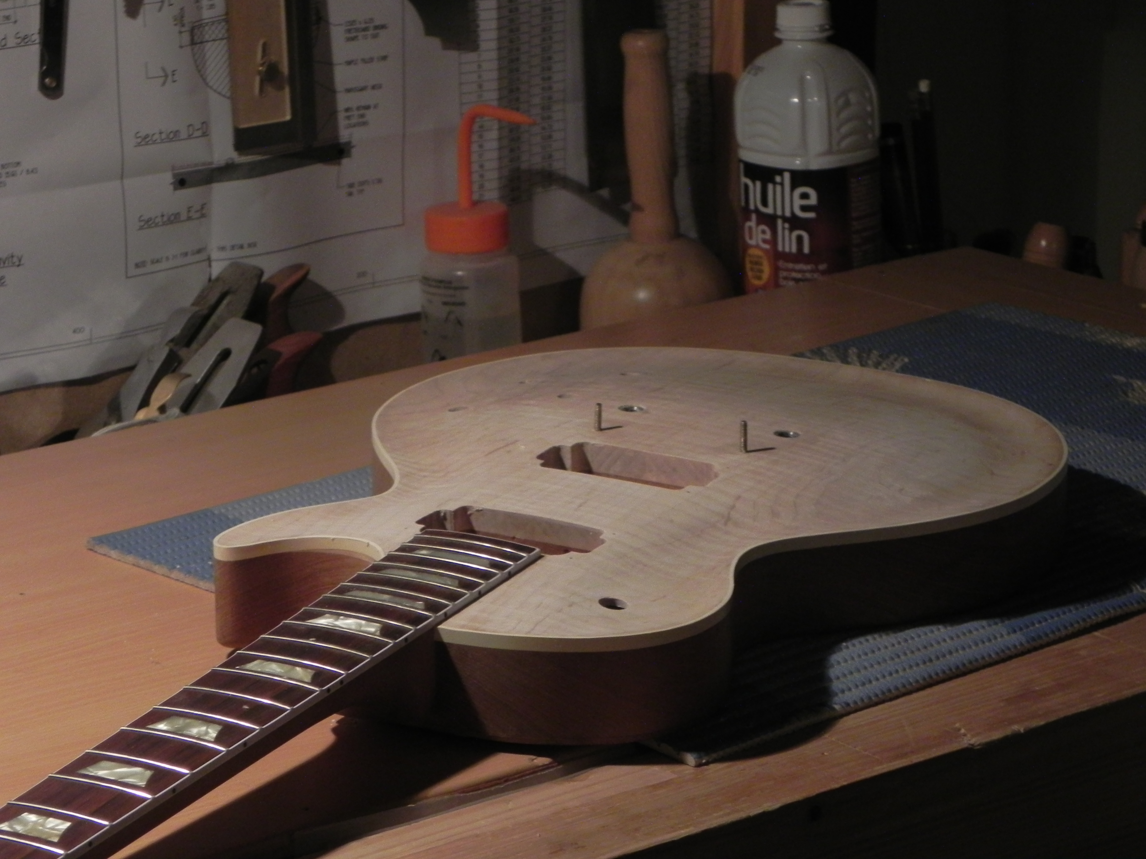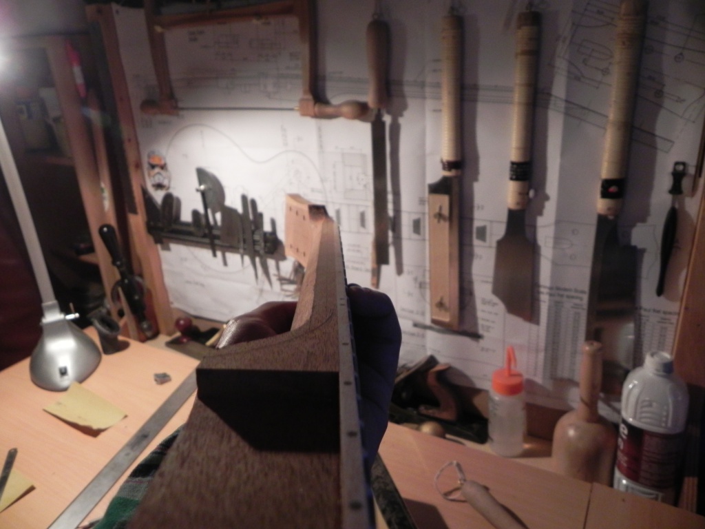 bon bé j'ai plus qu'a faire l'arrondi sur le back et après poncage le corps sera prêt pour accueillir le manche!!!