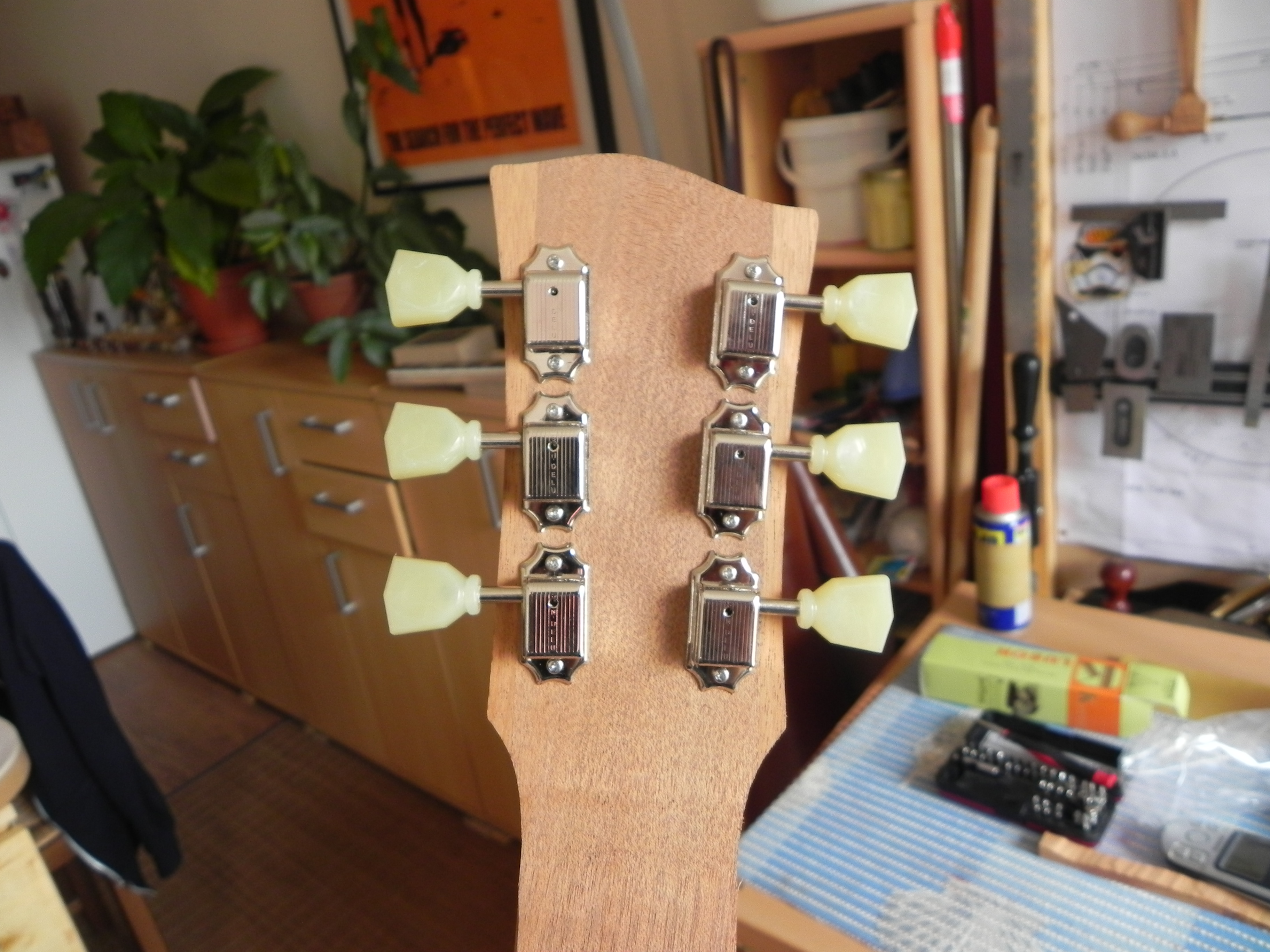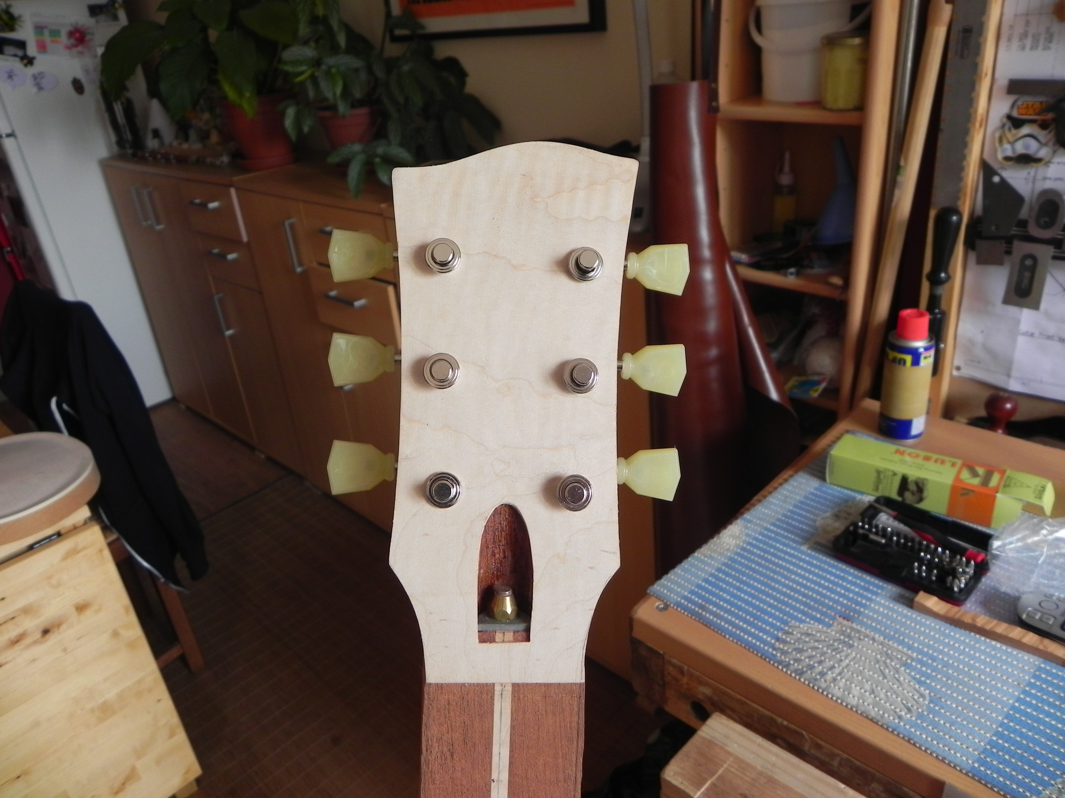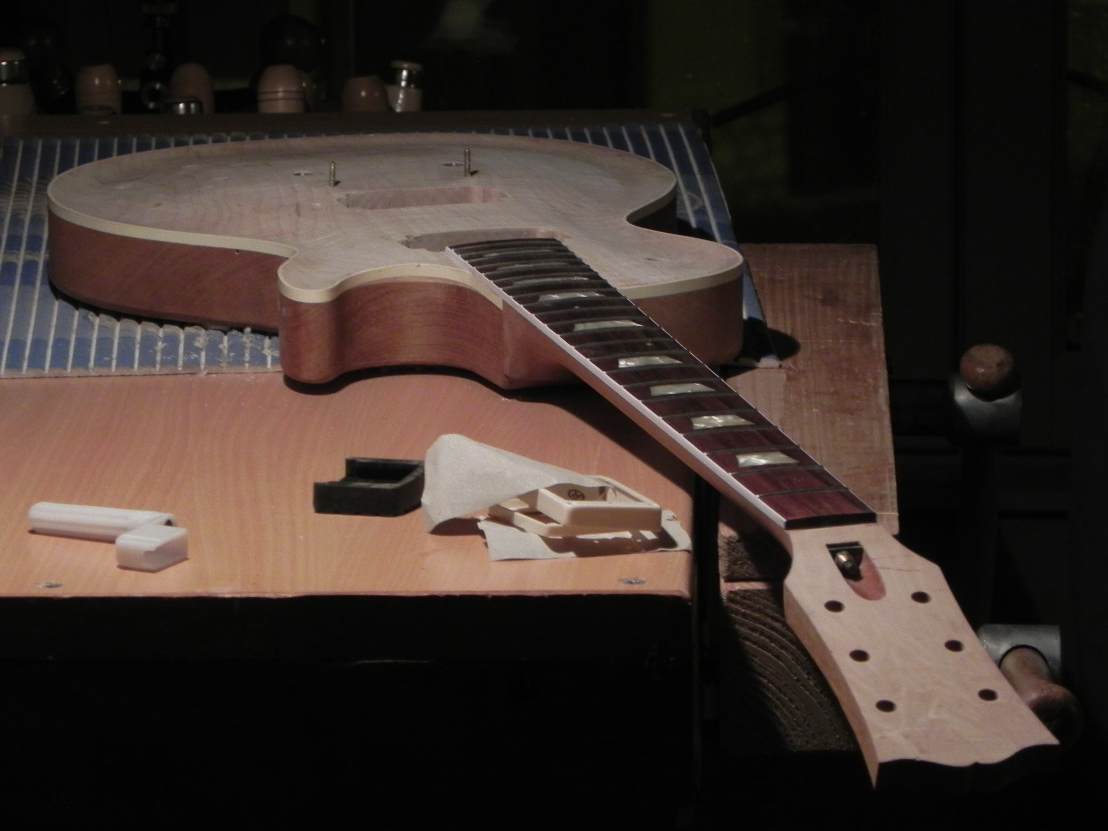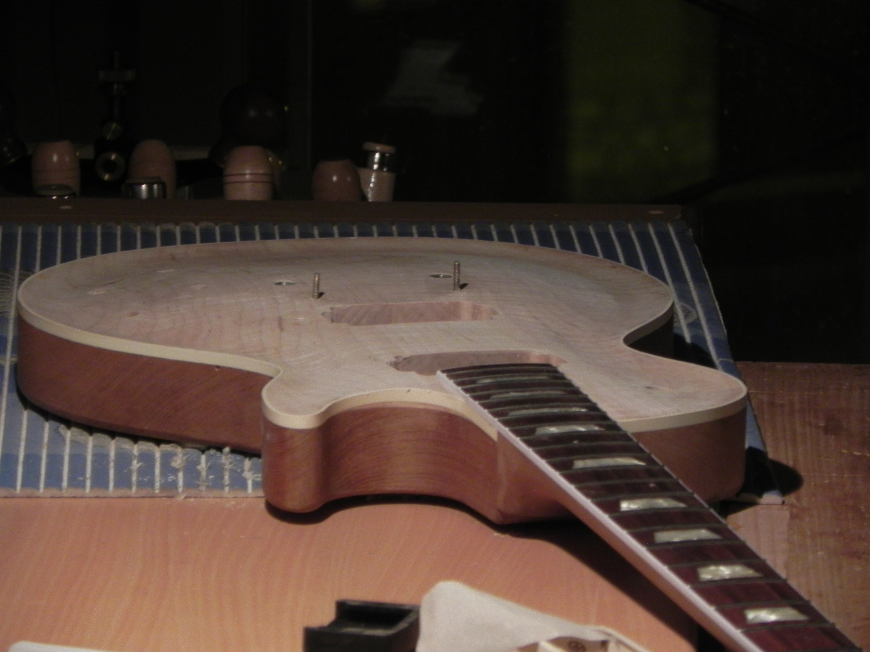 bon; sur les les paul des 50's; pas toutes mais en partie, il y a donc un dégradé entre l'érable et l'acajou donc bon je me suis dis voyons si je suis capable de faire ca a la main