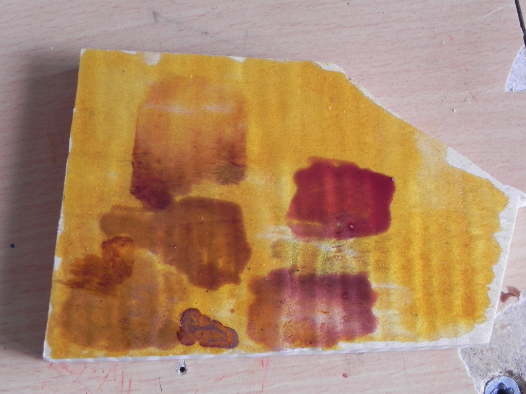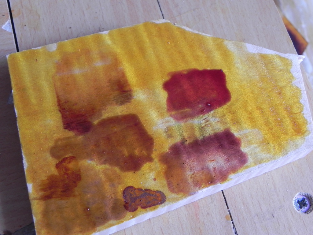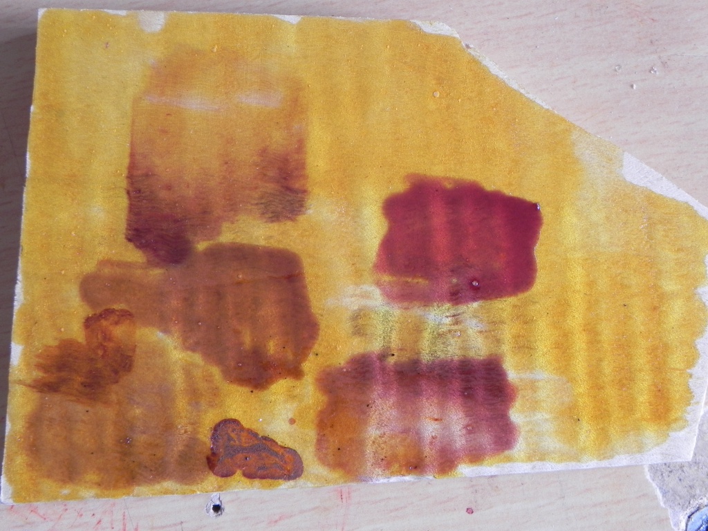 j'ai fait 2 melanges de rouge que je mets dehors depuis quelques temps deja et ils ont deja commencé a "tanner" entre temps j'ai fait un petit mix de janue metal complex qui me plait pas mal.