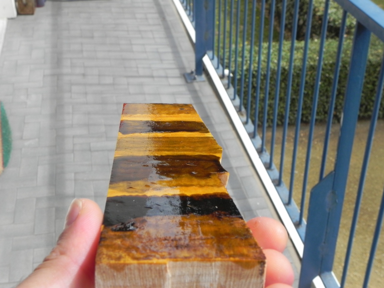 voila c'est bien dégueu mais ca me donne une idée sur comment faire évoluer les mix, je vais essayer de faire un mix entre le marron et le rouge genre recharger en rouge le 1er mix de red ( en haut) et mettre le tout au soleil et apres une couche de clear ambré pour voir comment ca réagit