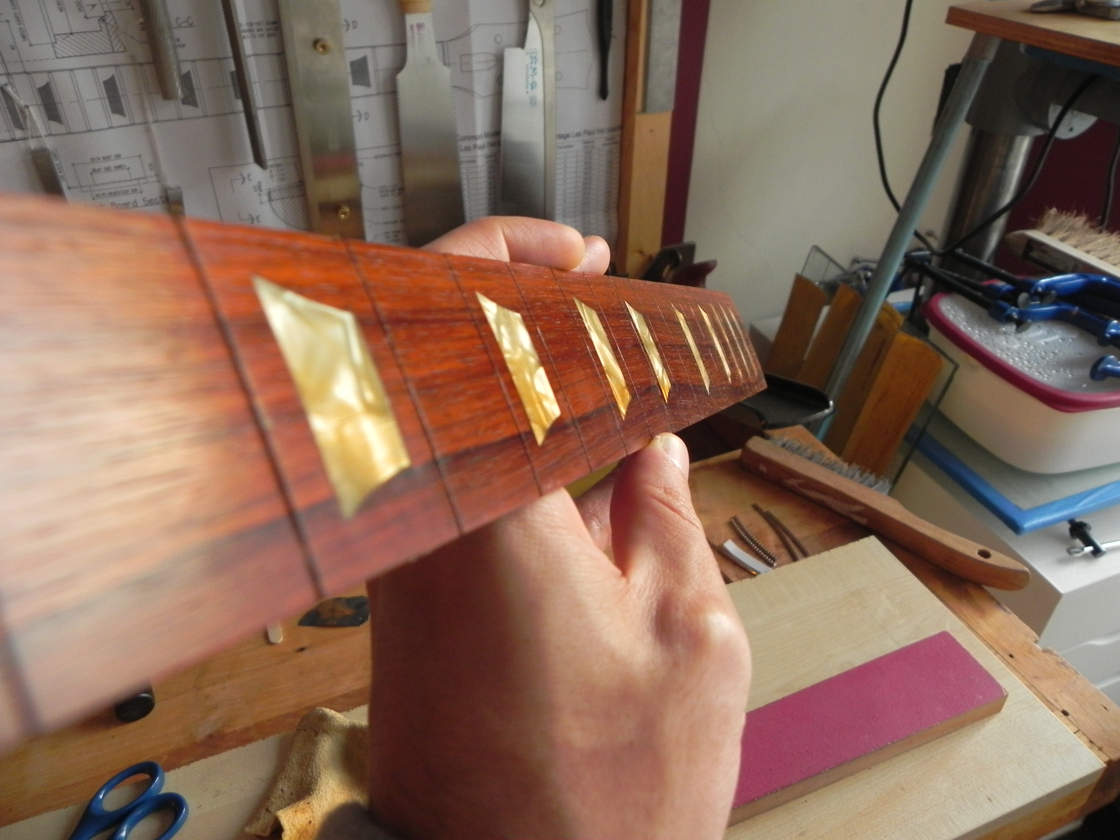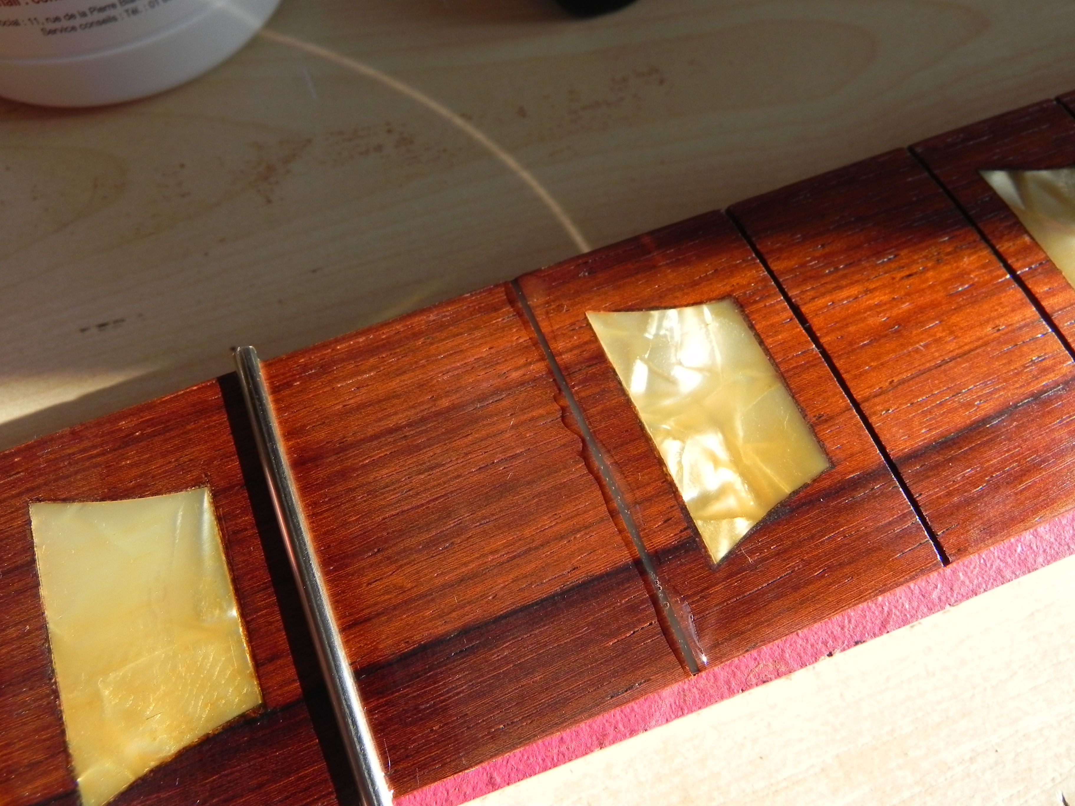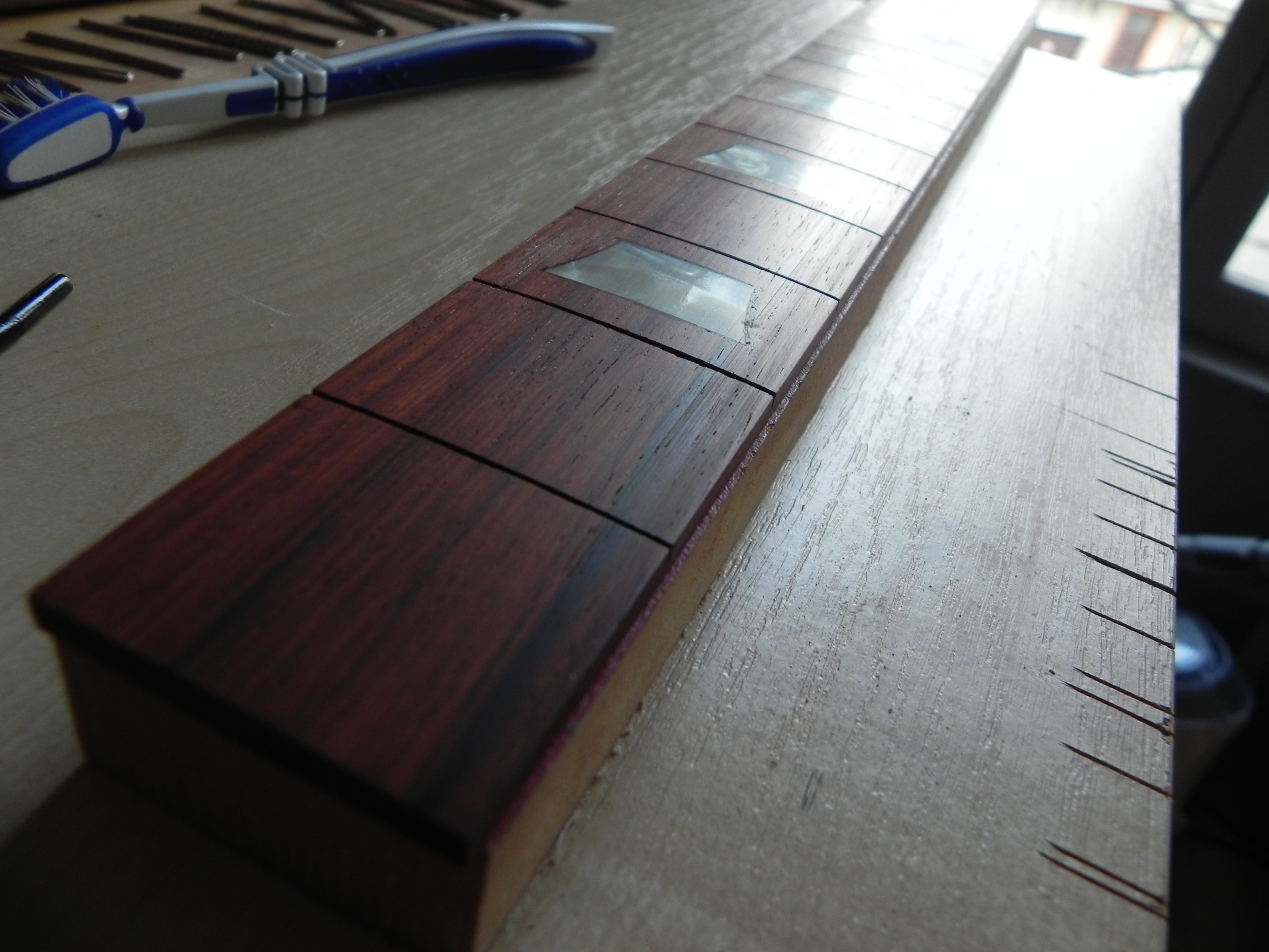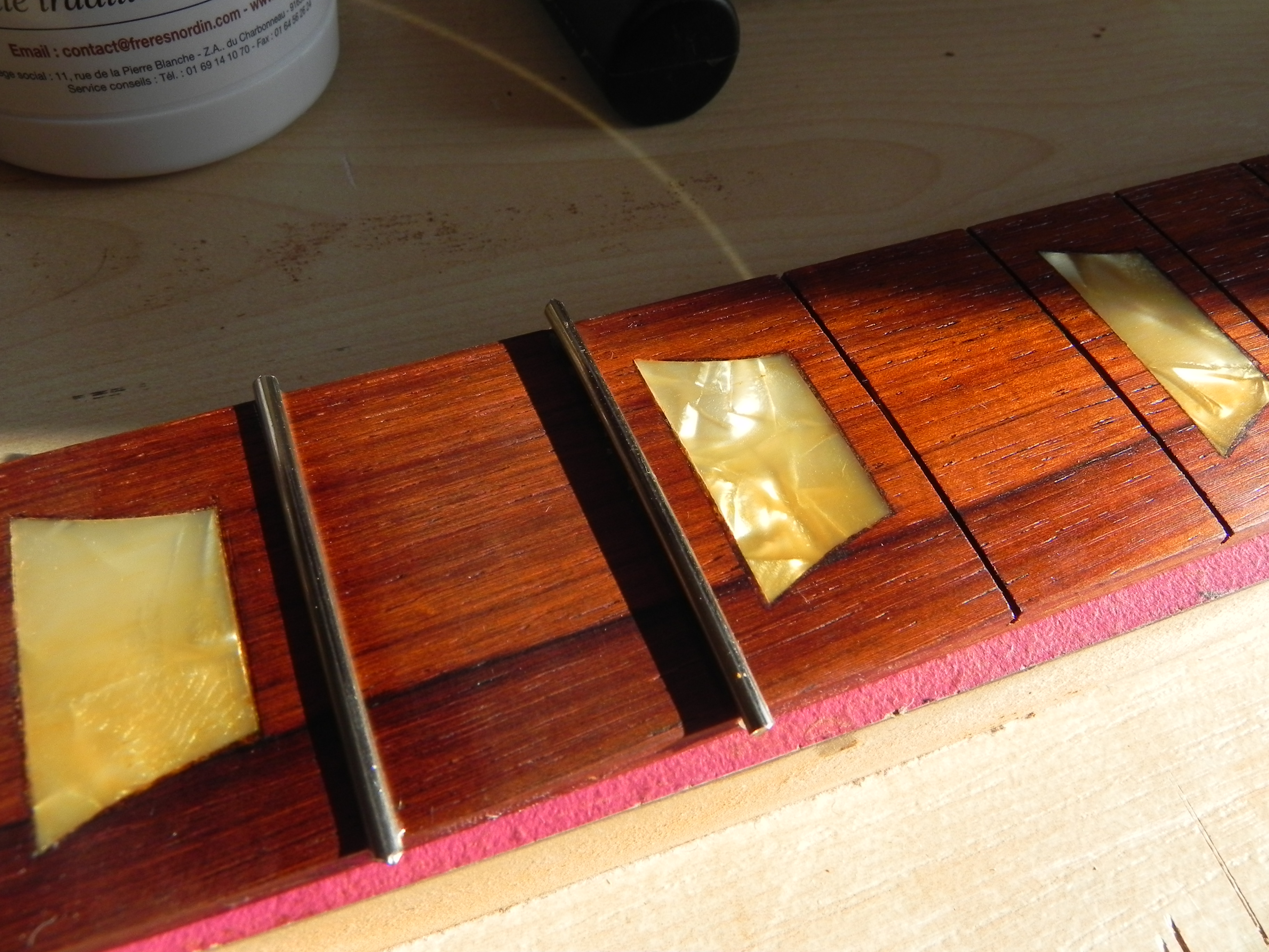 alors là j'en suis au board donc et il est temps pour les frets slots et les inlays