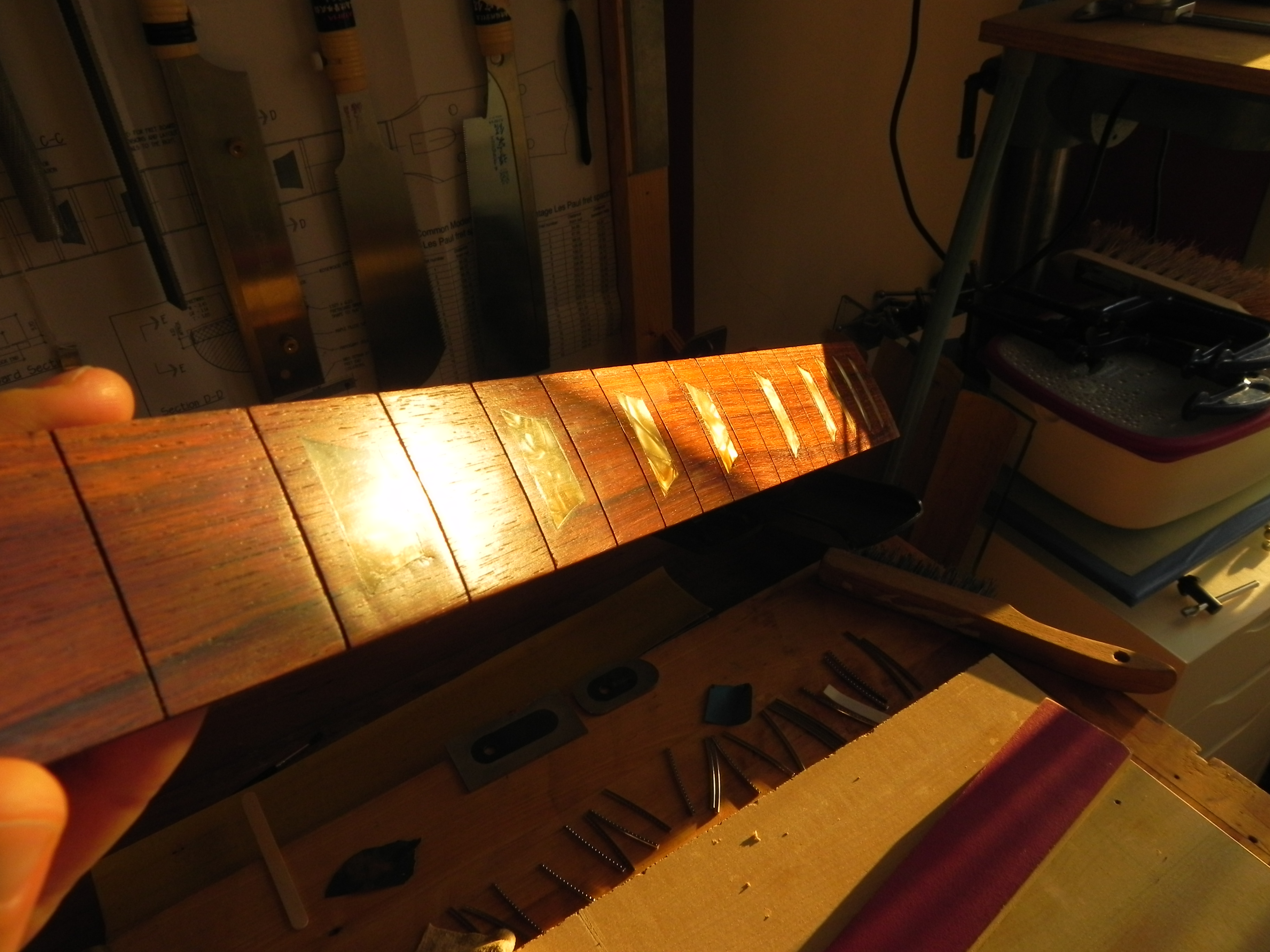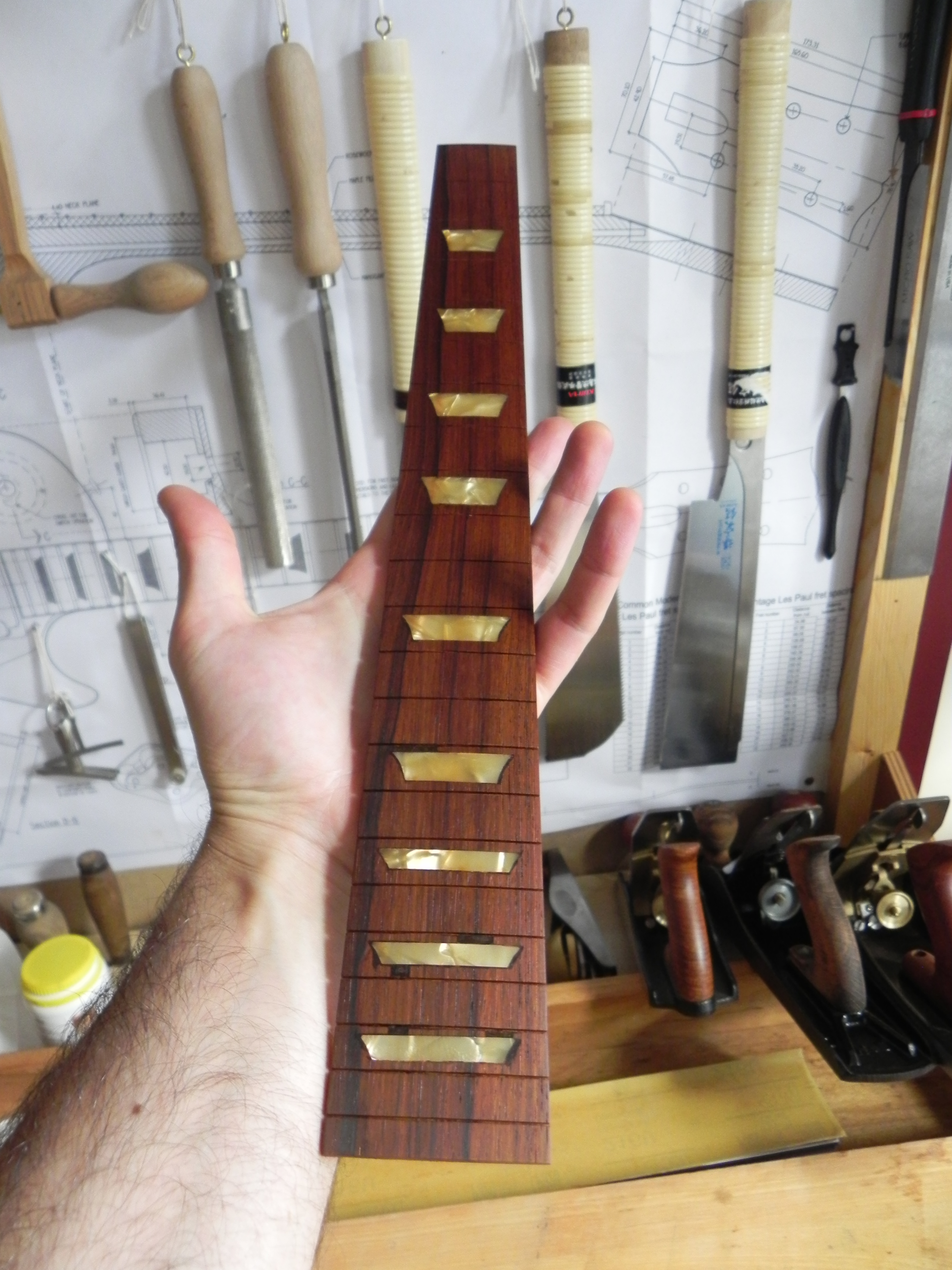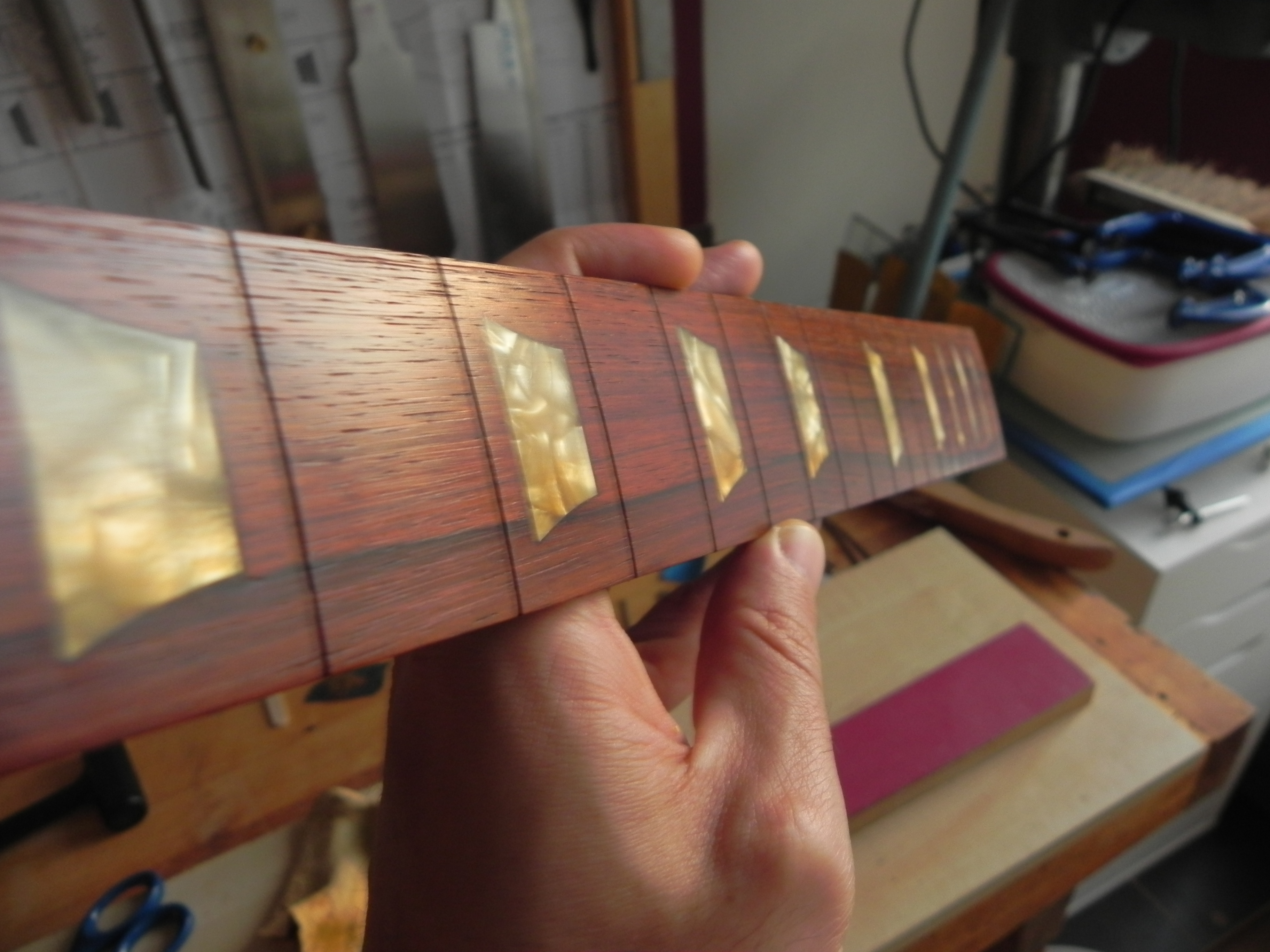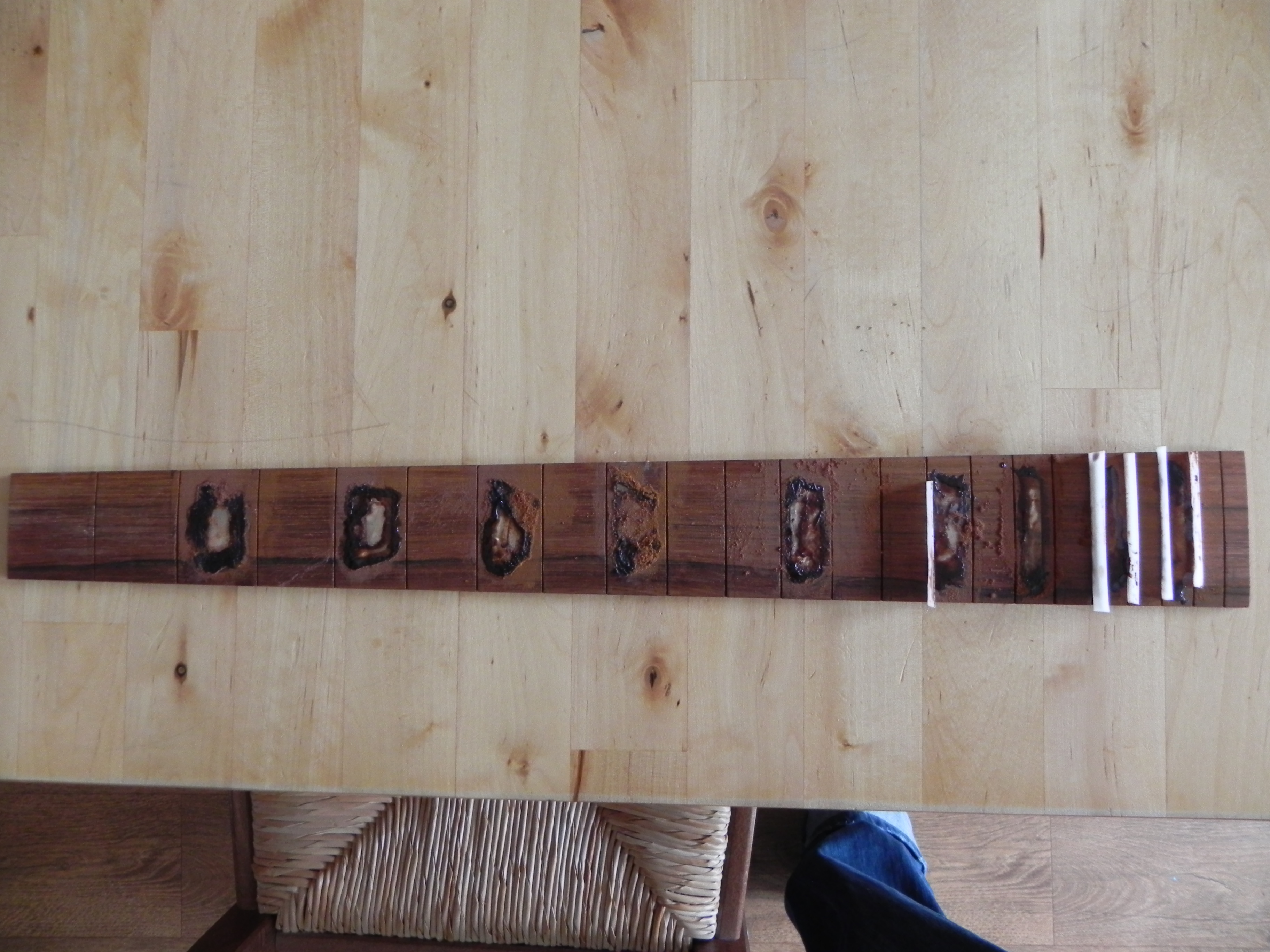 alors là j'en suis au board donc et il est temps pour les frets slots et les inlays