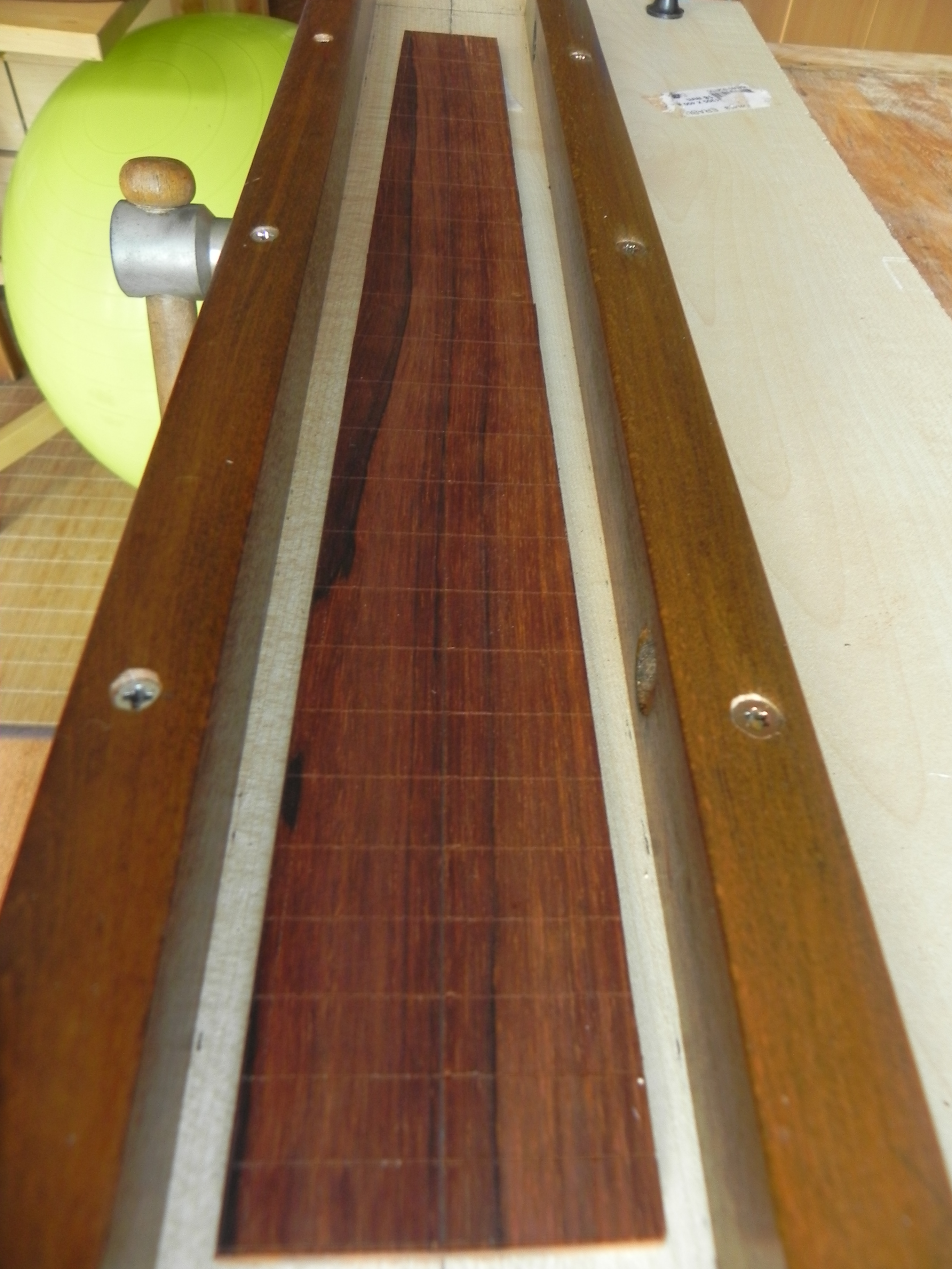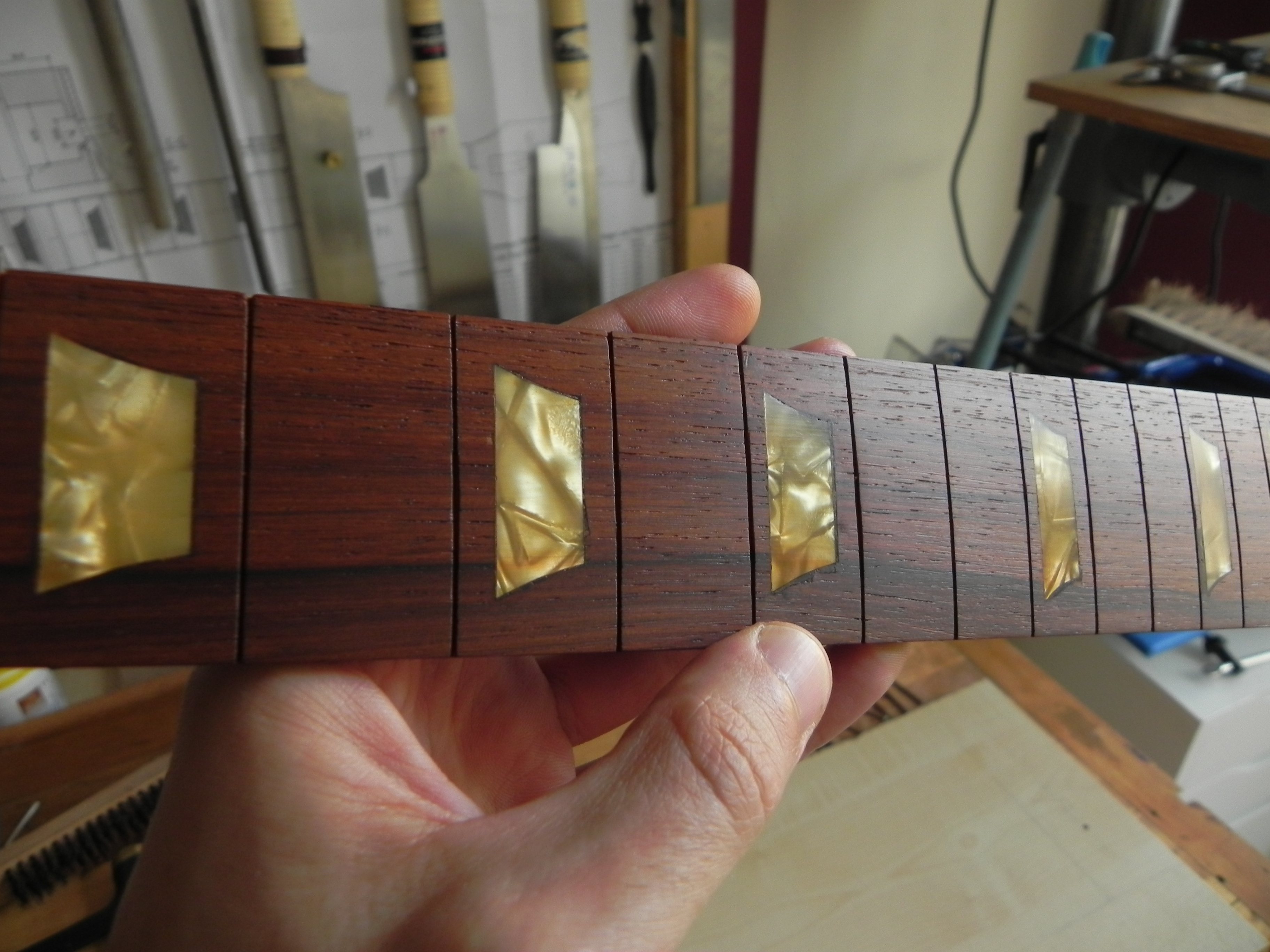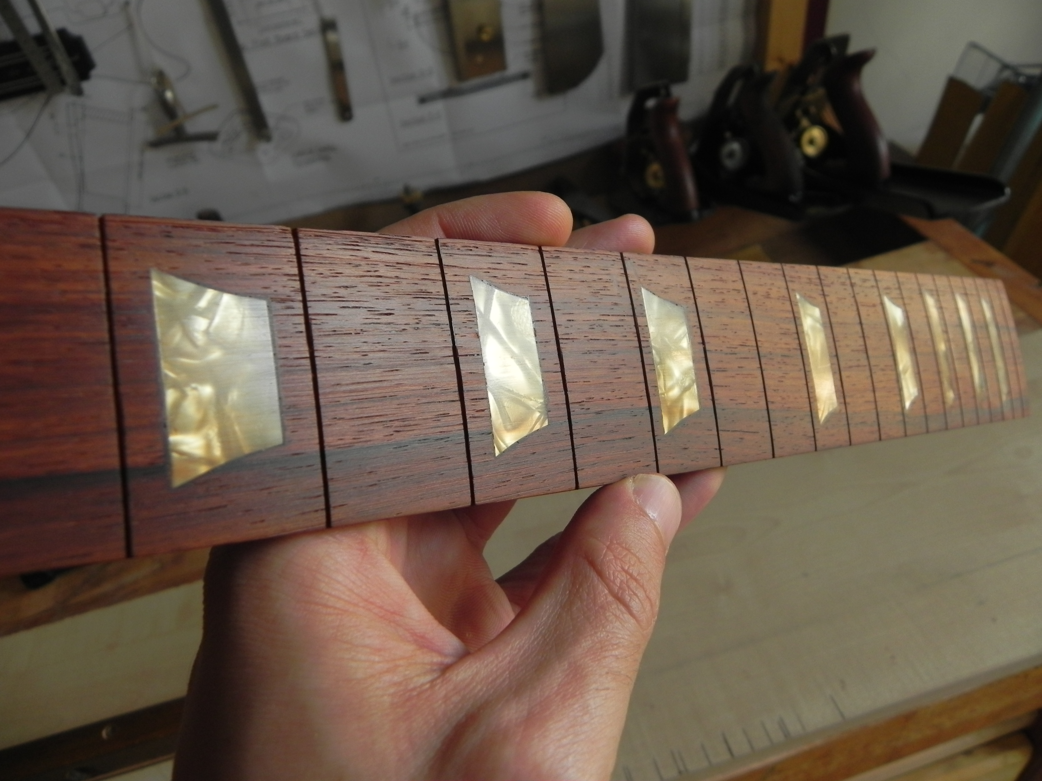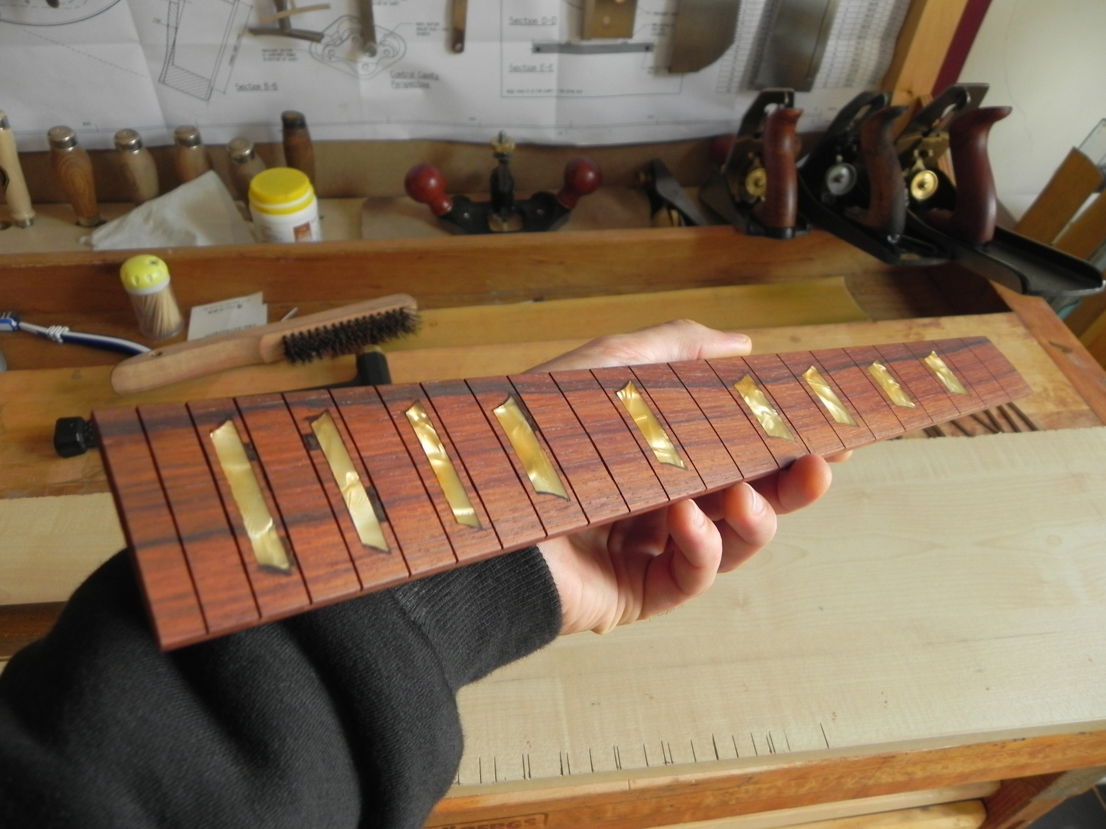 alors là j'en suis au board donc et il est temps pour les frets slots et les inlays