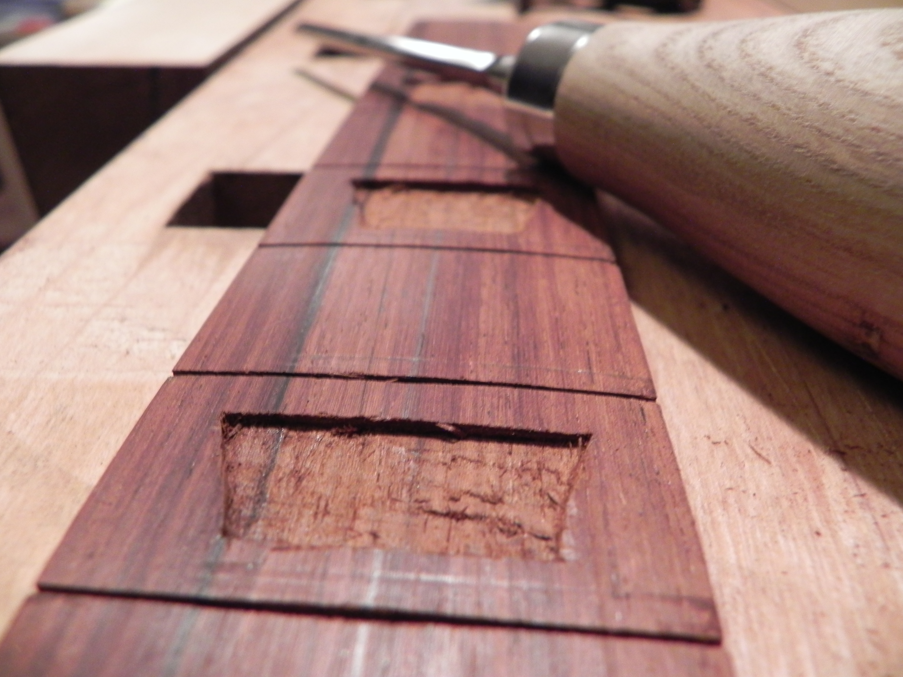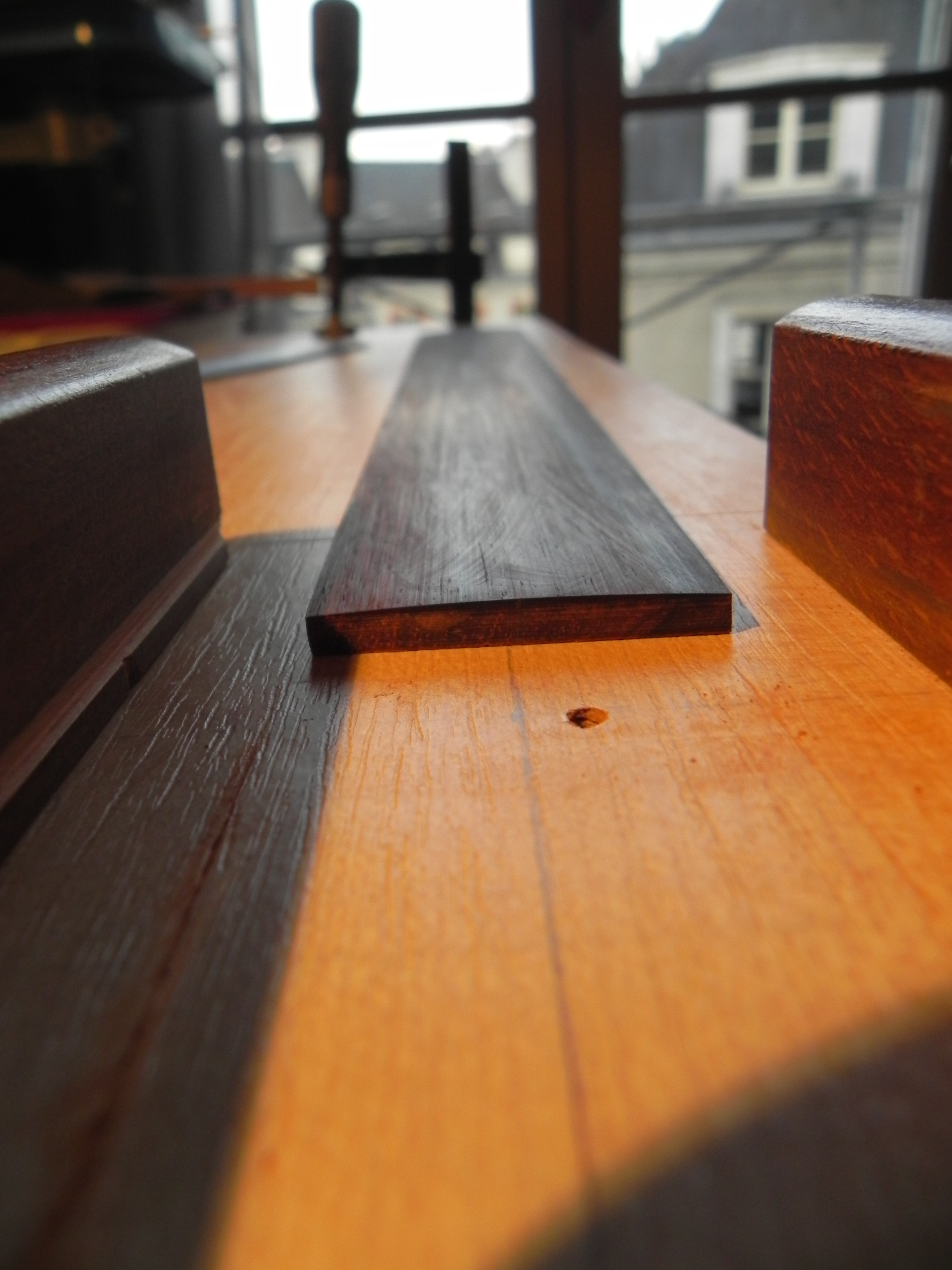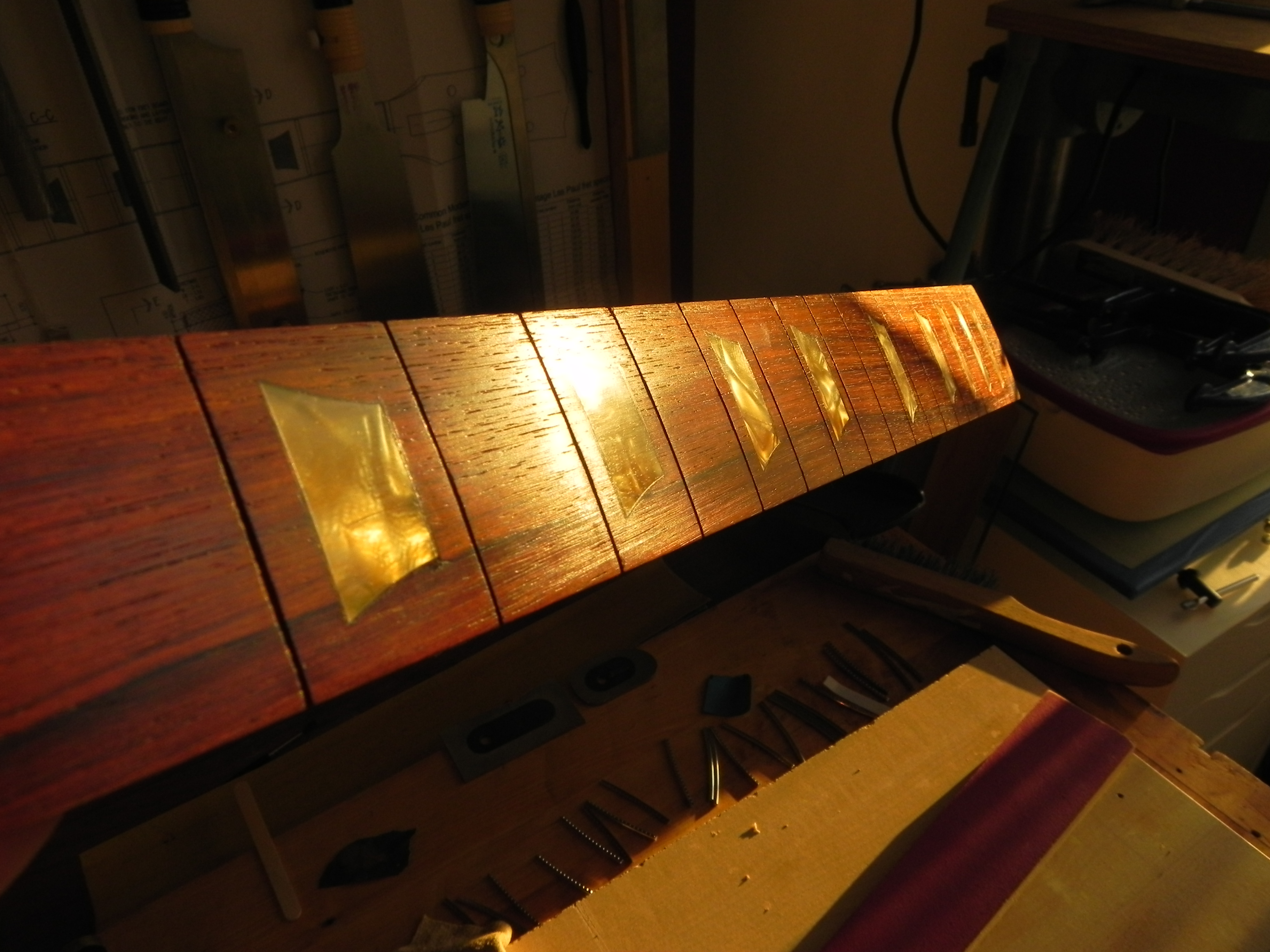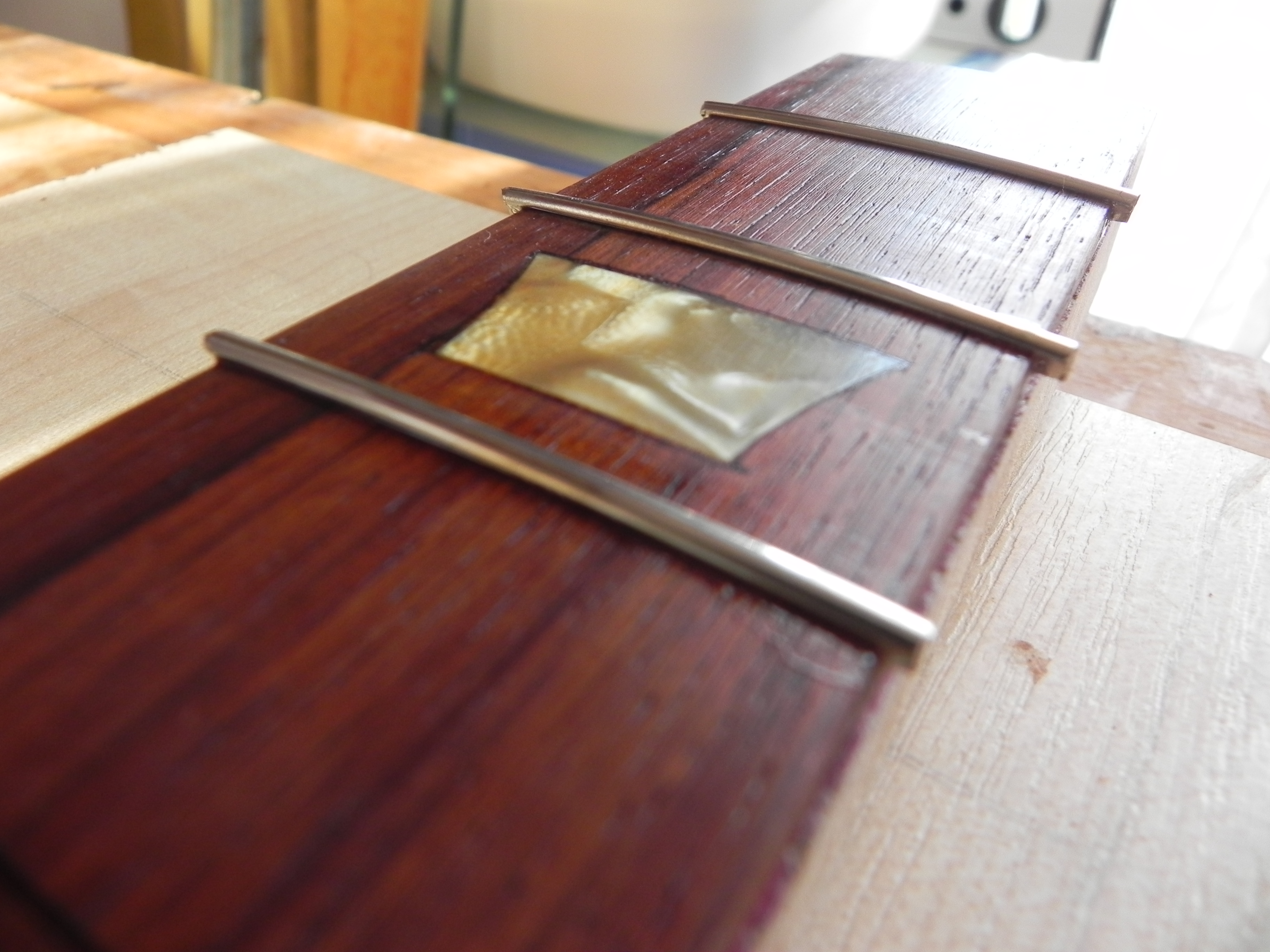 alors là j'en suis au board donc et il est temps pour les frets slots et les inlays