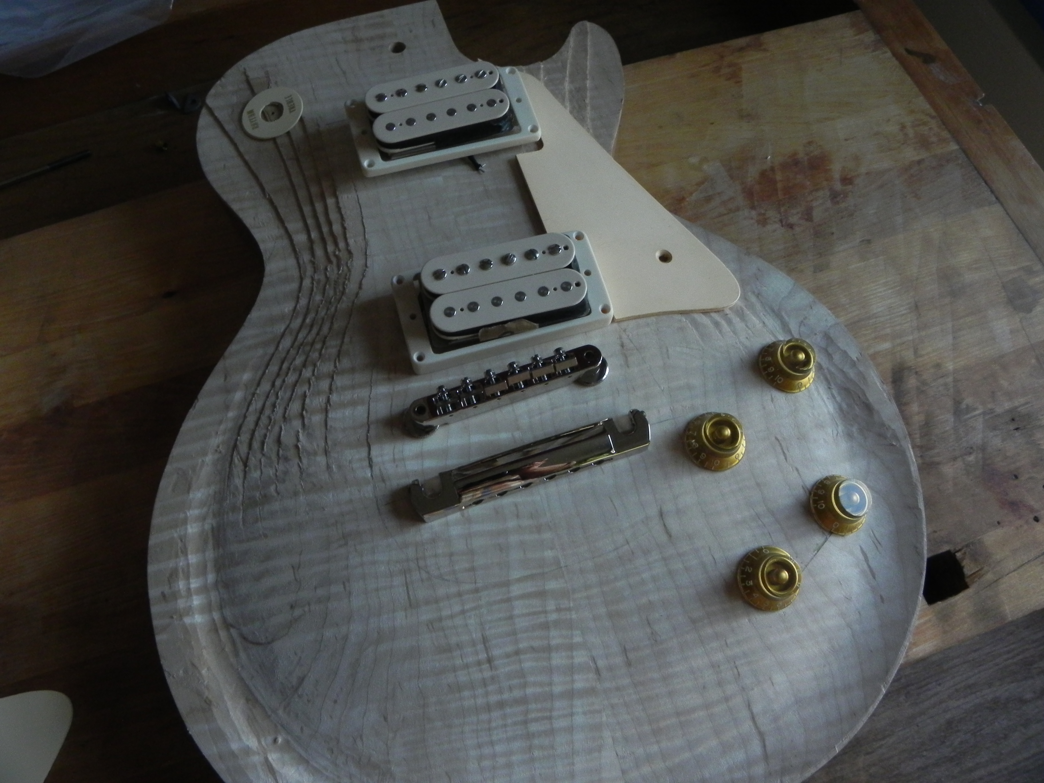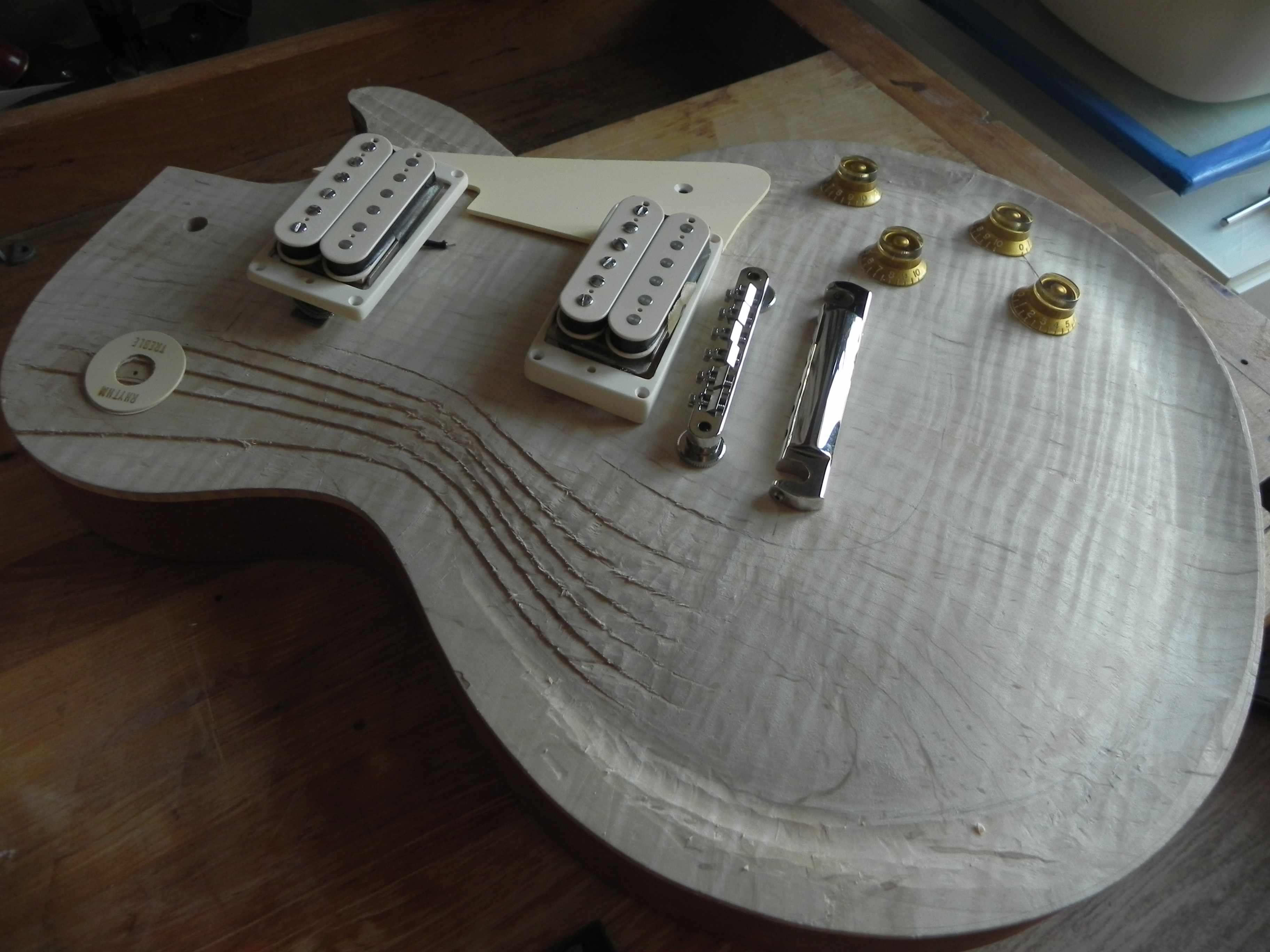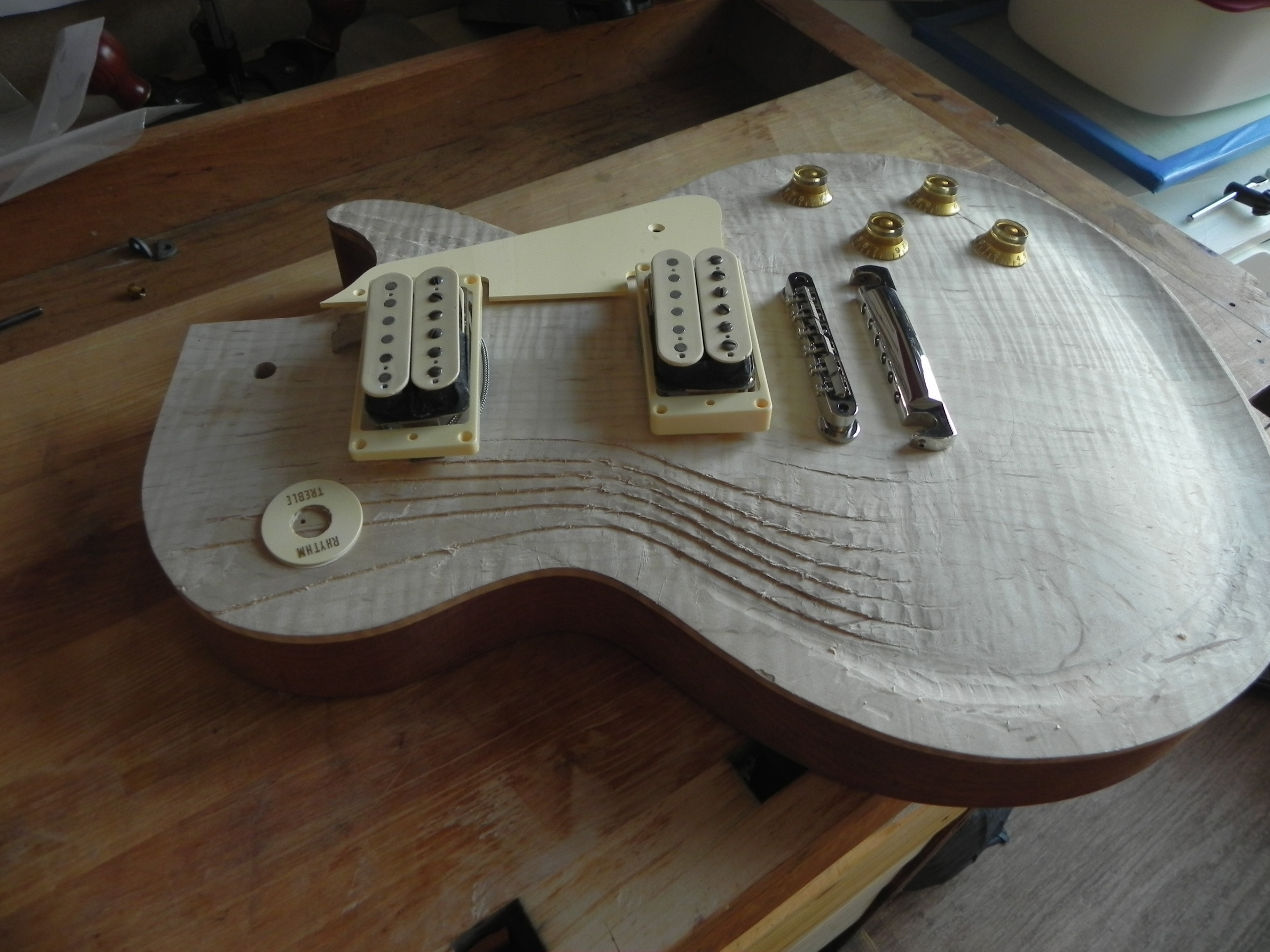 une fois le board poncé une dernière fois, je vais essayer de donner une patine , âger les inlays toussa..un petit coup de brosse métallique pour ouvrir les pores,un petit coup d'acetone et hop