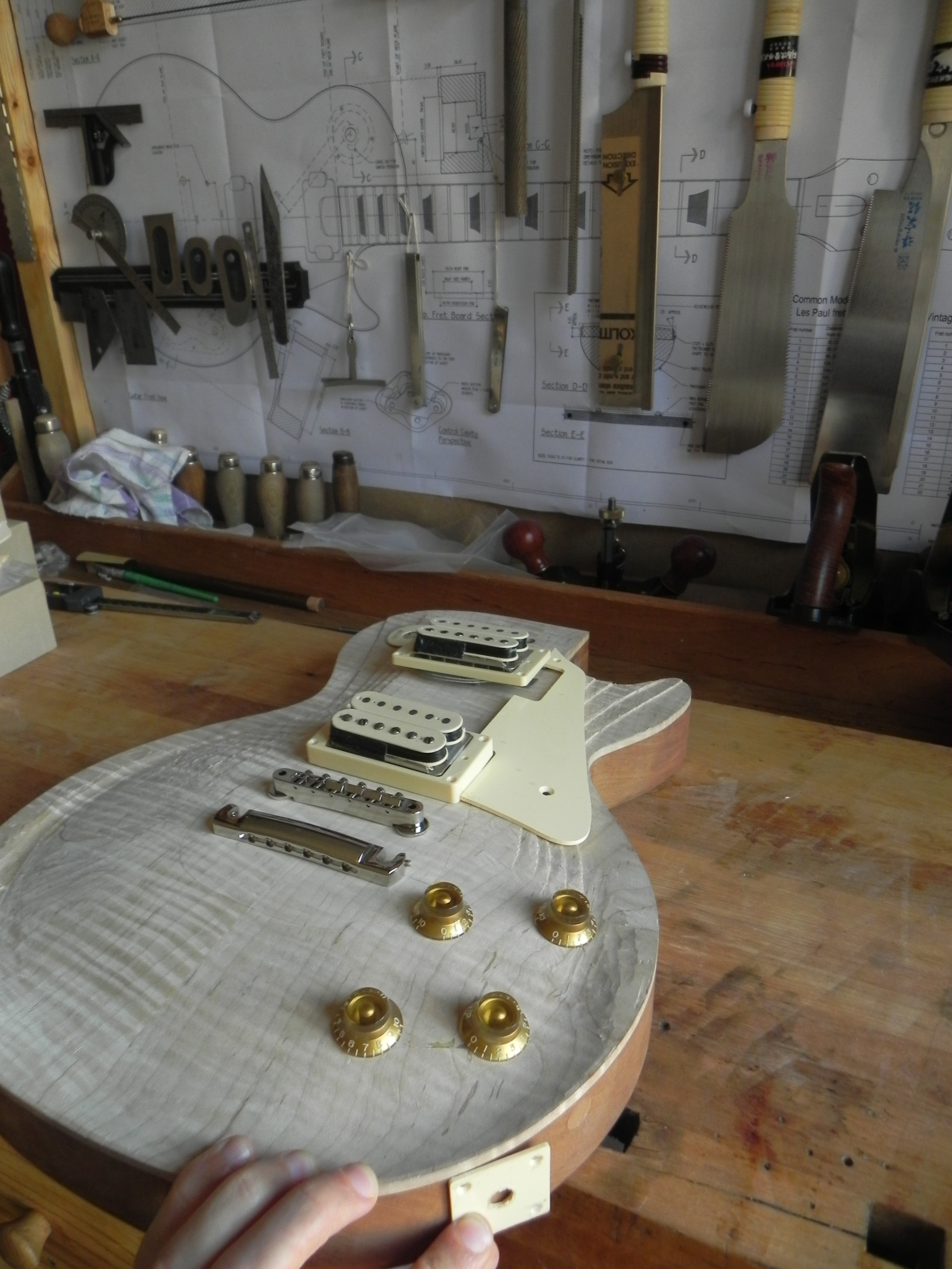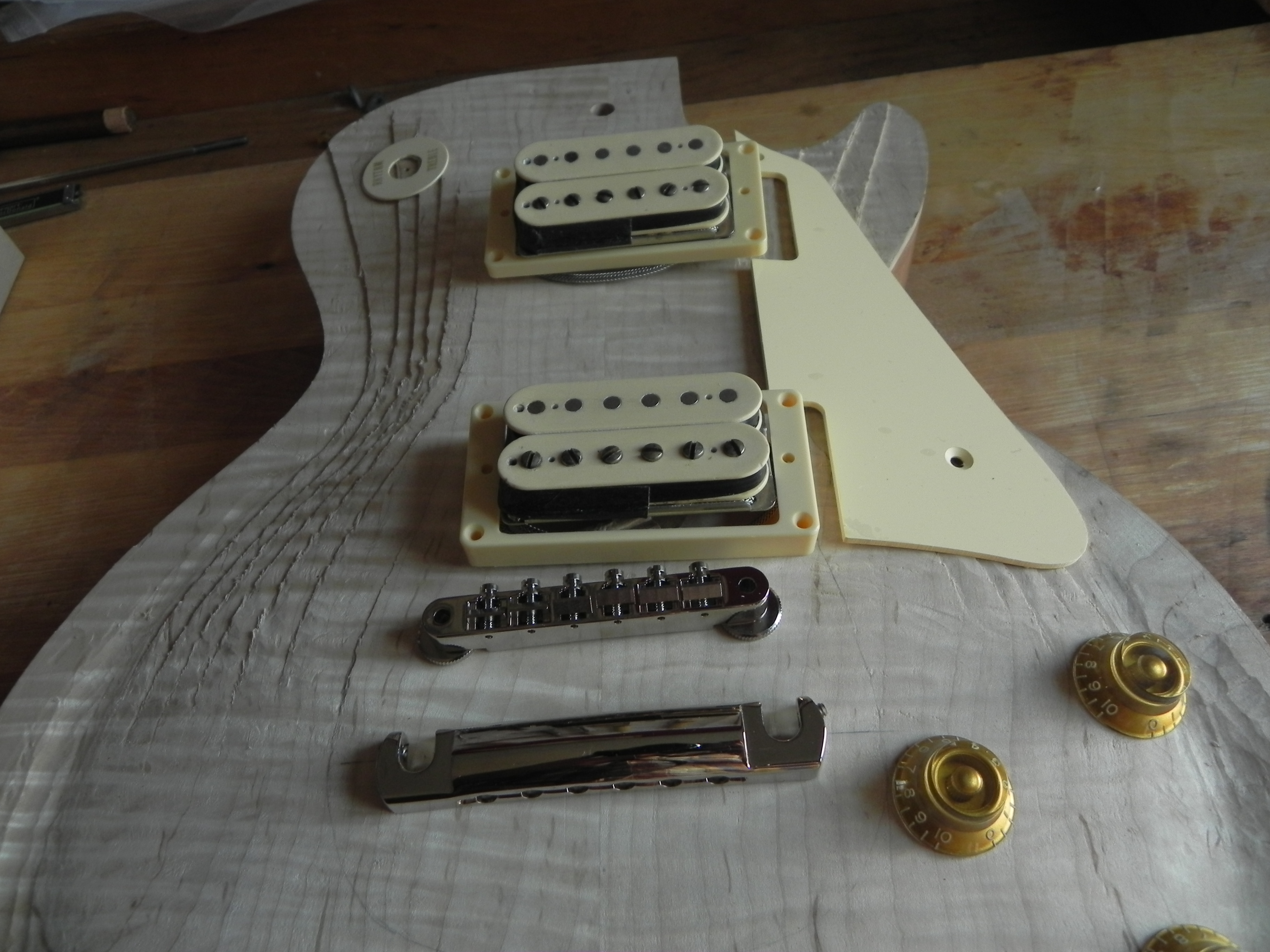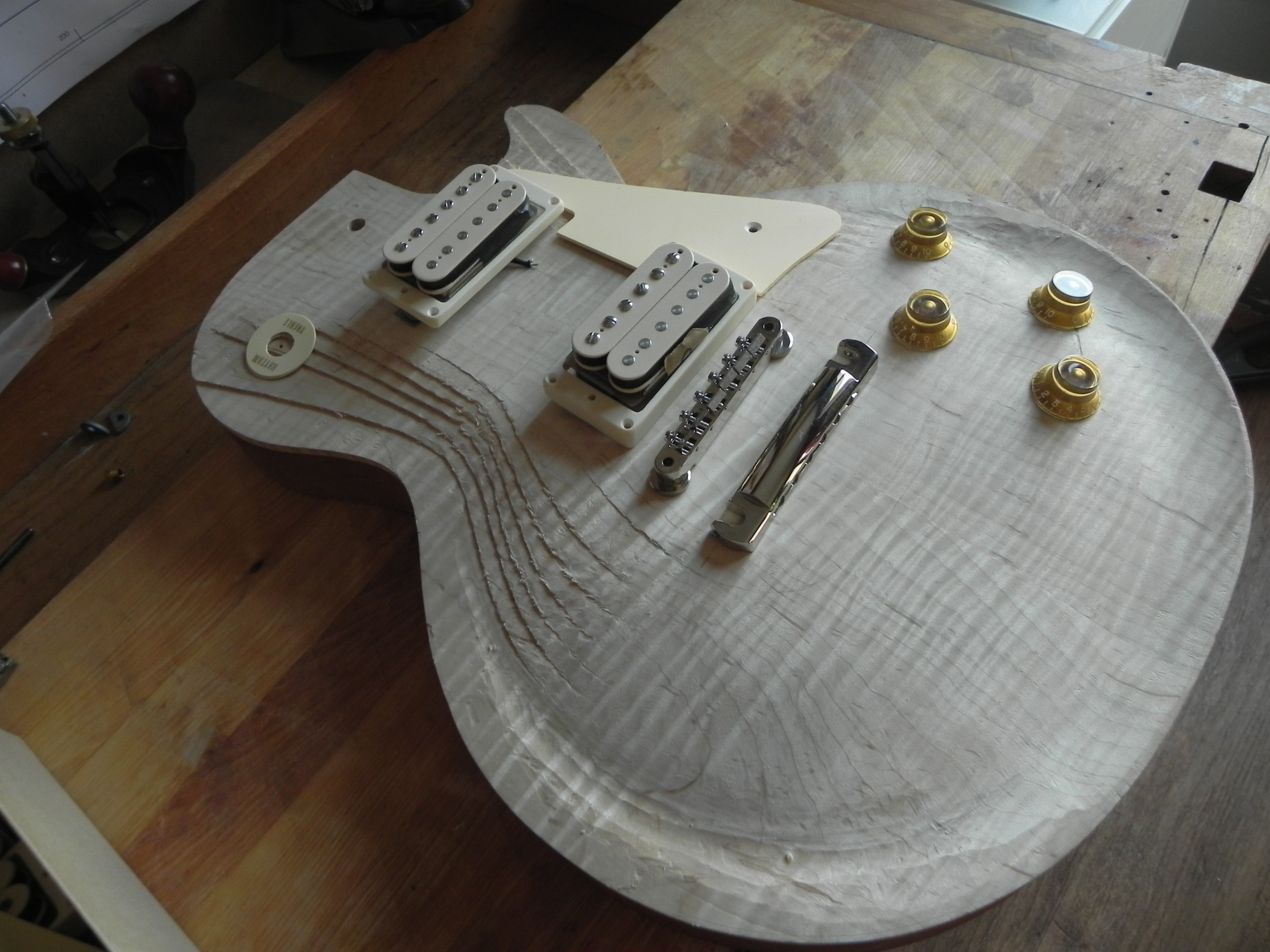 une fois le board poncé une dernière fois, je vais essayer de donner une patine , âger les inlays toussa..un petit coup de brosse métallique pour ouvrir les pores,un petit coup d'acetone et hop