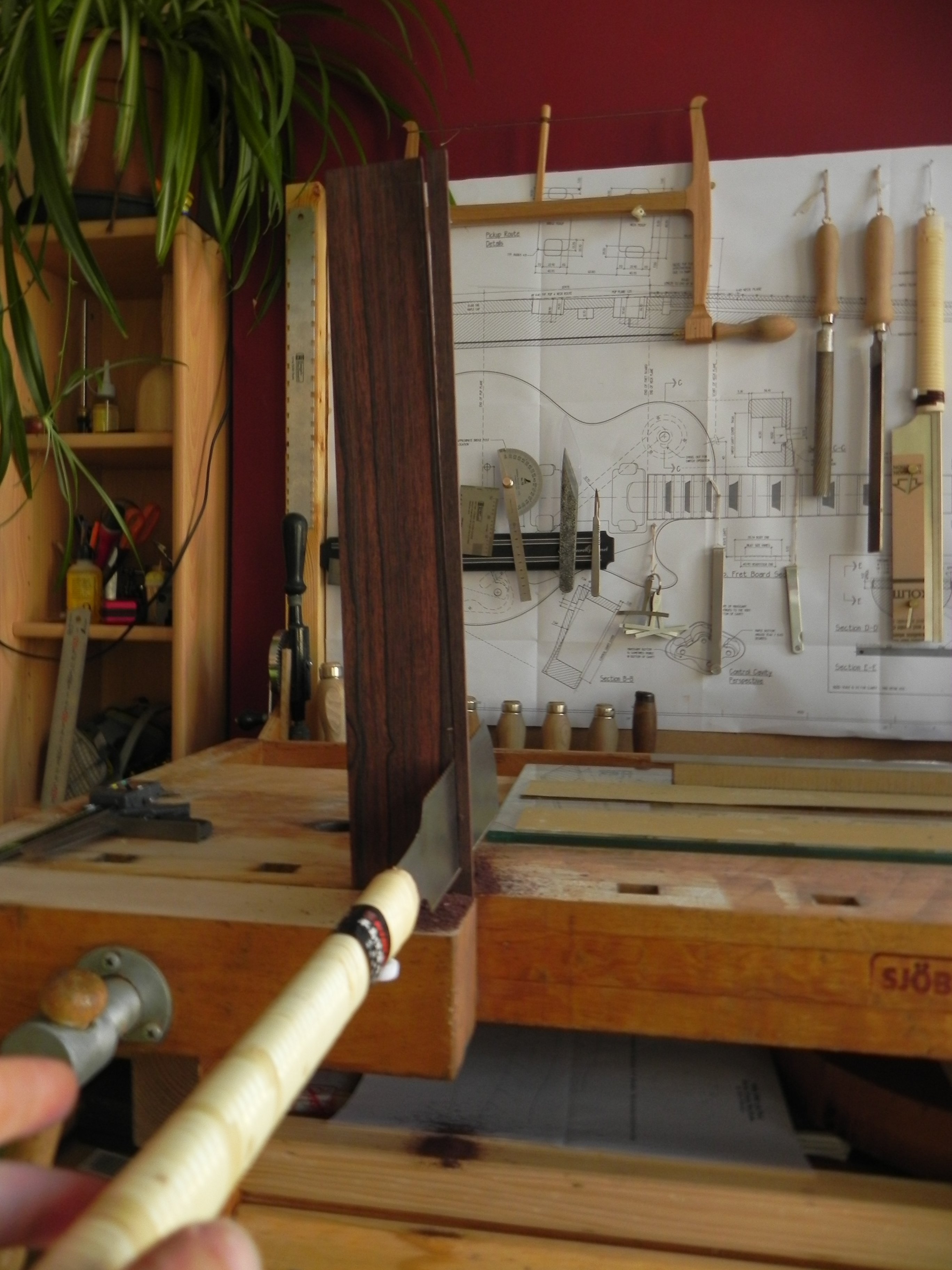 là je passe quelques couches de cire d'abeille que j'ai fait et après frétage!!