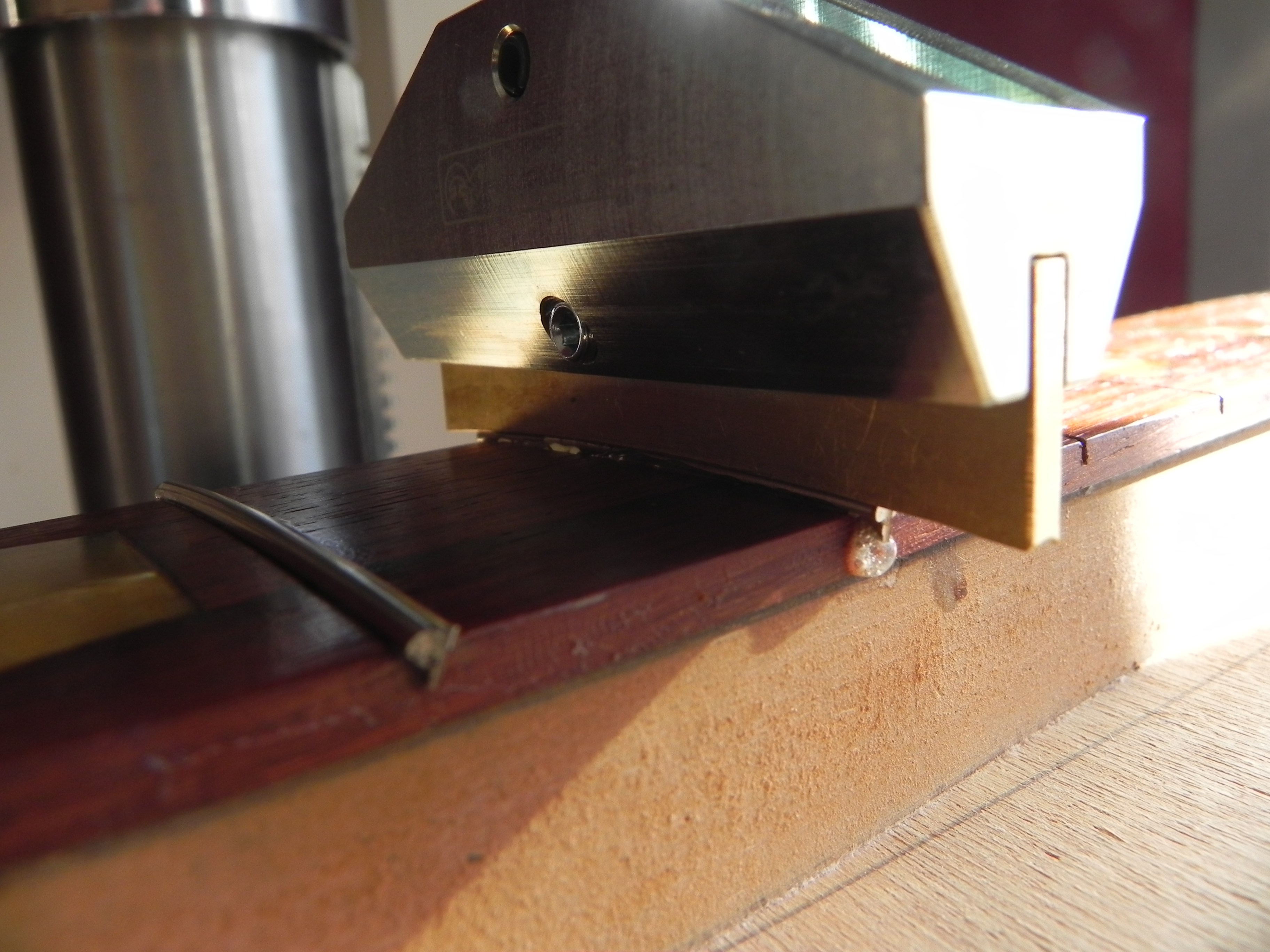 j'ai commencé par scier les frets slots en me servant de cales a raduis comme "boite a coupe" et une scie jap avec une butée (stewmoc