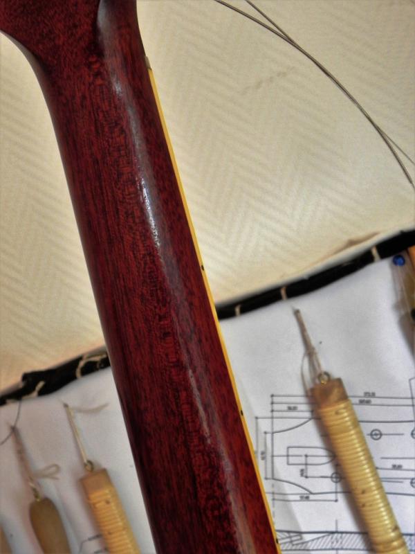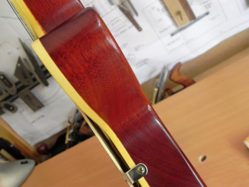 un router plane et un petit rabots noisette, quelques racloirs, de bonnes scies, du matos pour le frettage (limes, scie,regles...) et surtout une BONNE GOUGE de sculpteur, quelques ciseaux, pas besoin de beaucoup, une ou deux rape et un couteau assez fin