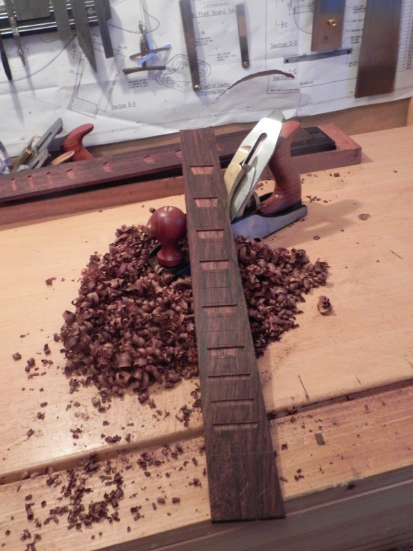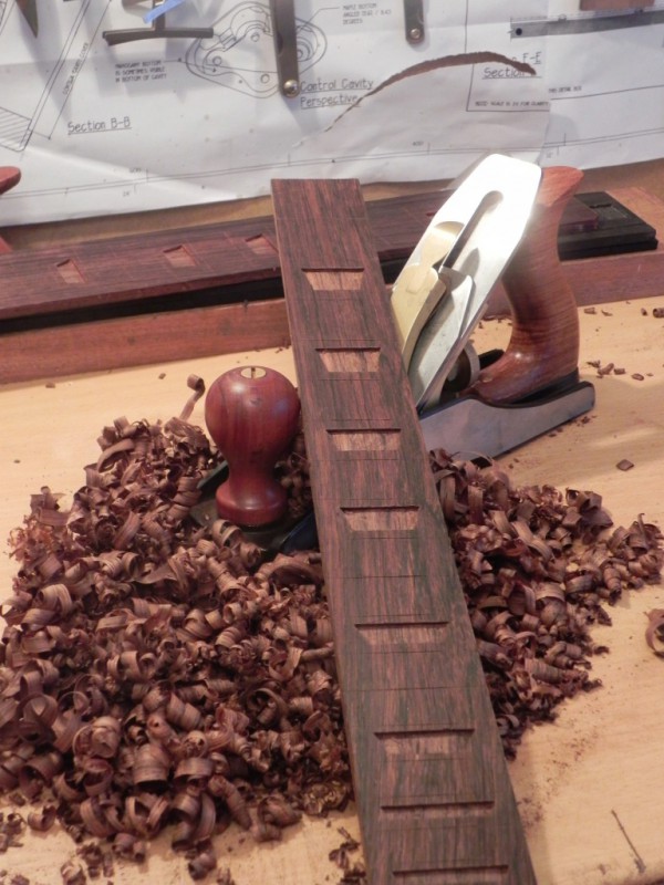 prochaine étape donc la cale, puis coller les inlays, les frettes et pour finir le biniding