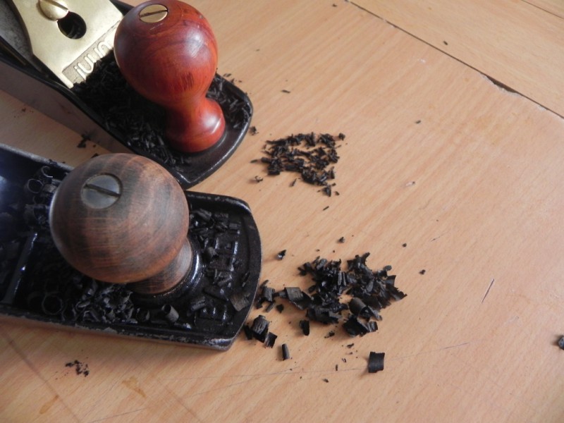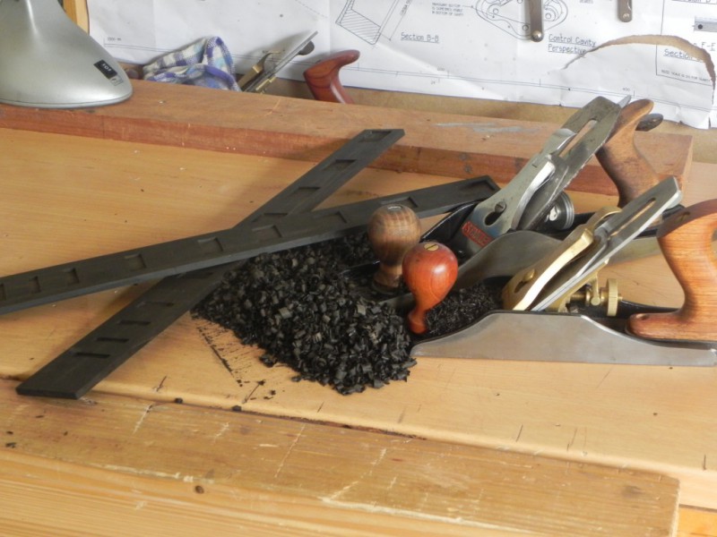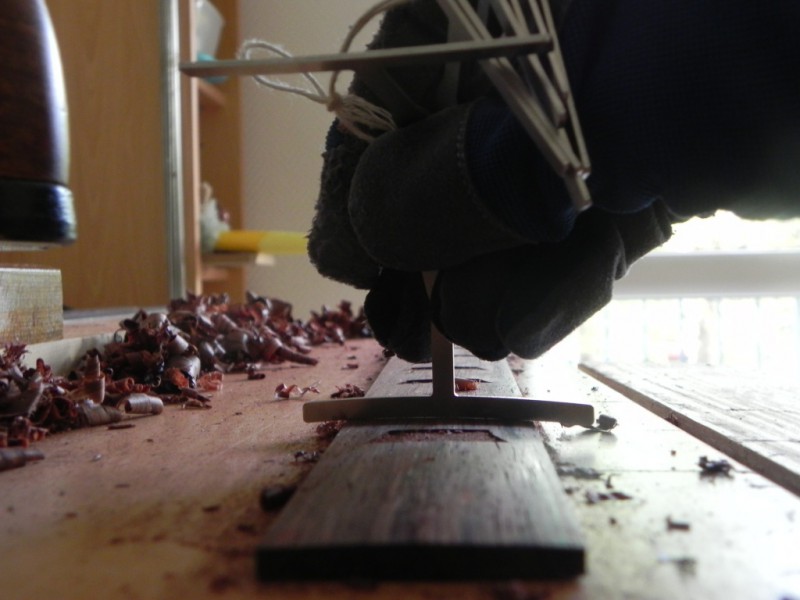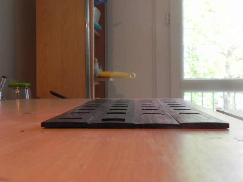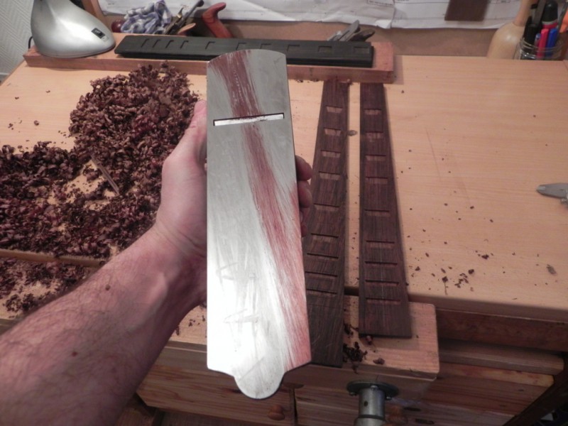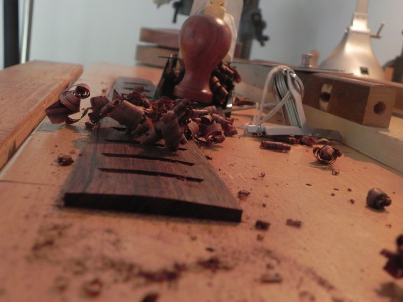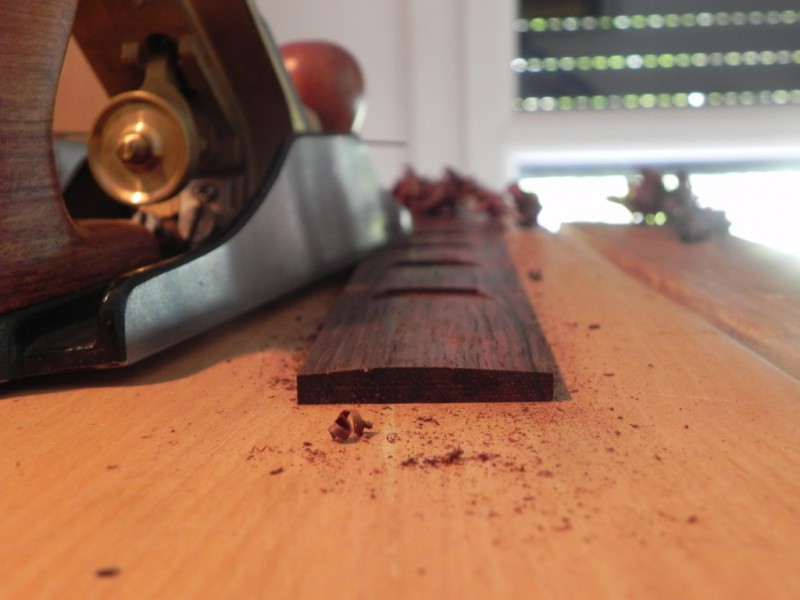 bon apres le palissandre c'est au tour de l'ebene de passer sous le rabot pour détourage
