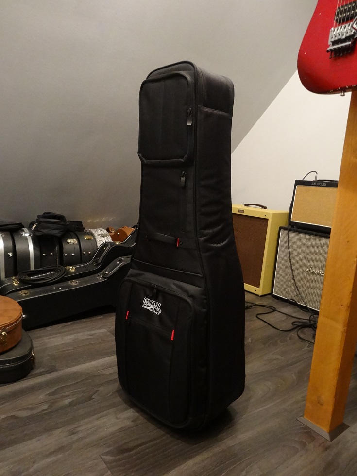 Me voilà donc avec ma housse Gator double (voir plus haut le lien vers Thomann pour la ref exacte).