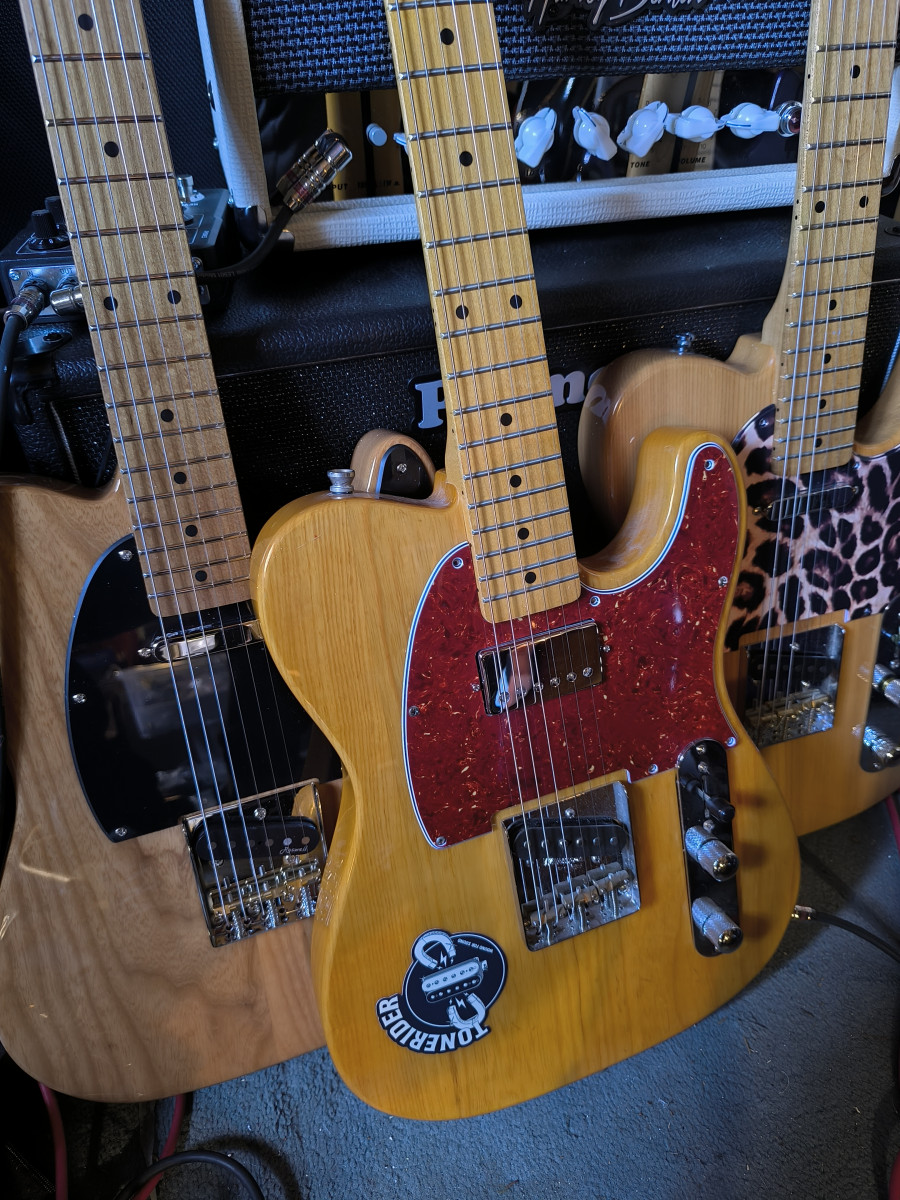 J ai avancé dans mon projet d install d un humbucker tone rider ac 2 en neck d une télé te 52 . Je suis tombé sur une photo d un forum us ou on voit que ces grattes avaient une cavité humbucker en manche j usqu a 2020 sans doute . Je fouille dans mon repaire et trouve l exemplaire recherché+ une plaque et soudure a l identique à la place d un simple trt3 blues tone rider . Bon reste a refaire un circuit gérant au mieux cet équipage . Là ça marche bien même trop bien sûr ce neck ??? Dans cette version 2 des ac2 . Salut a Tutti