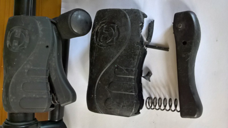 ), j'ai tilté et en bougeant la tête du pied, la poignée s'est complétement cassée...