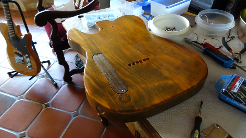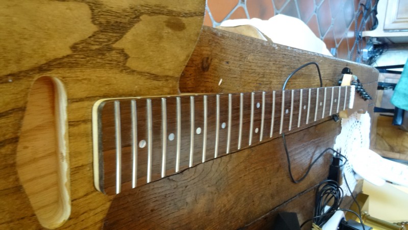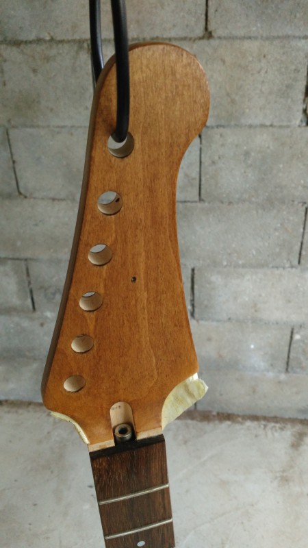 J'ai fait des essais pour changer le manche ....j'en aurais vu un en palissandre ....et moins plat et avec des frettes moins grosses ....