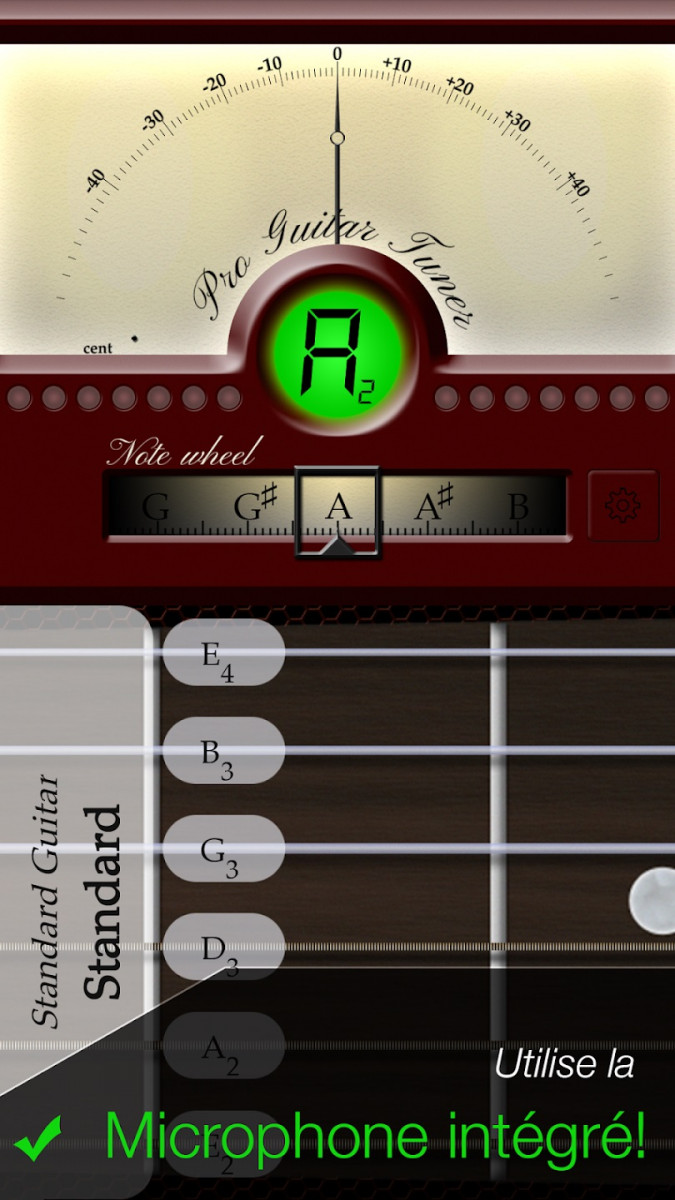 Concernant Pro Guitar Tuner, il y a peut-être un problème (fort probable puisque ça fonctionne avec d'autres application) avec une autorisation d'accès au microphone de ton téléphone, qui ferait que ça ne fonctionne pas.