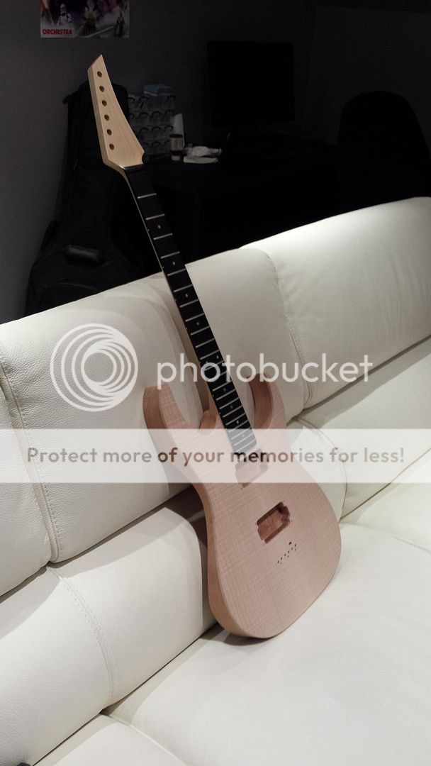 Sinon ca y'est j'ai pu poser des accords dessus, nickel, y a encore un peu de reglage, manche, sillet etc mais tout est bien centré, diapason OK! Cool !