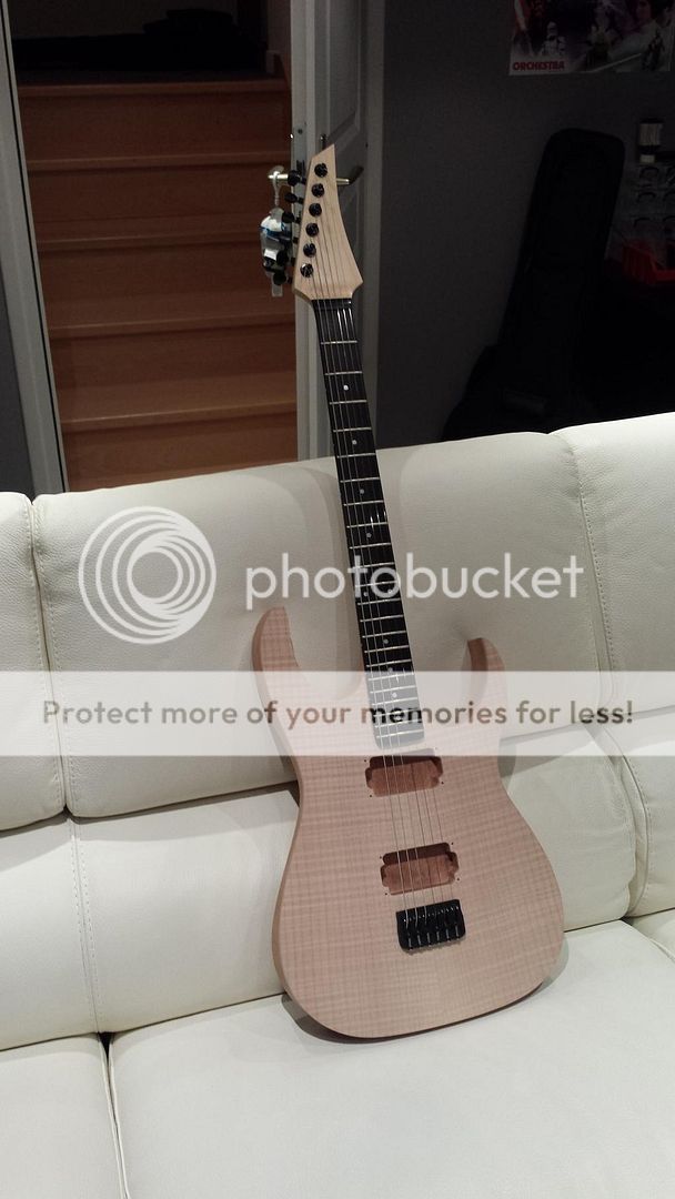 Sinon ca y'est j'ai pu poser des accords dessus, nickel, y a encore un peu de reglage, manche, sillet etc mais tout est bien centré, diapason OK! Cool !