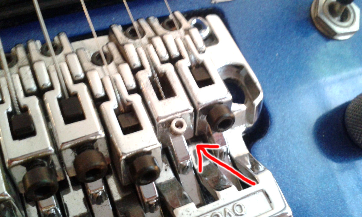 Je risque probablement d'abimer le pas de vis dans le temps, à cause du frottement avec la corde ? pour l'instant niveau son pas d'incidence, la corde est bien maintenue et l'accord ne bouge pas. Evidemment si on utilise le floyd, ça fout tout en l'air (la boule peut bouger légèrement, et on perd l'accordage), mais comme ça ne sera pas mon cas...