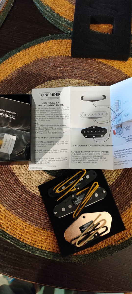 Pour finir 3 micros NASHVILLE TONE RIDER SET 50 S +plaque que je vais refaire avec le plan TONE RIDER + CTS ET DROP ORANGE pour terminer peinture de la table apres ponçage du vernis que je trouve bien horrible d origine ....