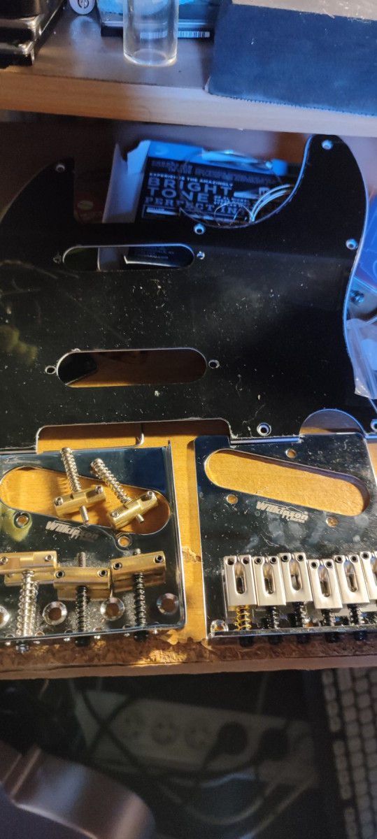 je vais donc monter un autre chevalet , un WILKINSON avec des pontets laitons ou des modernes et rajouter des ferrules apres perçage pour le passage des cordes
