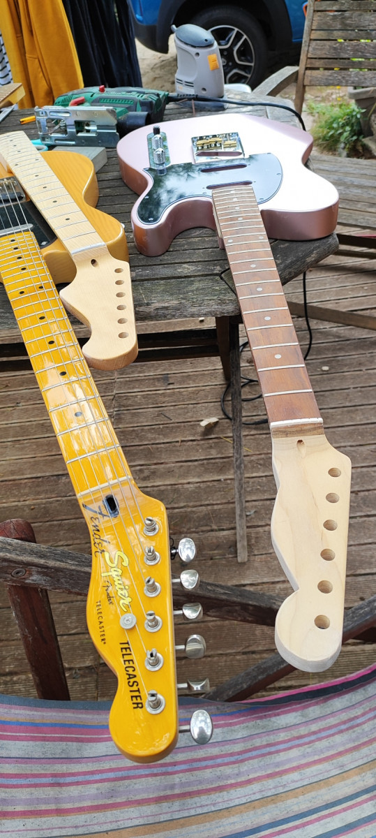 j ai fini par laisser tomber le projet TELE NASHVILLE avec les pieces achetées séparement dont un manche ayant un talon trop gros par rapport a la norme ......