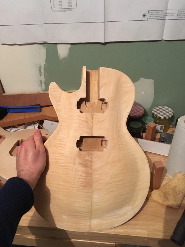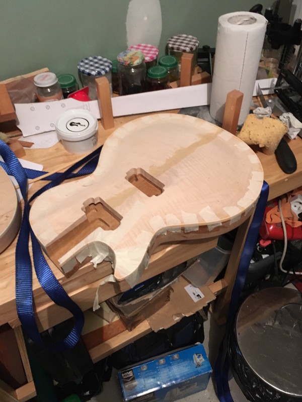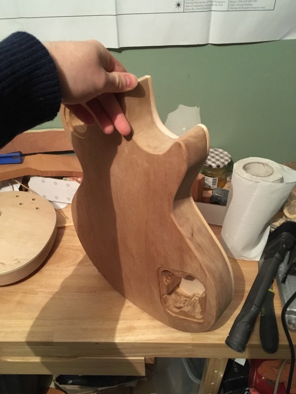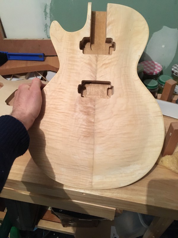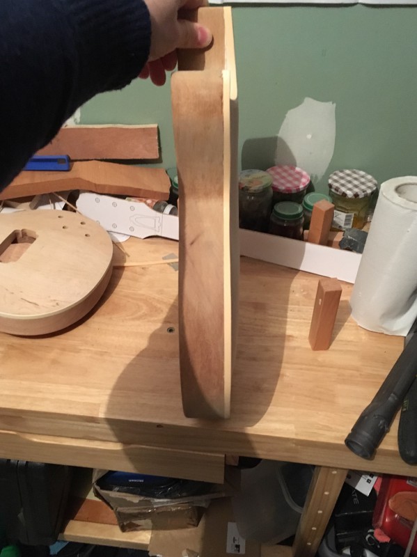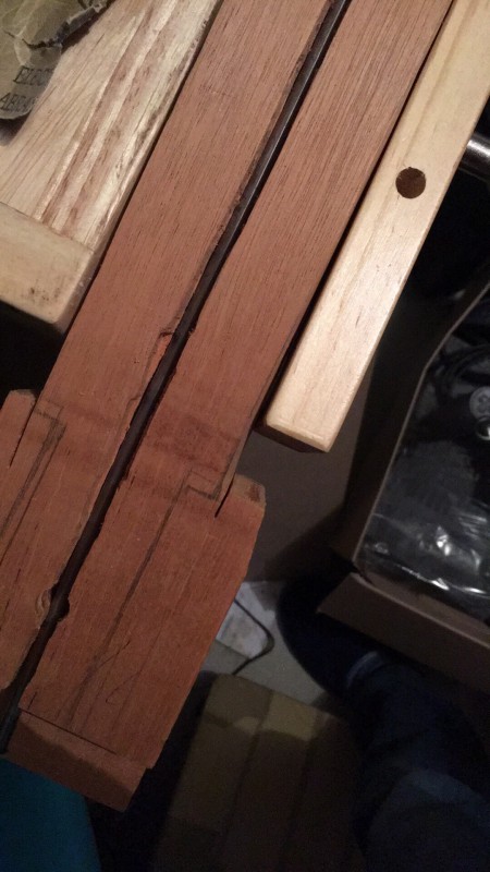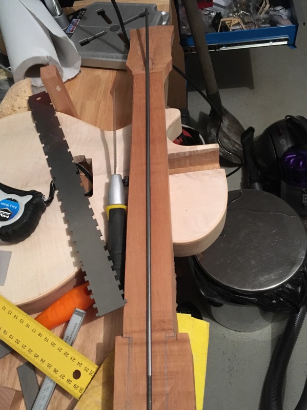 J'ai procédé en plusieurs passes, Dremel oblige... Et là ça a failli être le drame... la dremel a un peu dérapé pendant le second passage, dans la partie basse du manche. Heureusement c’etait lors de la seconde passe, donc plus haut que le truss rod, qui lui est parfaitement calé, et qui ne bouge absolument pas une fois en place. Ça ne vibrera pas...
