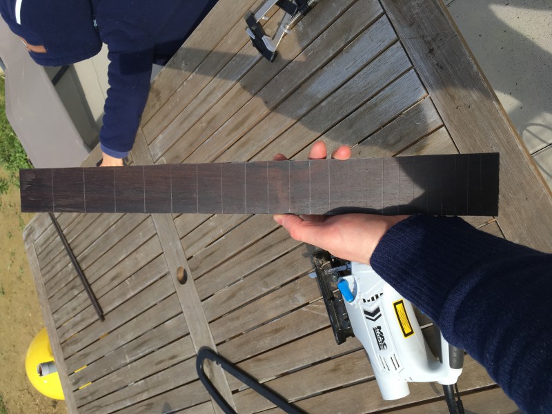 Après, mise en forme, pose des inserts, radiusage, frettage et binding.
