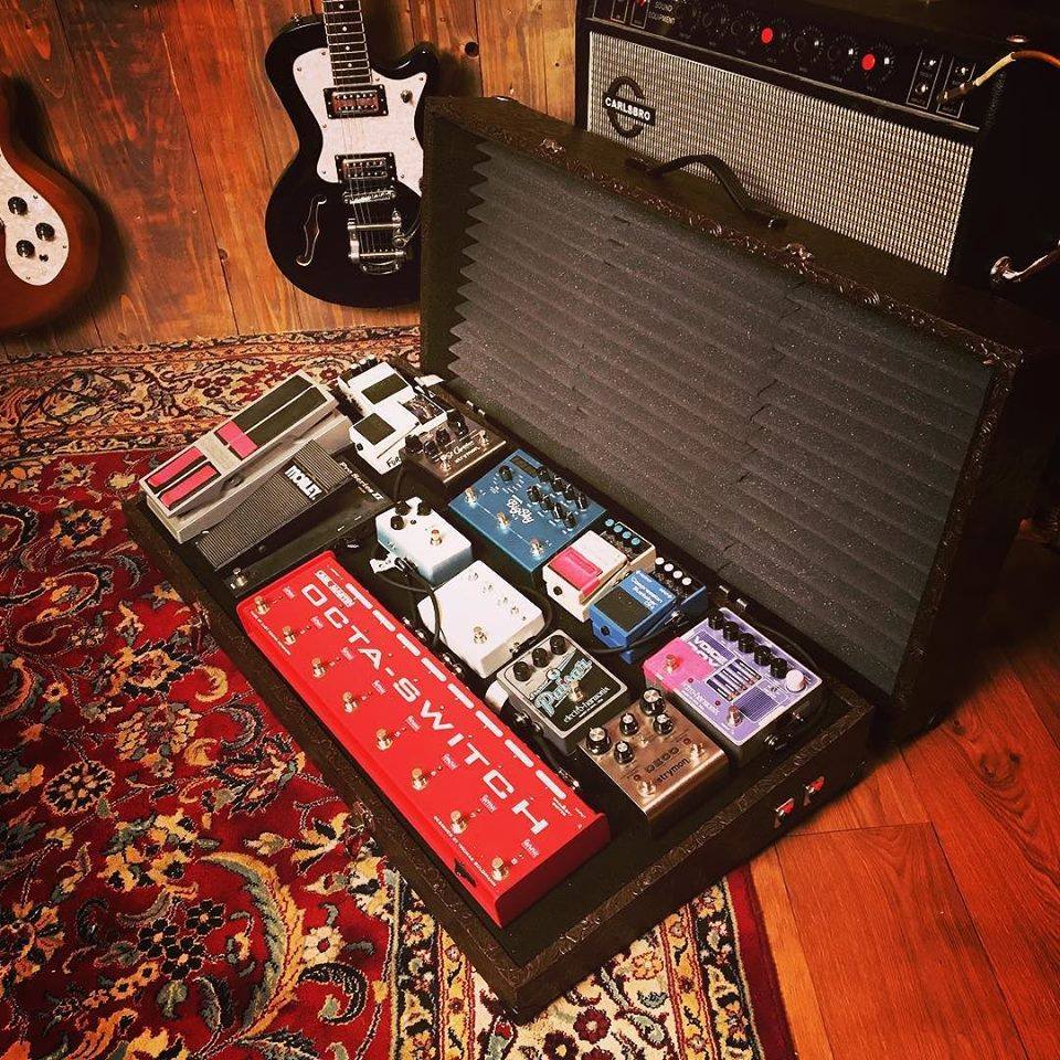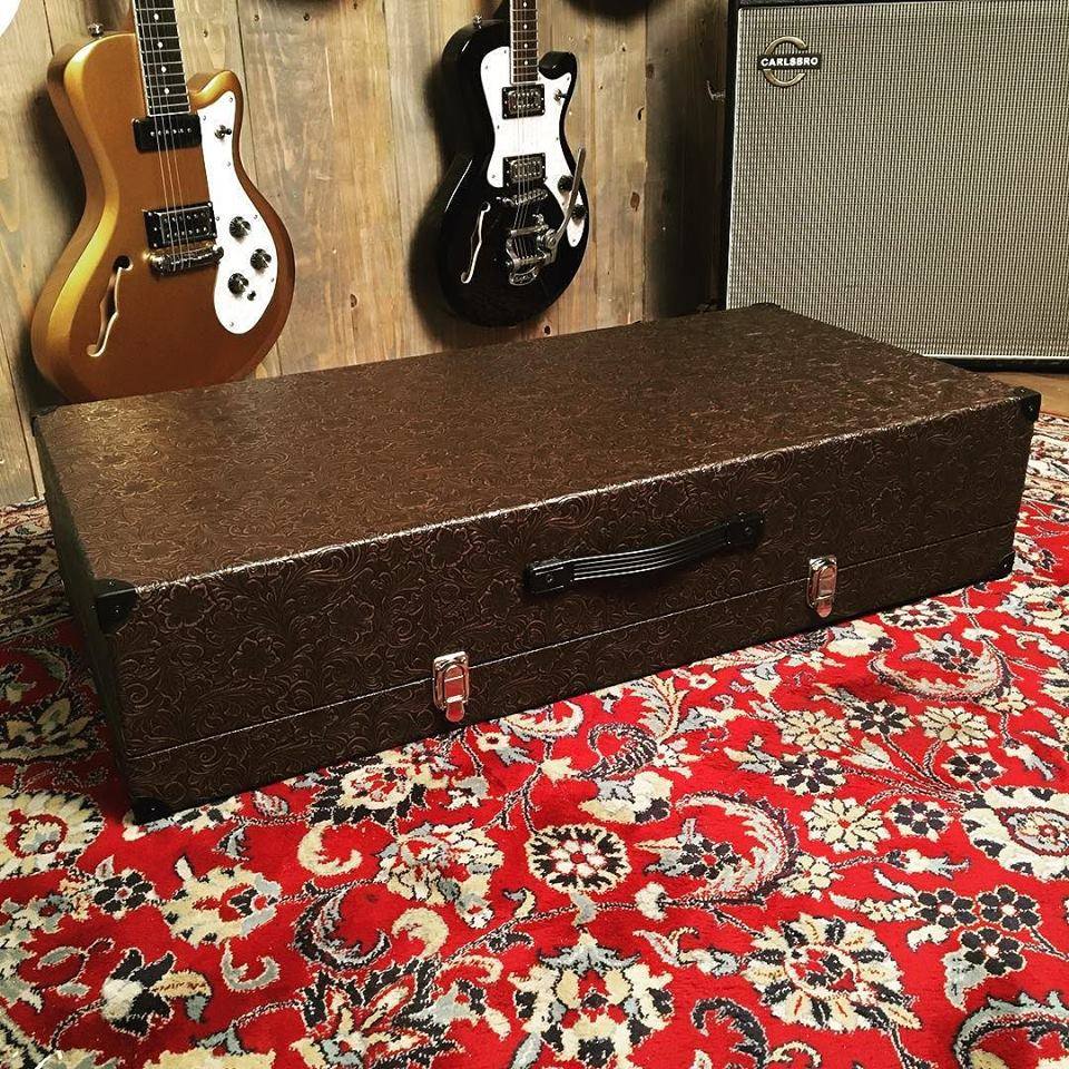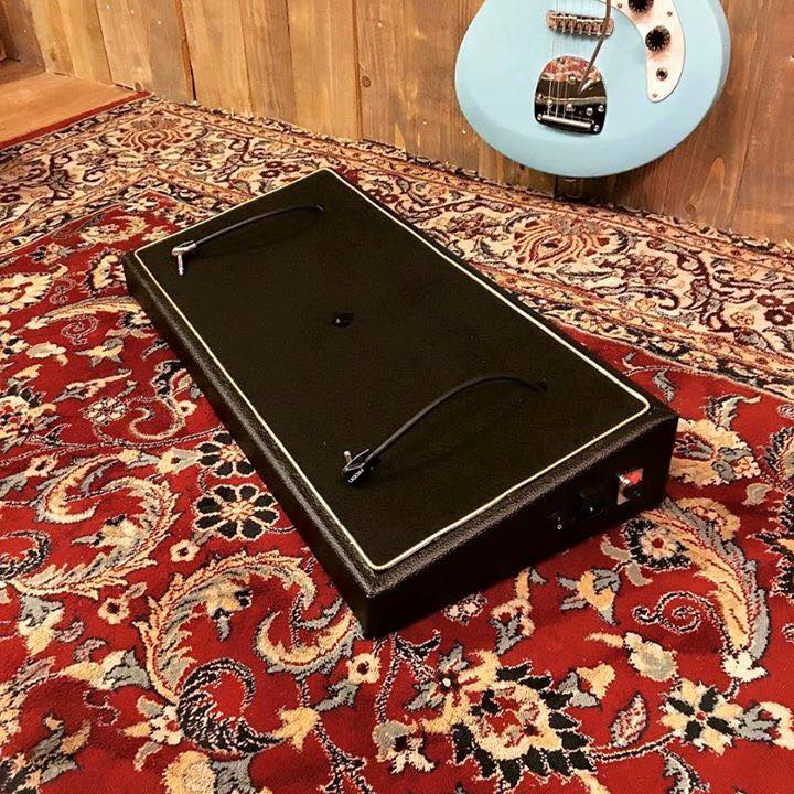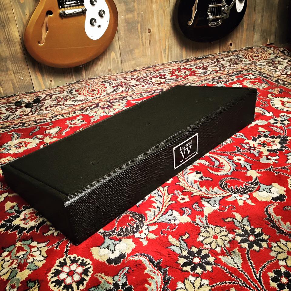 Voici le dernier gros projet, un pedalboard pour Fursy du groupe Les discret, 93x43 cm il est assez innovant dans le sens où sa fabrication est unique, c'est un pedalboard avec un simple couvercle et non un case complet, on a donc mis au point un plateau sur charniere ce qui permet d'avoir accés aux alimentations et de pouvoir ranger des cables ou autre...