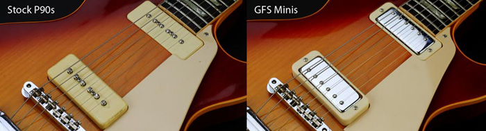 Normalement sur les les paul ca ne pose pas de problème puisque le mini-humbuckers était utilisé avec des corps restants possedants des cavités de P90. Neil Young ou encore Social Distortion sont d'avides amateurs de Les Paul avec des mini-hum remplacés par des P90.