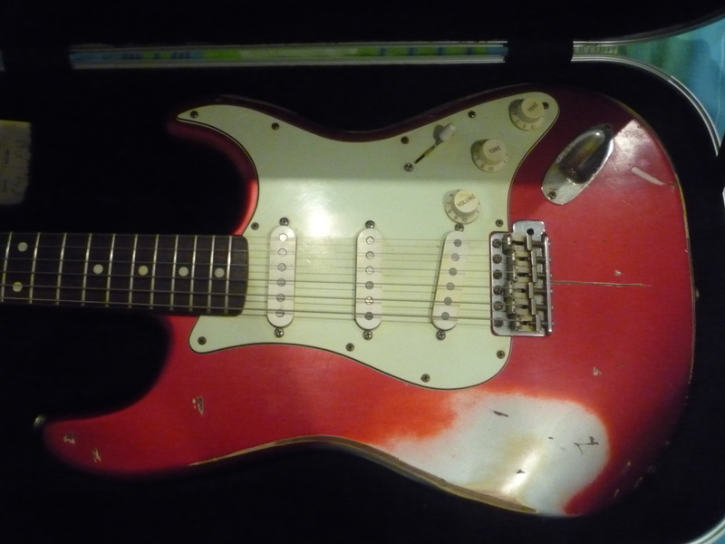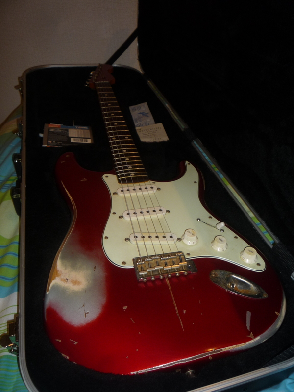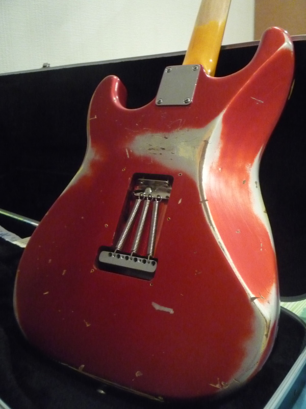 à cette occasion, j'ai pu voir la finesse du vernis nitro de cette guitare (déjà un peu reliquée par Fender).