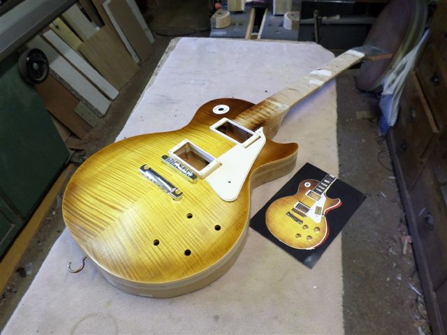 Chez les chinois tu aura un "pseudo" acajou (très très éloigné de l'acajou d’Amérique du sud des Les Paul), un placage d'érable ondé pour masquer une table en "on sait pas quoi" (un résineux clair/jaunâtre sur toutes les chinoises/kit/contrefaçons que j'ai vu) Y a pas mal d'essences "qui ressemblent" en asie.. pas forcément du bon bois pour la lutherie mais pour faire du bas de gamme ça suffit et les chinois ça les genent pas d'appeler ça "mapple" ou "mahogany" etc...