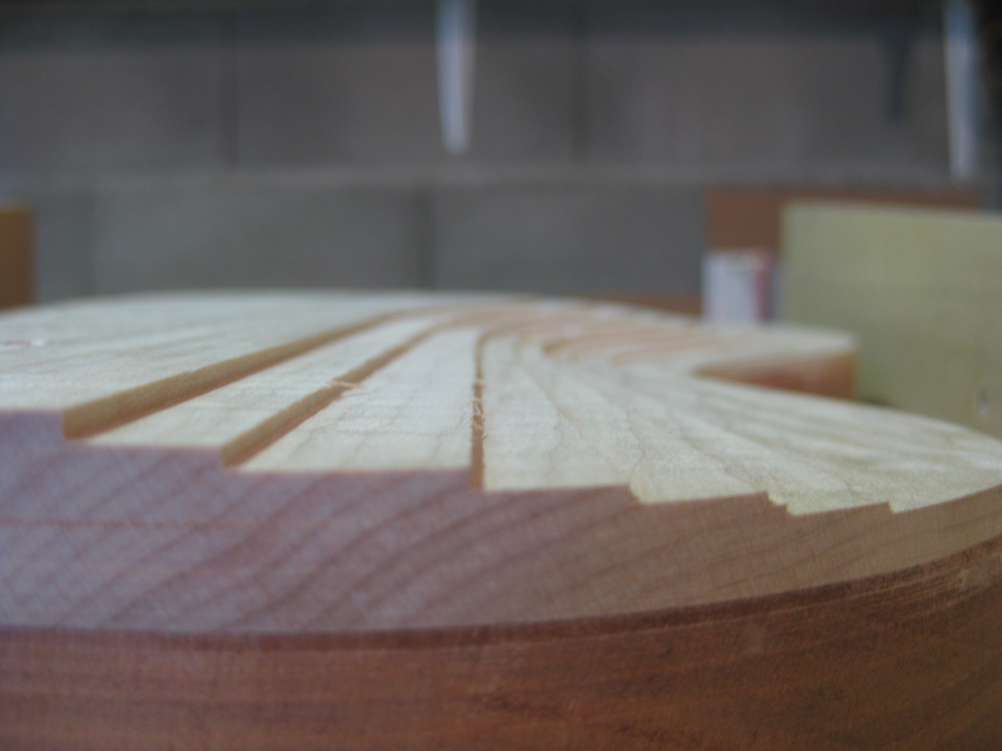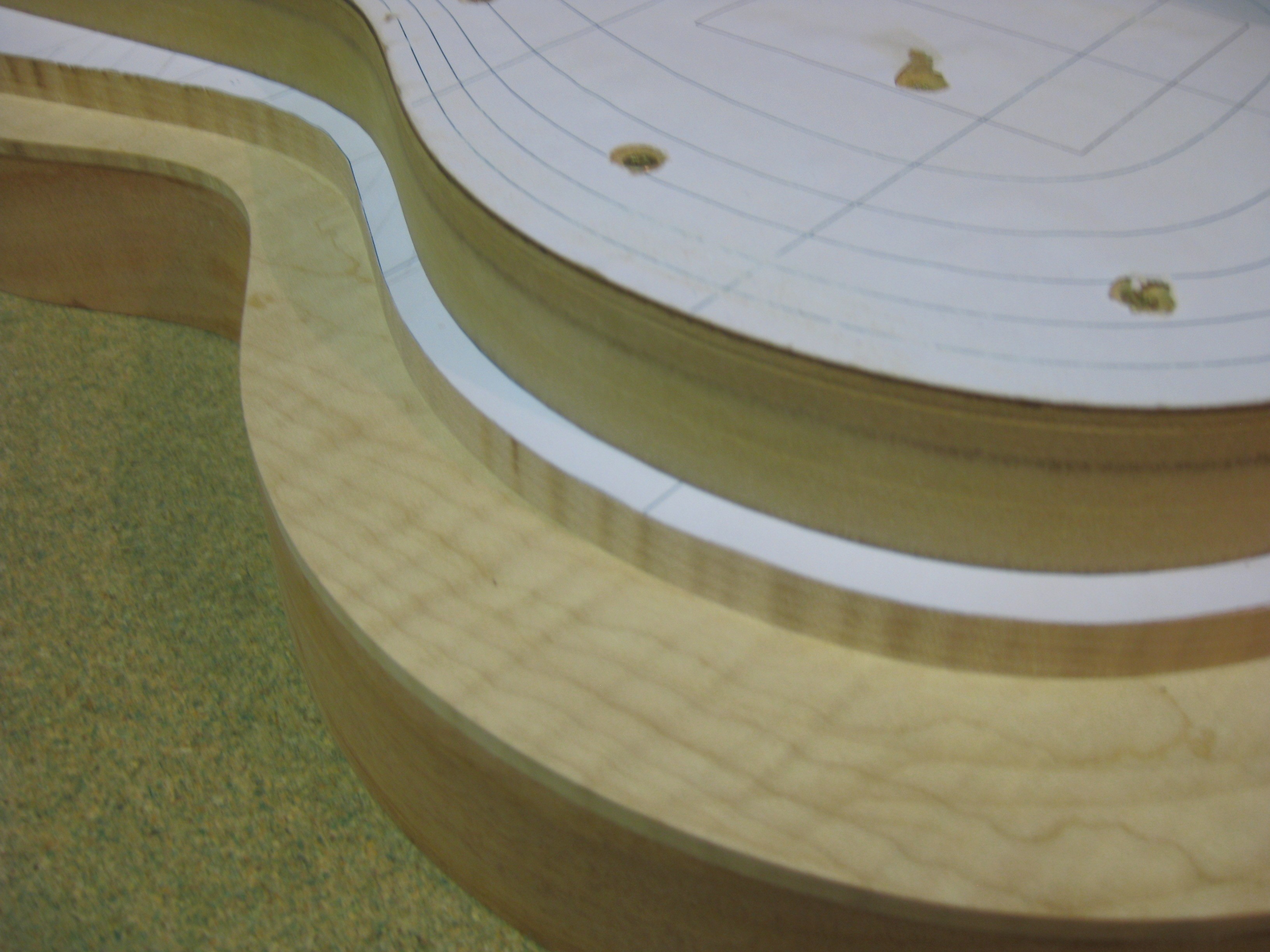 Une fois la table collée, on passe au galbe! Pour faciliter la chose, défonce des courbes de niveau:
