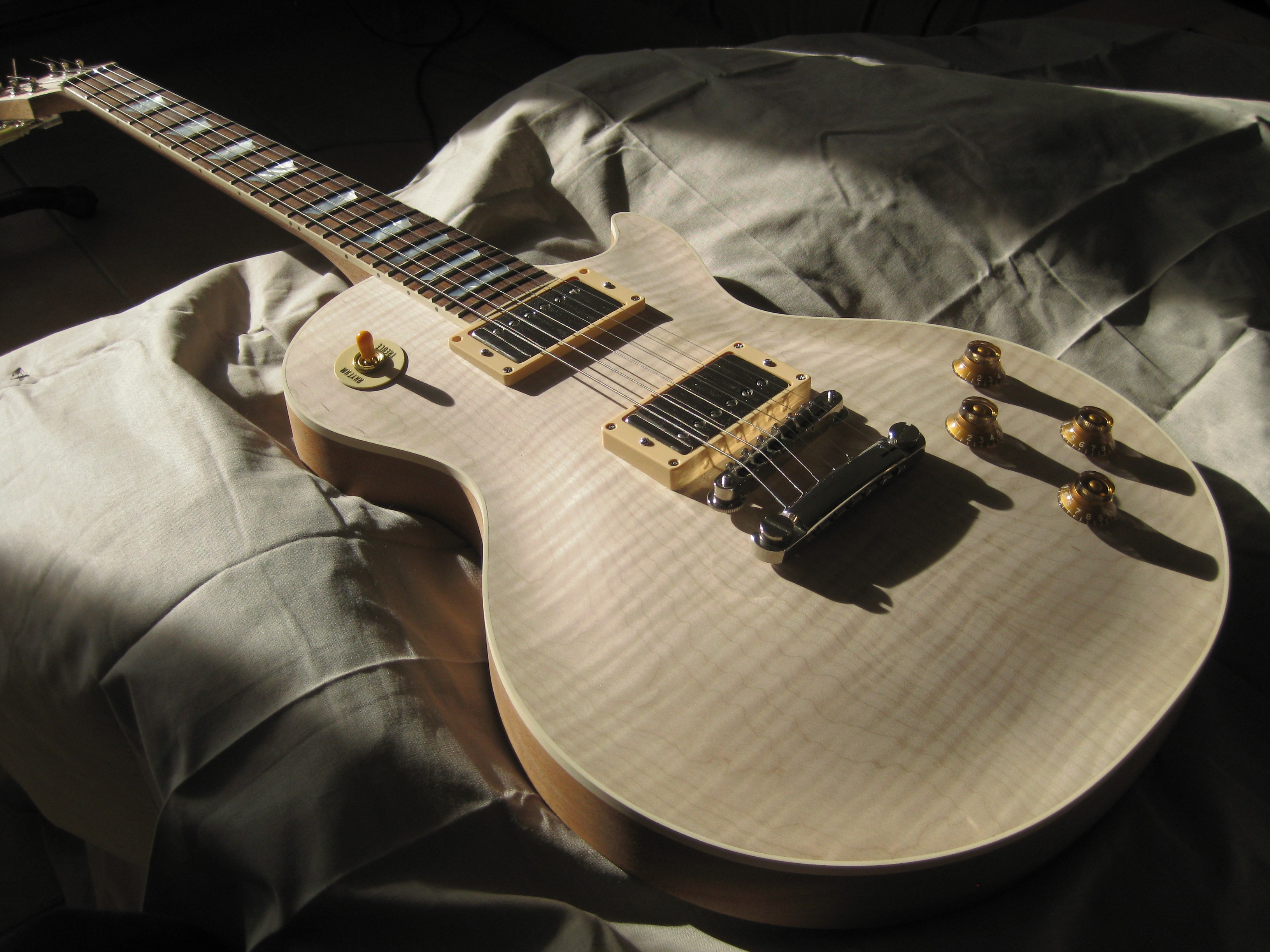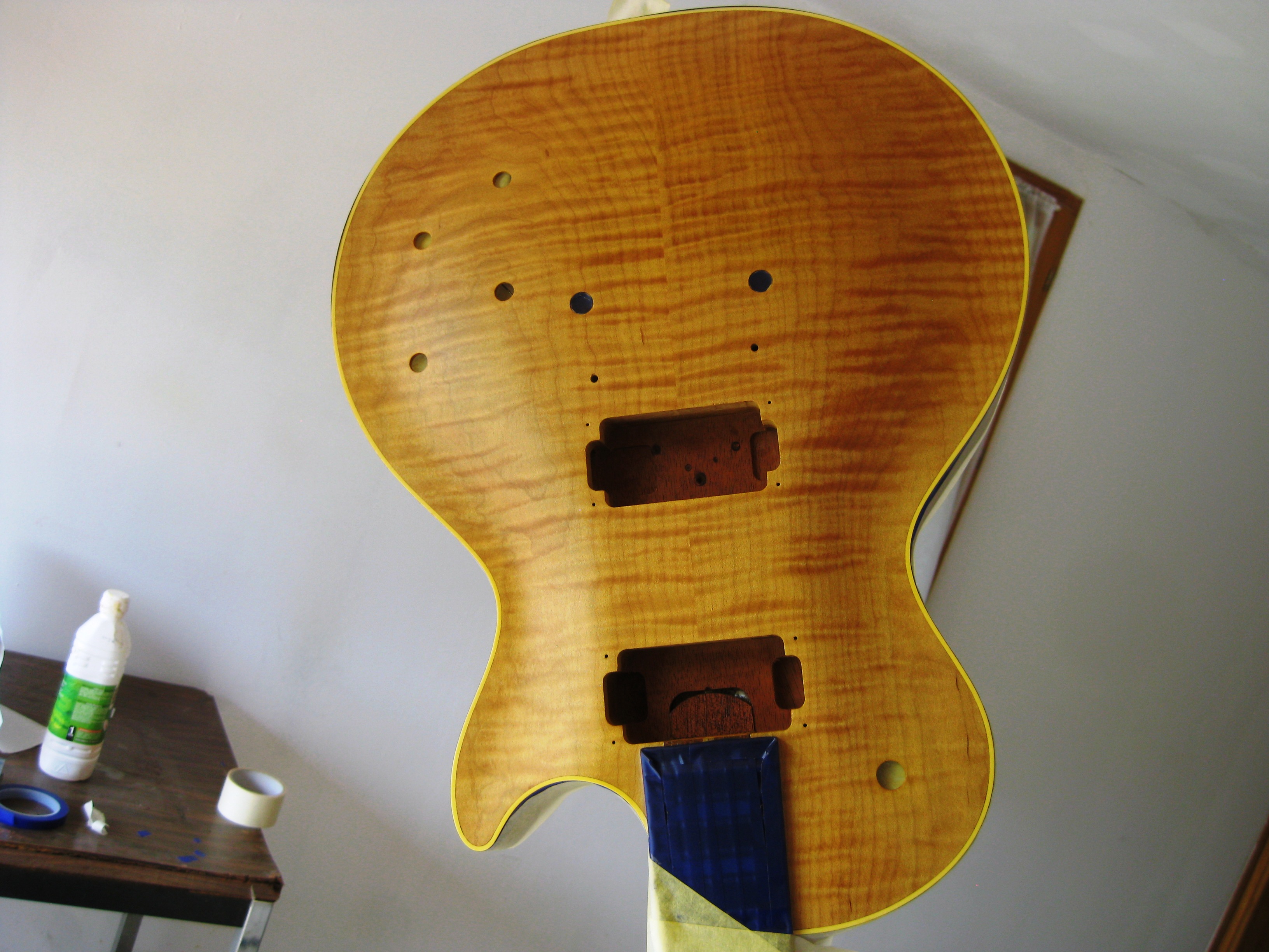Le vernis a commencé à ambrer, mais ce n'était pas suffisant pour faire une vraie couche ambrée sur la guitare.