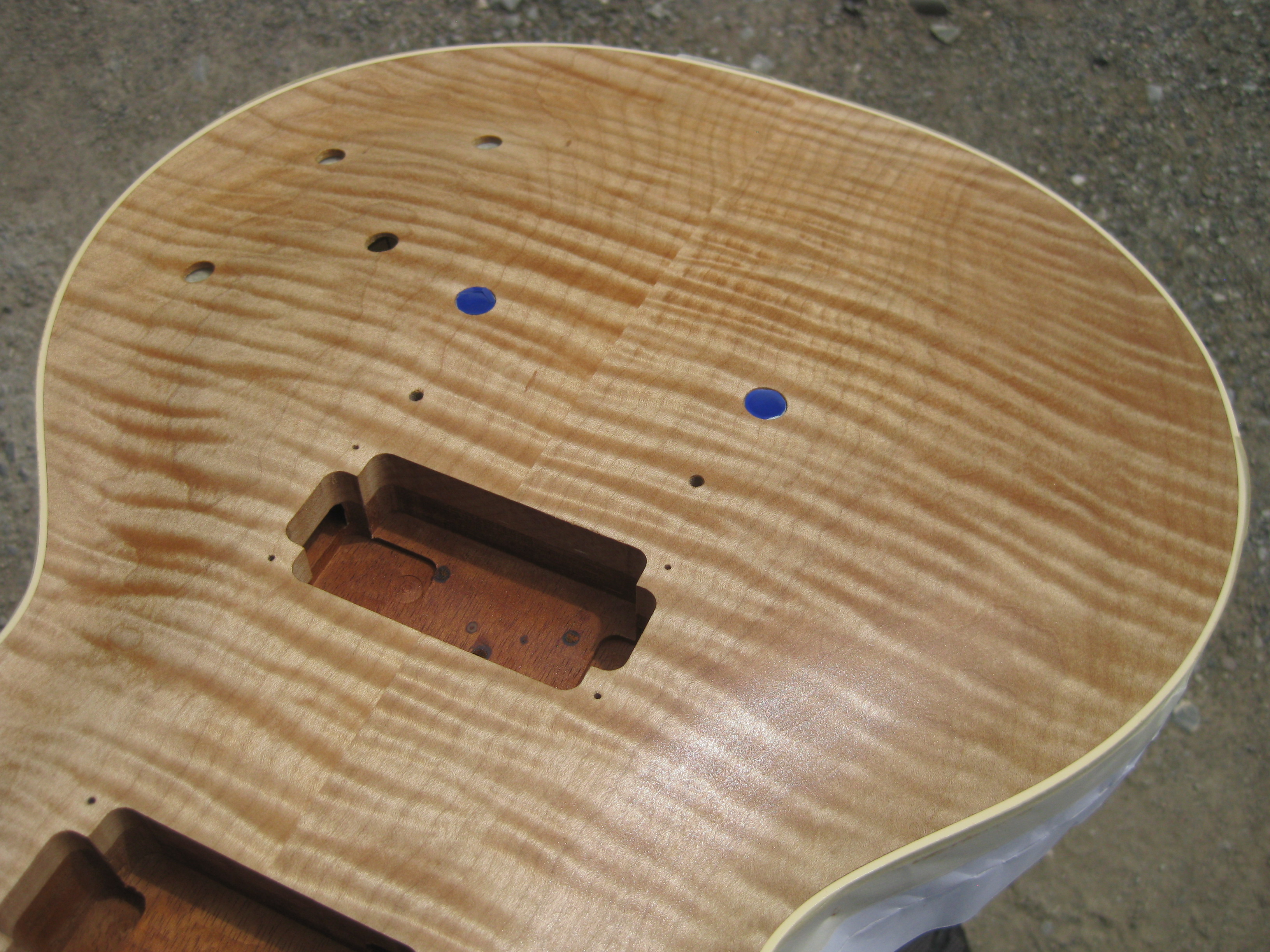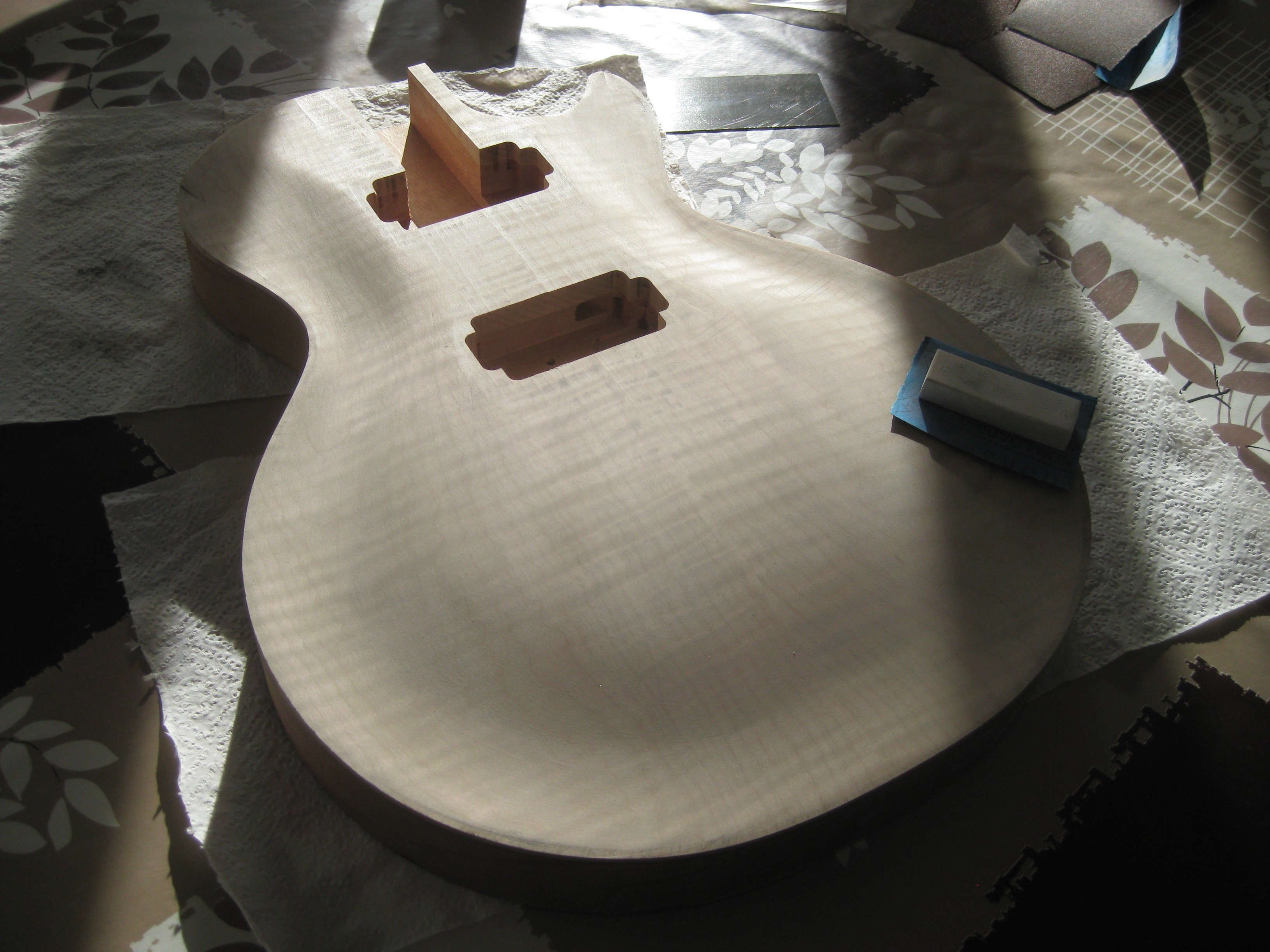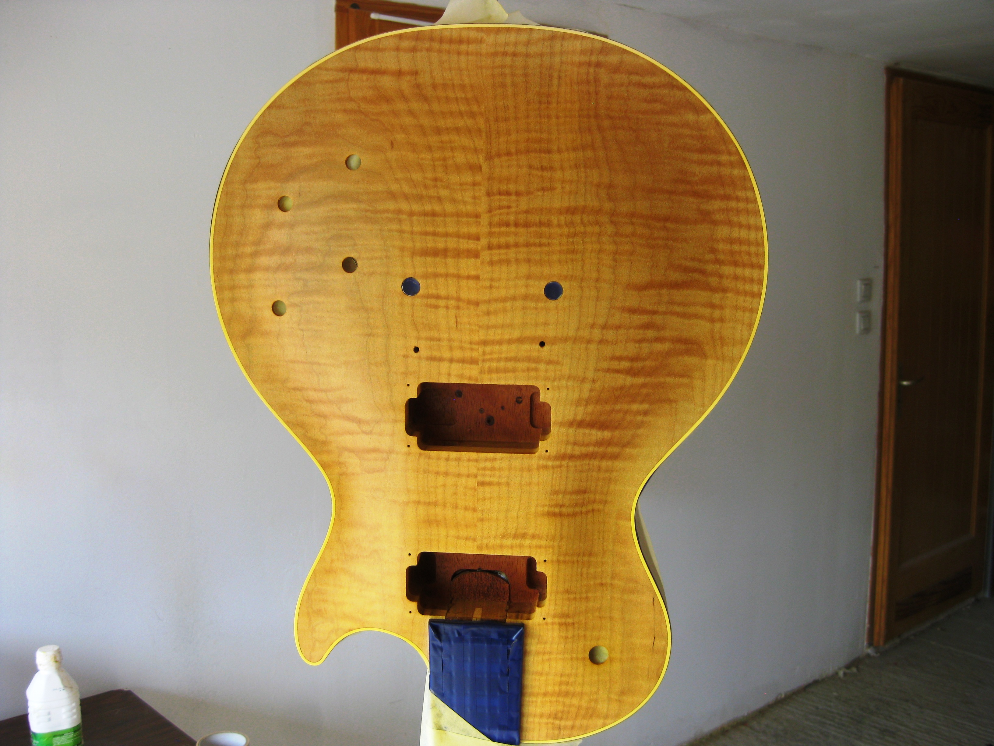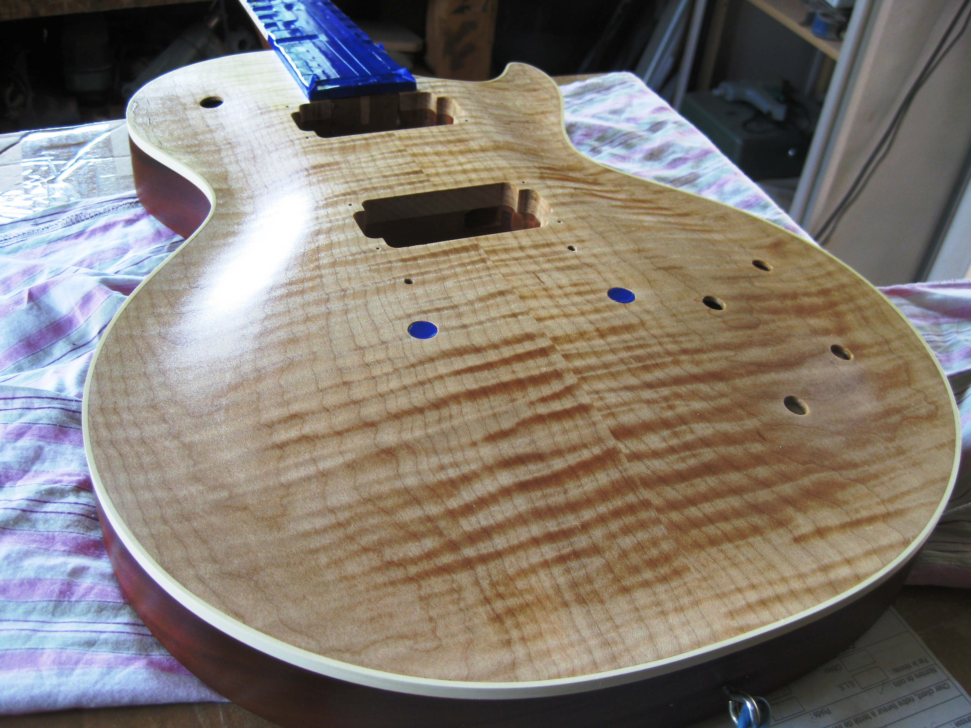 Dès que j'ai un peu de temps, je passe au ponçage à l'eau, puis couches de nitro à nouveau, et ensuite ponçage final à l'eau + polissage (après un bon mois de séchage)