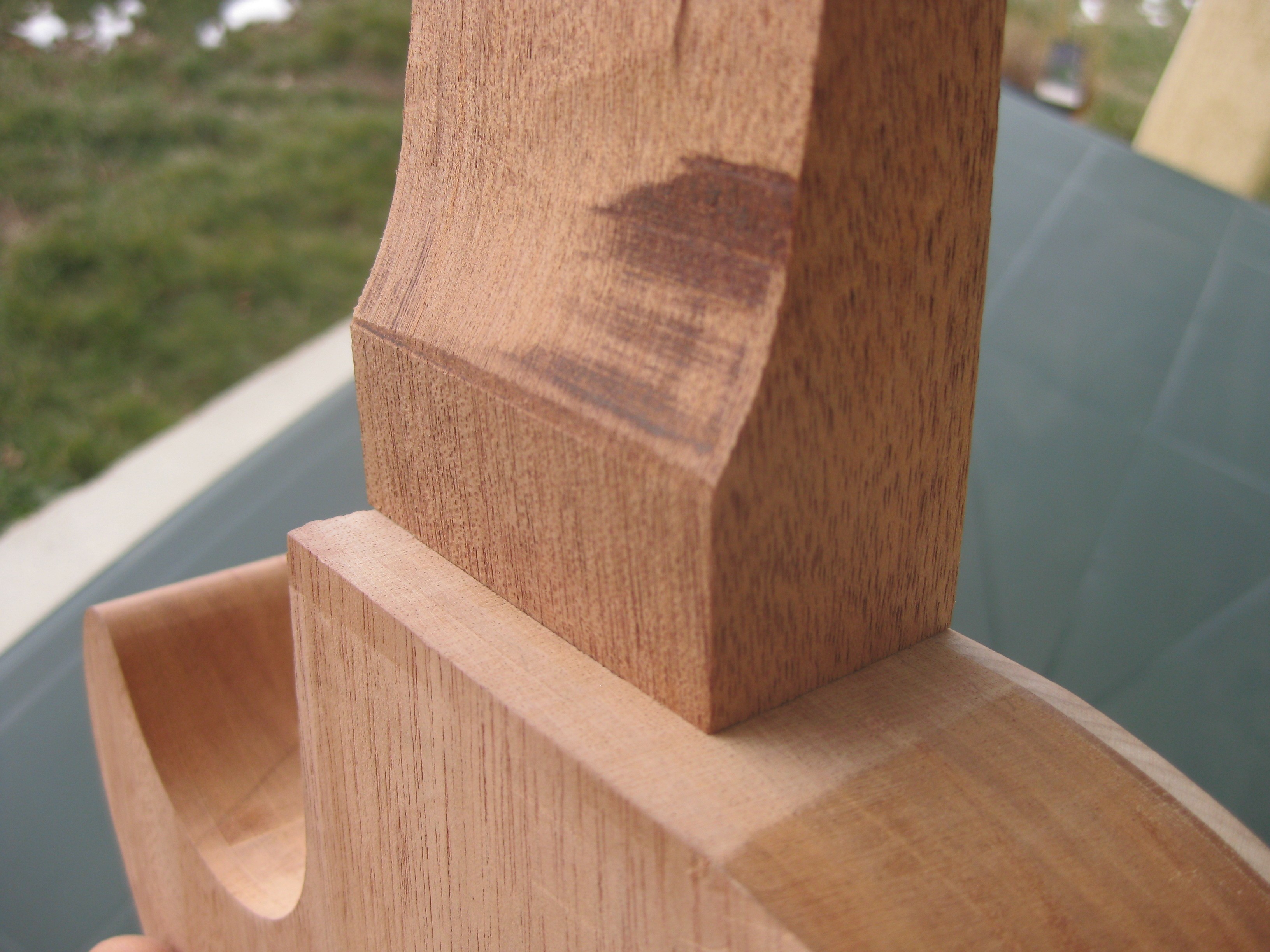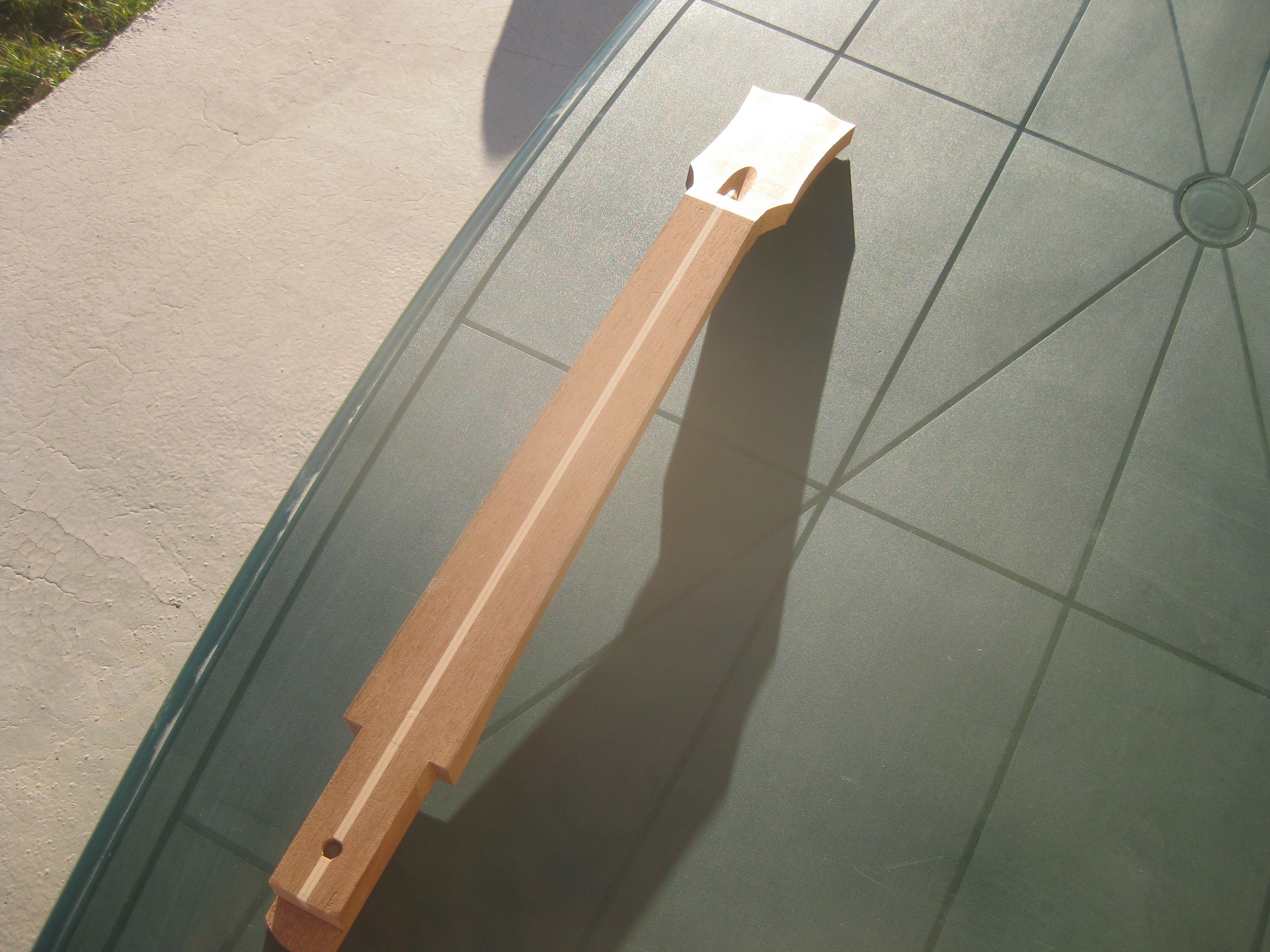 Profilage du manche, collage du manche à la hide glue, ponçage final, perçages divers, et on tient le bon bout!!