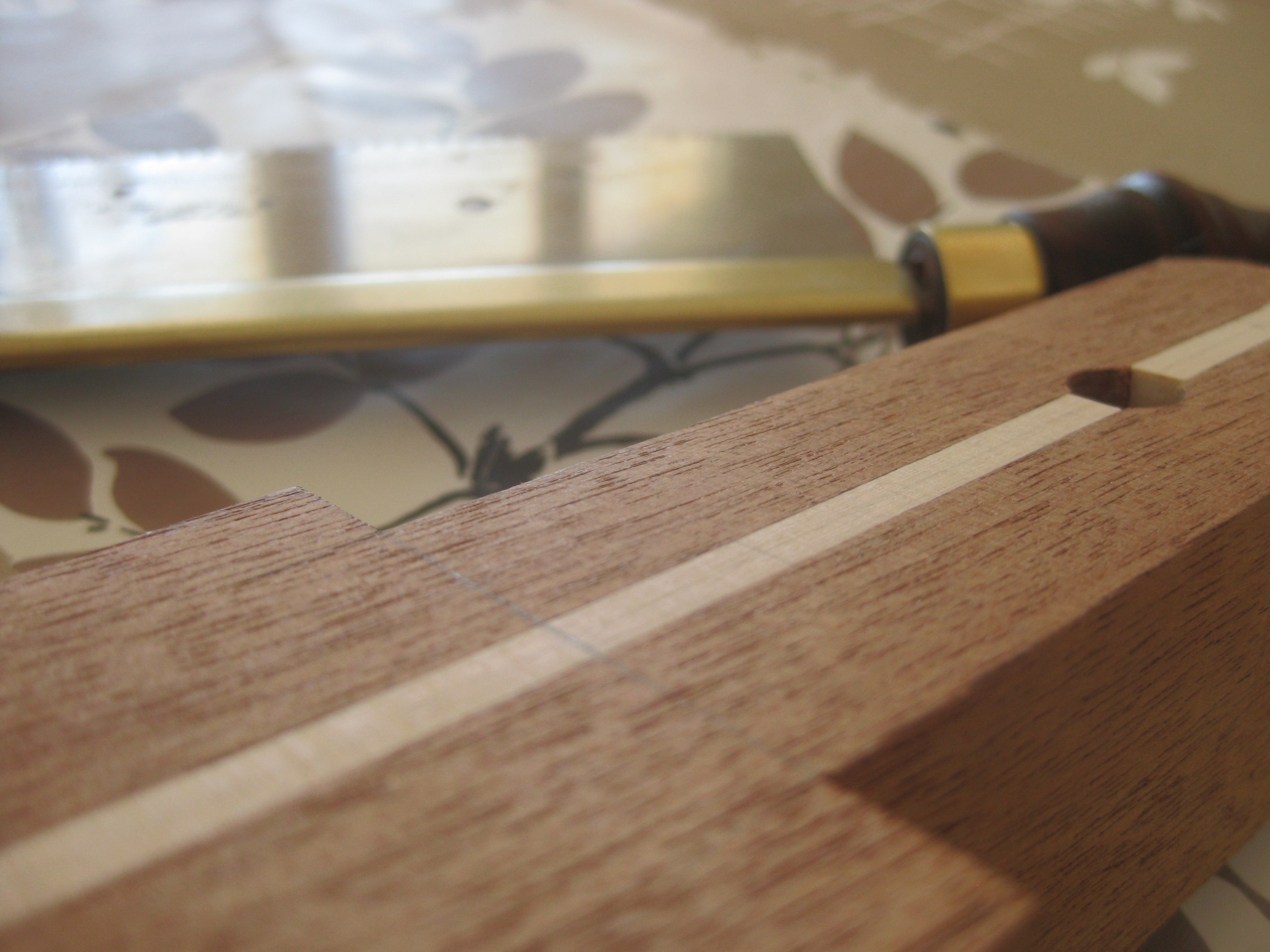 Première étape, on donne au tenon sa largeur finale, pour qu'il rentre pil poil dans la mortaise (sans aucun jeu, mais sans devoir trop forcer pour le mettre en place)