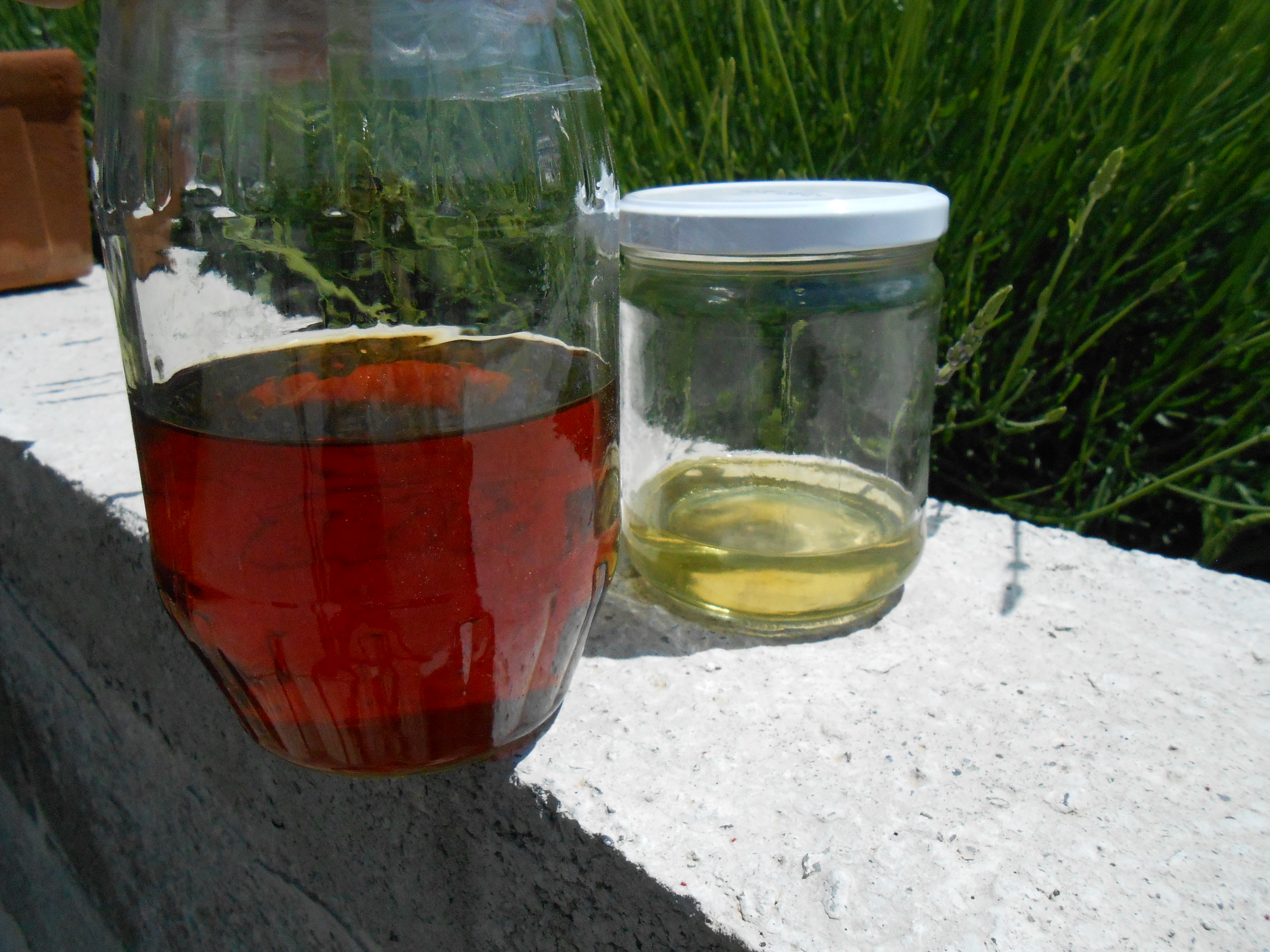 Voici à droite du nitro sortit du bocal, tout neuf , et à gauche du nitro après de long mois au soleil :