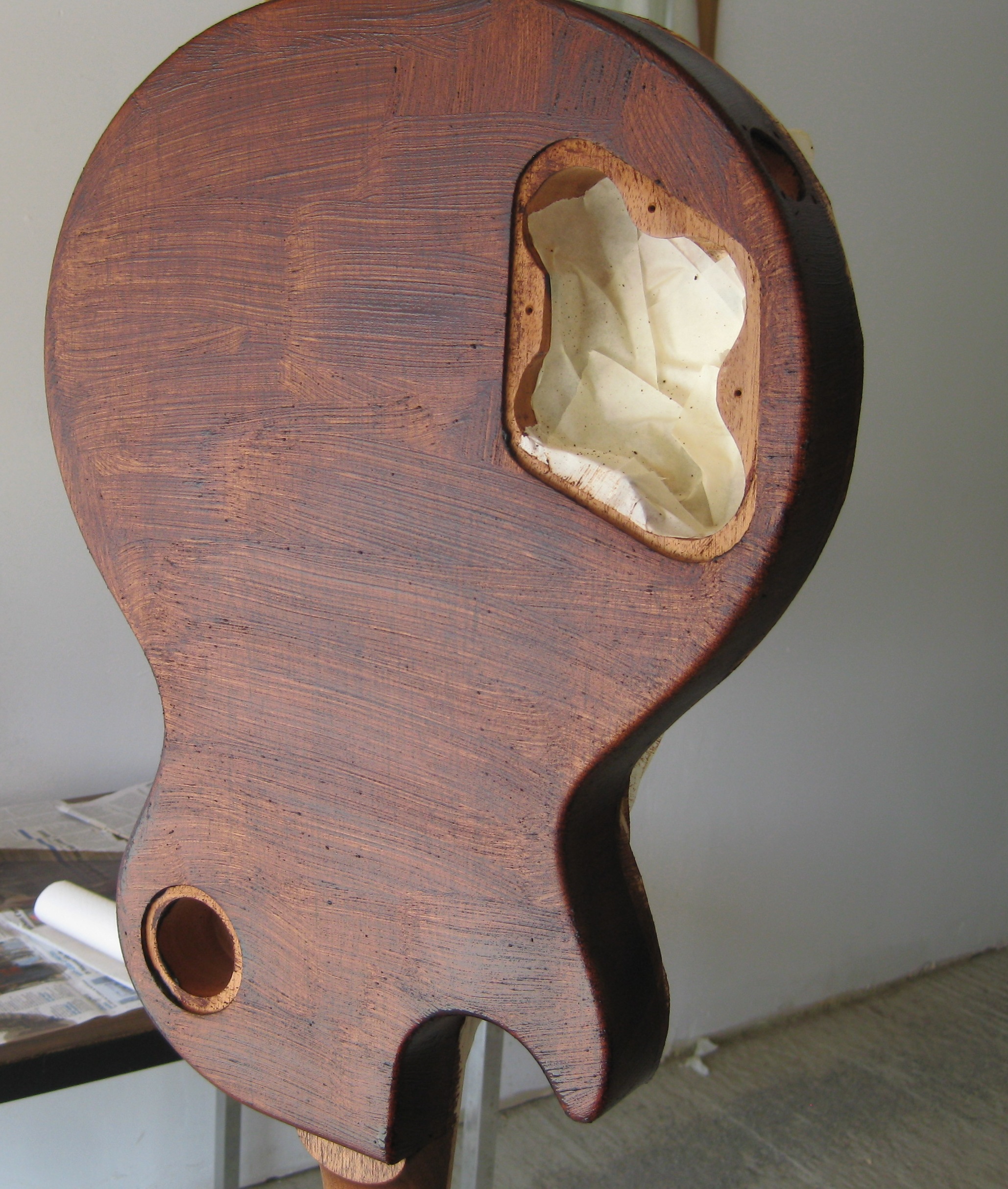 j'ai donc fait un bouche pore à l'ancienne, comme sur les LP des 50's: pierre ponce + huile de lin + nitro + aniline dyes