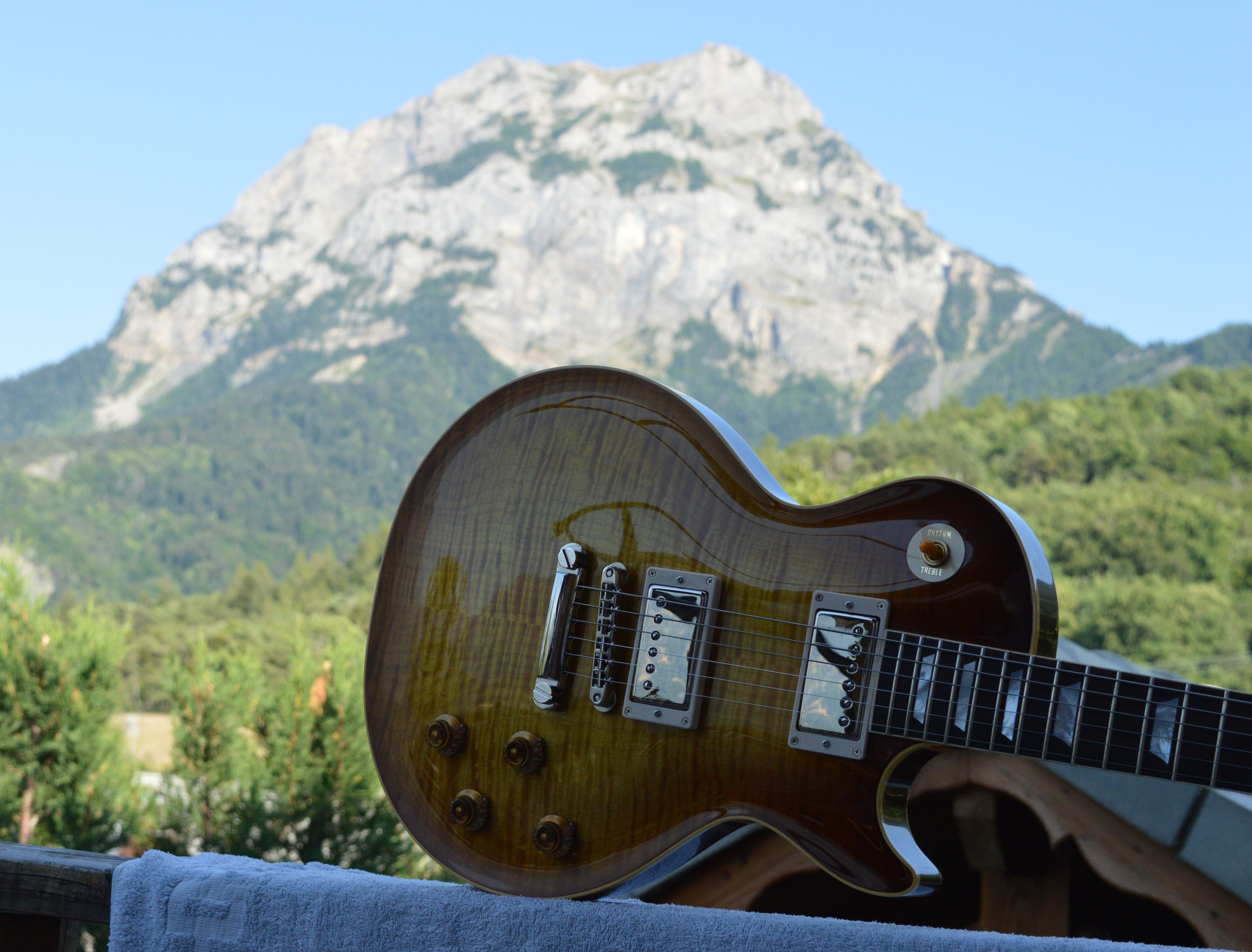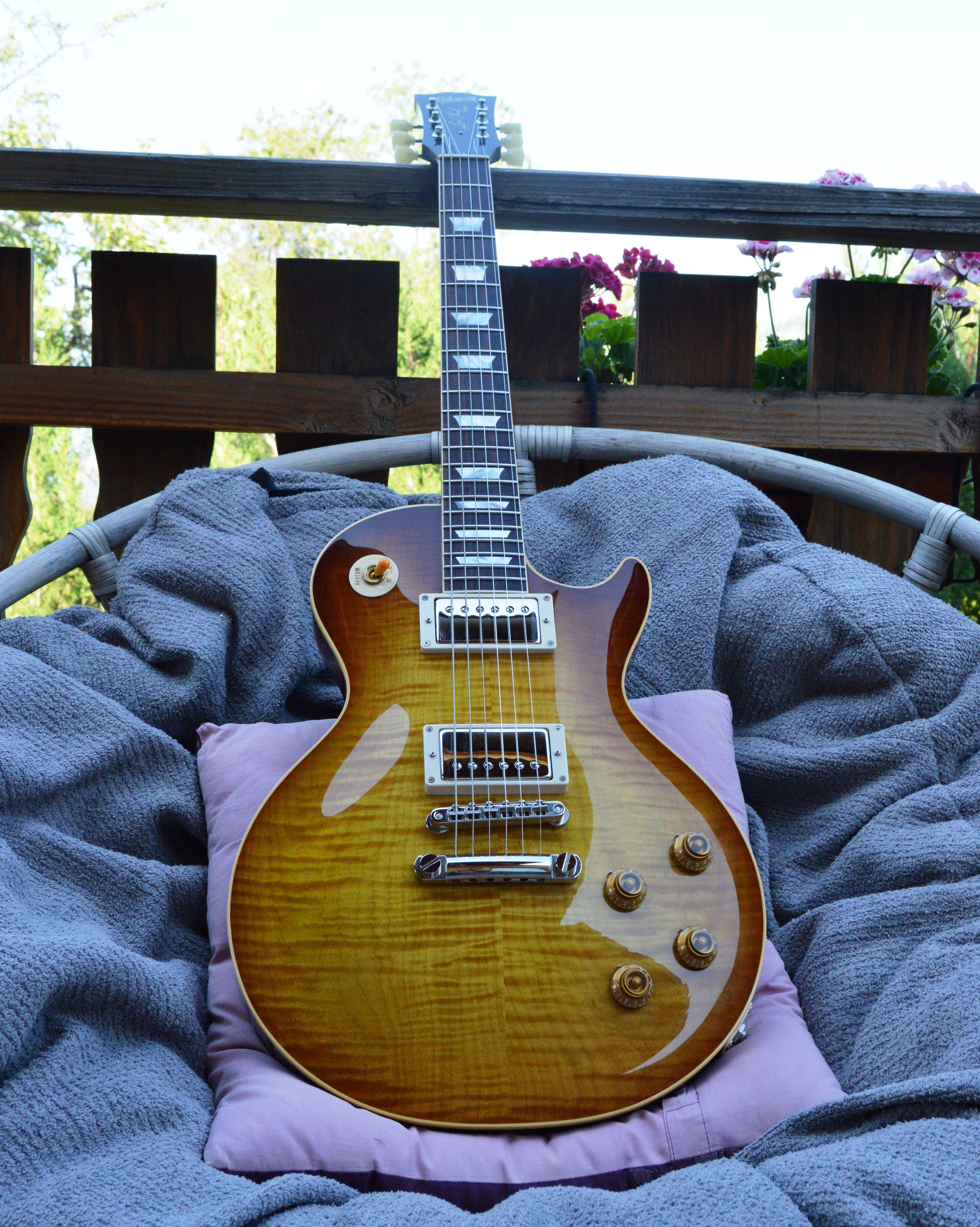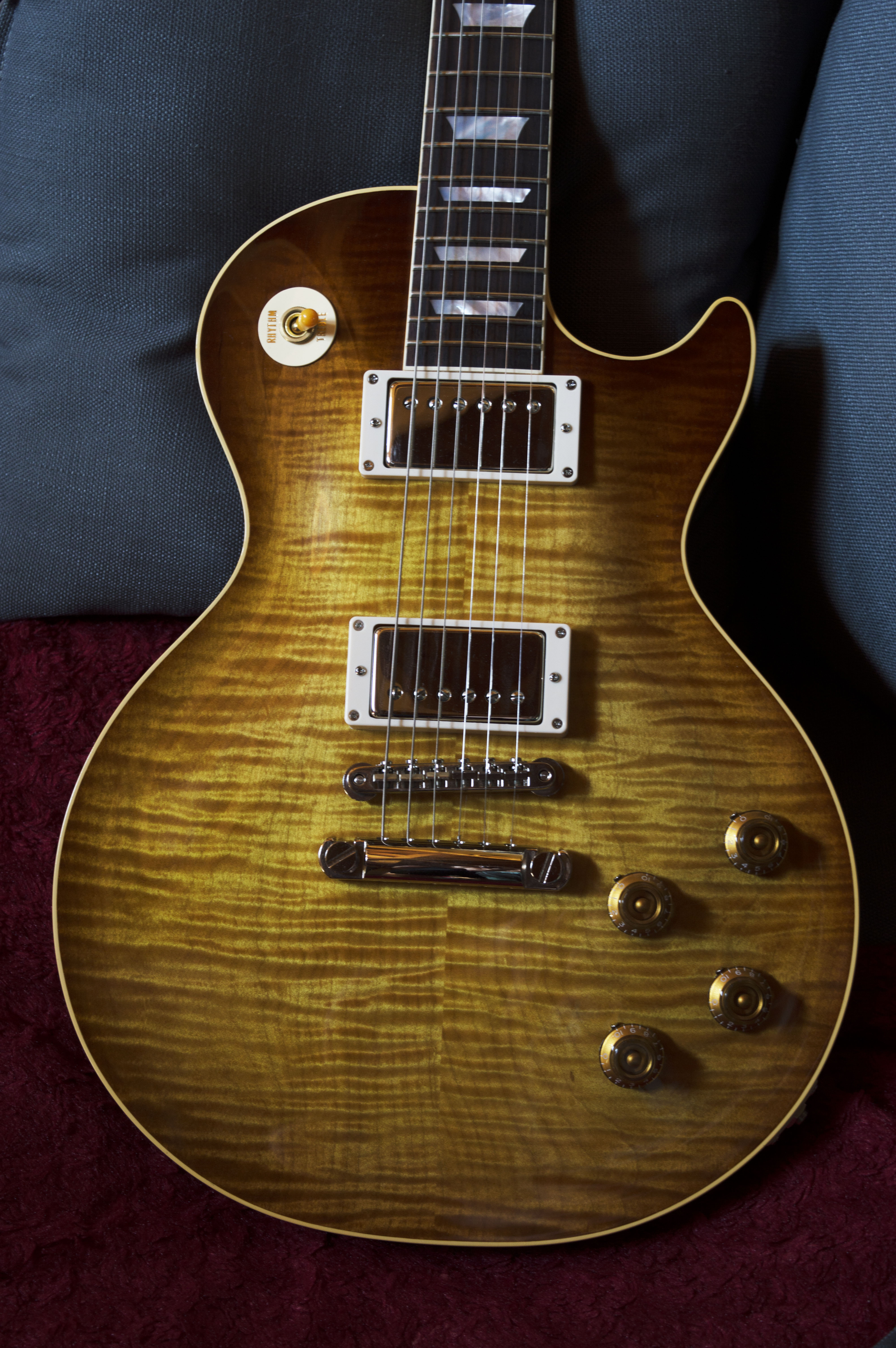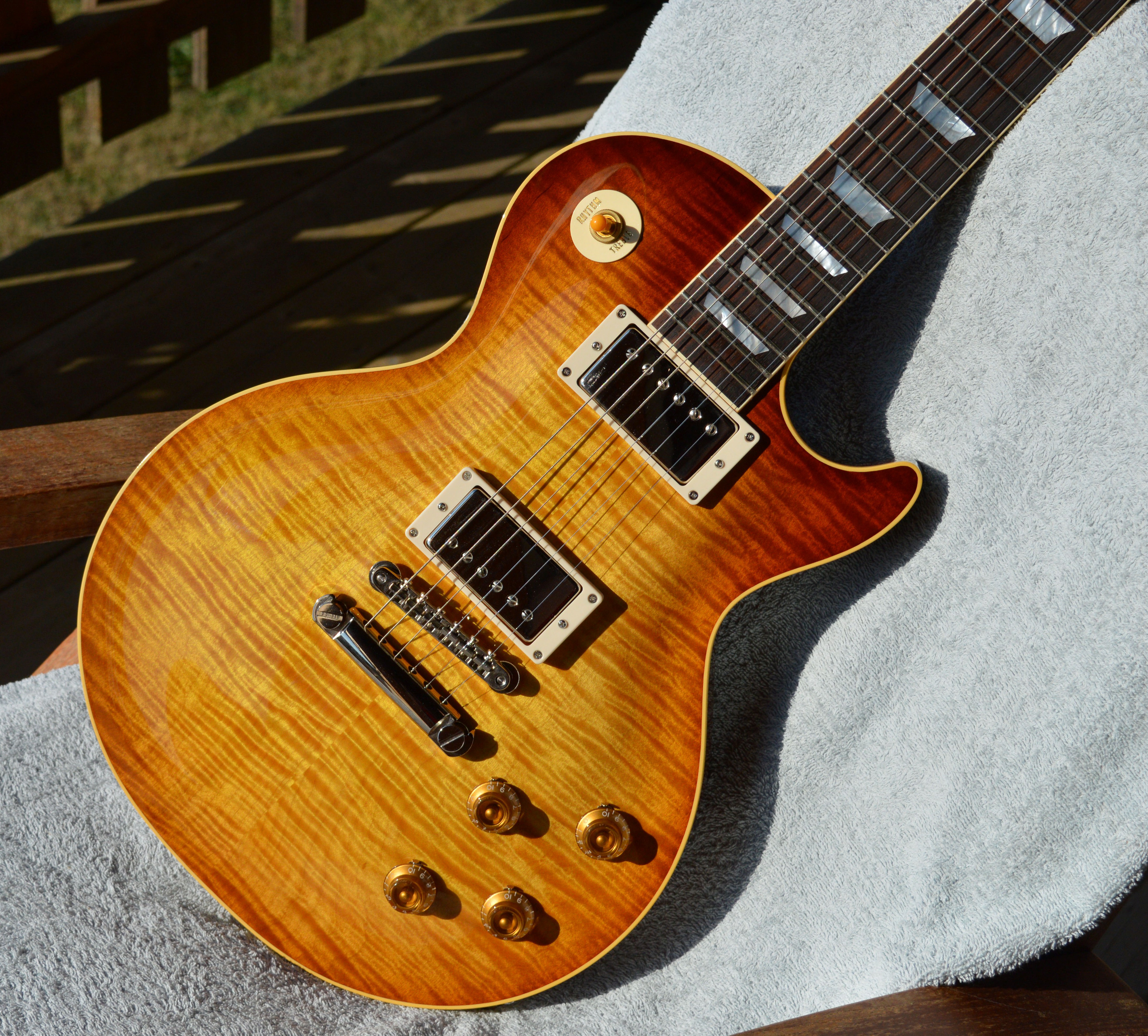 Donc il s'agit d'une replica plutôt fidele, bien que je me sois autorisé quelques écarts ( inlay nacre, sillet Tusq, meca double rings)