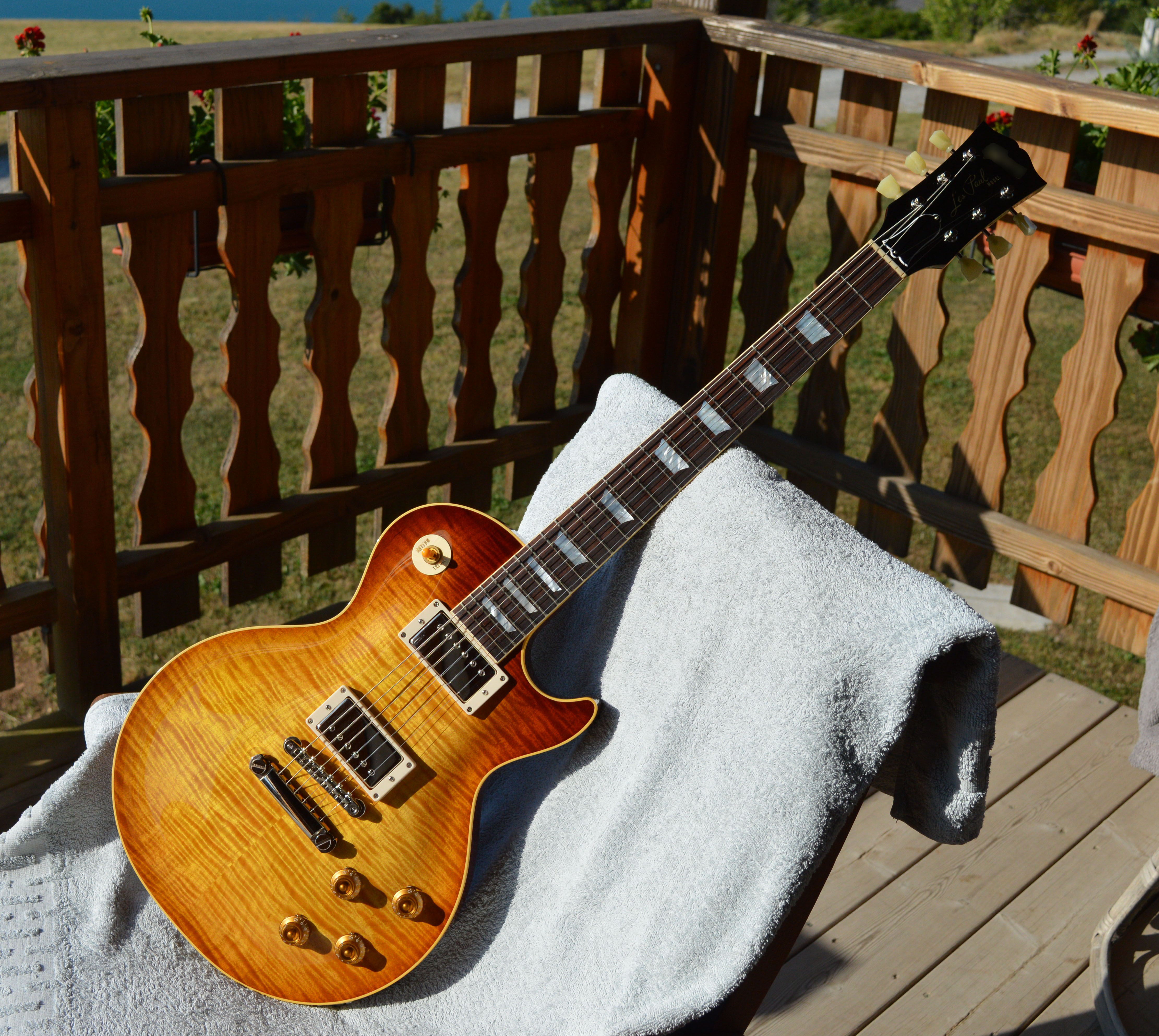 Dès que j'ai un peu de temps, je passe au ponçage à l'eau, puis couches de nitro à nouveau, et ensuite ponçage final à l'eau + polissage (après un bon mois de séchage)