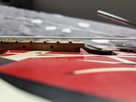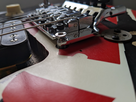En installant le Floyd et en procédant aux réglages, impossible d'avoir le Floyd posé sur la table sans que les cordes de Si et Mi frisent. Je me décide de l'emmener chez un luthier.