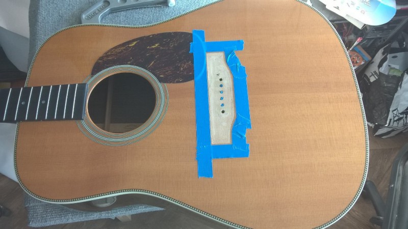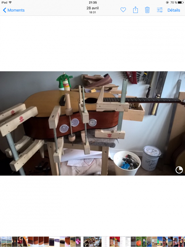 Par la suite j'ai pu discuter avec le luthier, lui amener une Martin HD28 achetée aussi d' occaz, il a tout de suite entendu que quelque chose clochait, on a pu comparer avec une Martin qu' il possède et il a vu que le chevalet se décollait. Pareil, super réparation avec envoie de photos des travaux