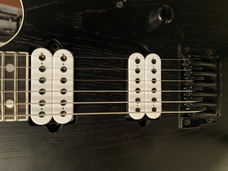 J'y ai installé des bons capots Throbak, et bingo ! L'équilibre parfait, le grain parfait. Le bridge épais, gutural et hyper articulé. Le neck puissant, un peu honky (ce qui n'est pas banal pour un neck) et tout aussi articulé.